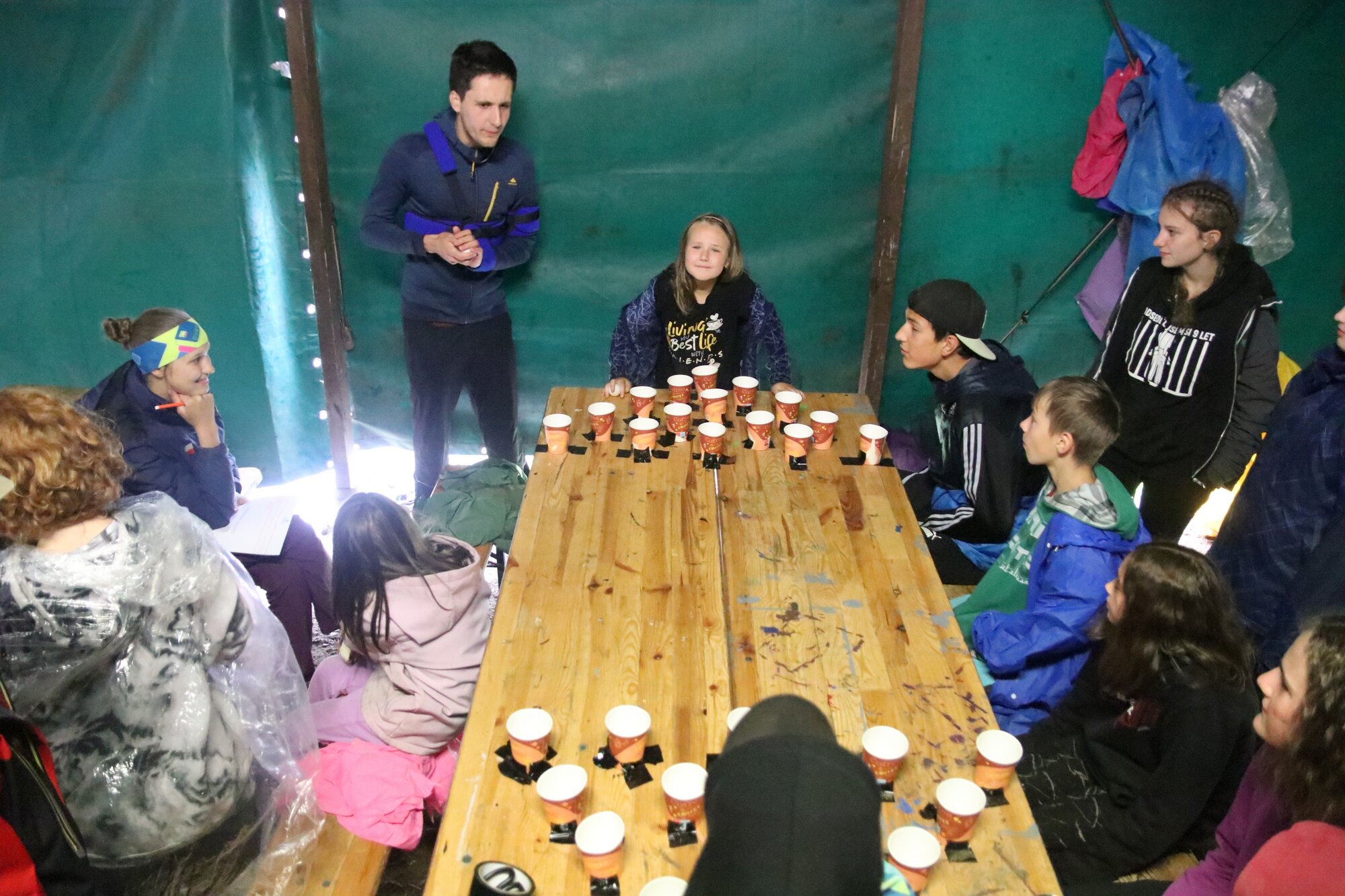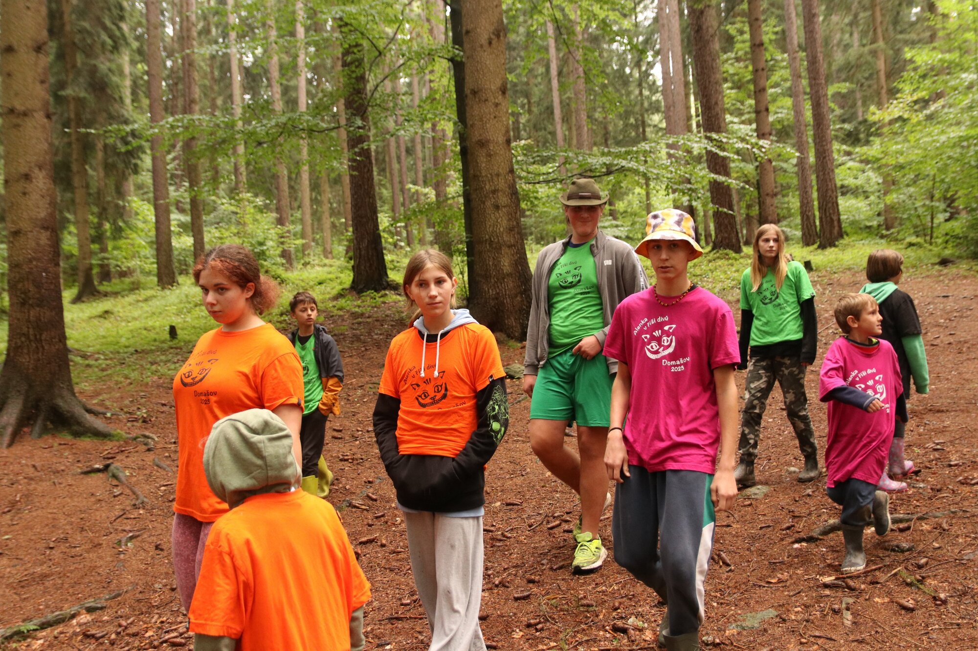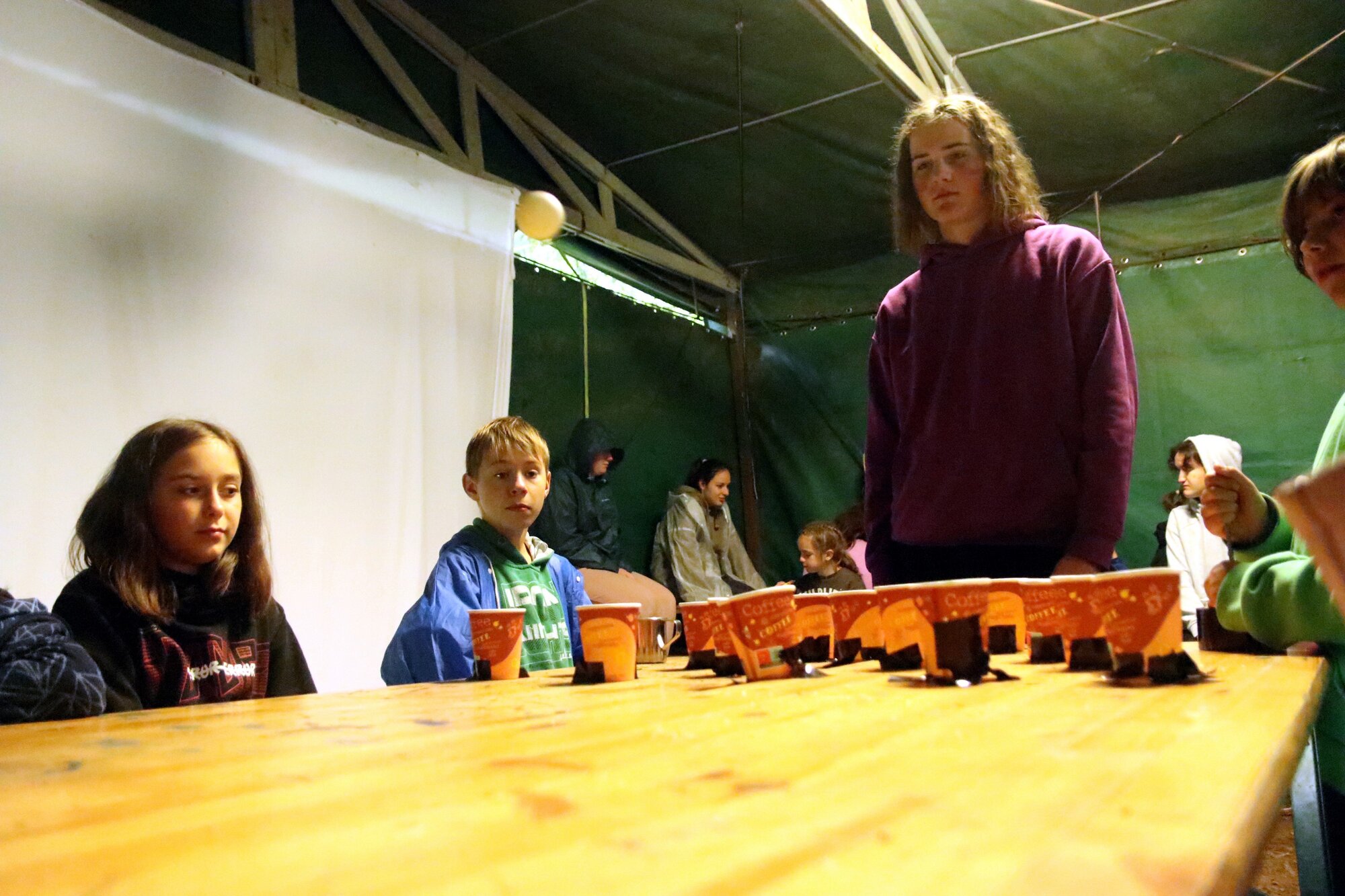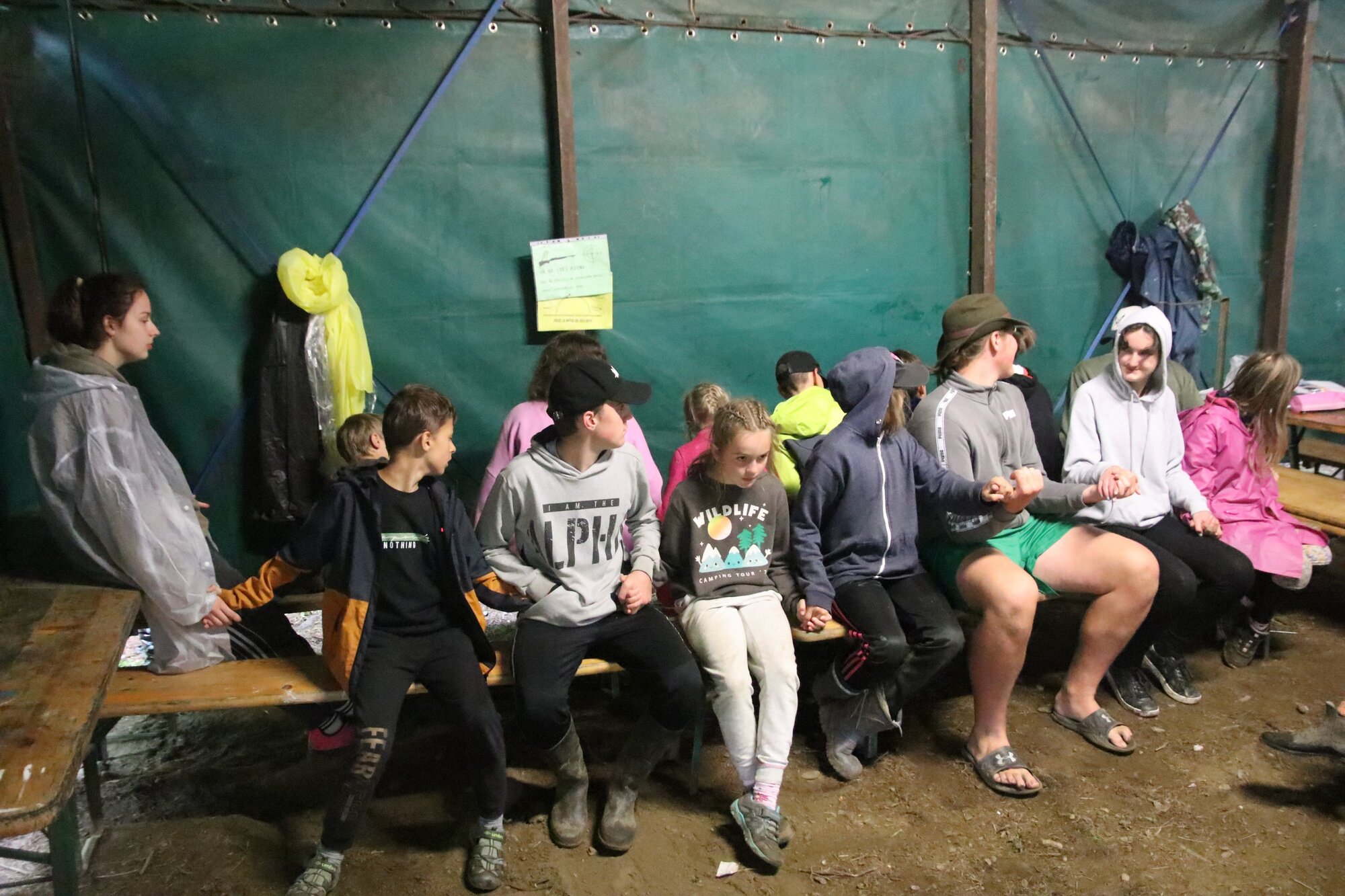 Odpoledne jsme v lese sehráli oblíbenou hru Maršál a špion ve variantě všechny oddíly proti všem. Sice ještě trochu pršelo, ale pod stromy nás déšť nijak moc netrápil. Pečlivě jsme rozdělovali role a plánovali strategie pro každé kolo. Sehráli jsme spoustu variant a byli jsme rádi že jsme mohli zase do lesa. V táboře jsme si ještě zahráli rychlovku na skládání slov. Vypadá to, že pršet už dnes přestalo, tak nám držte palce!
