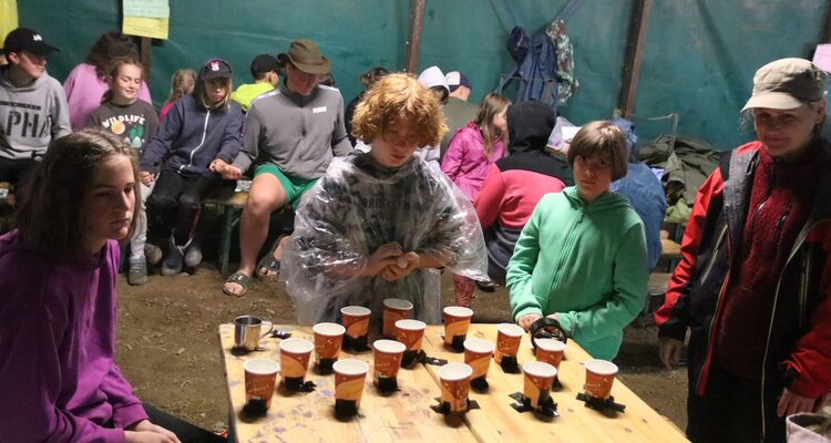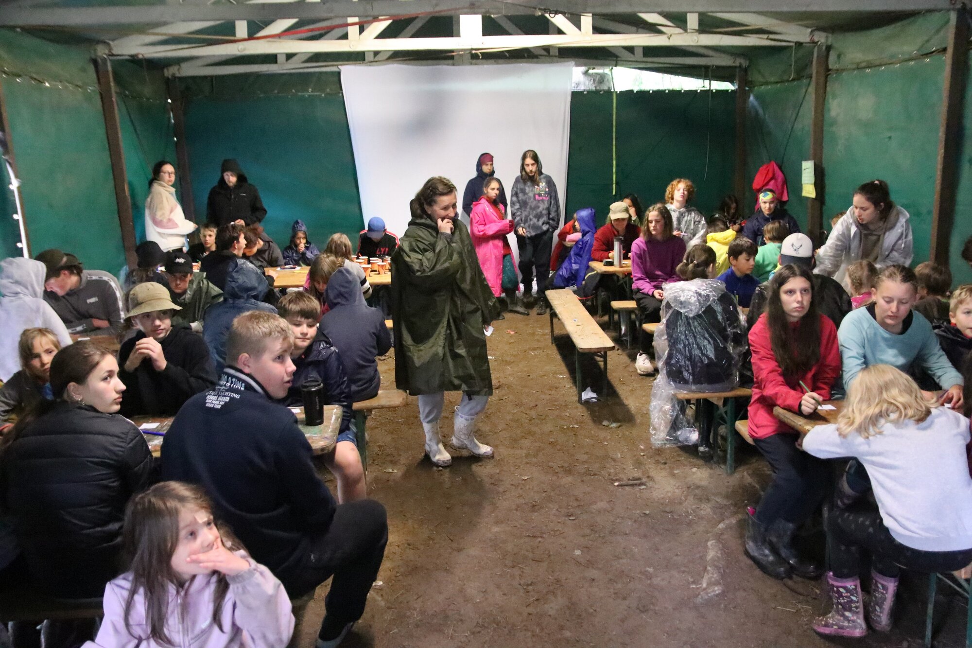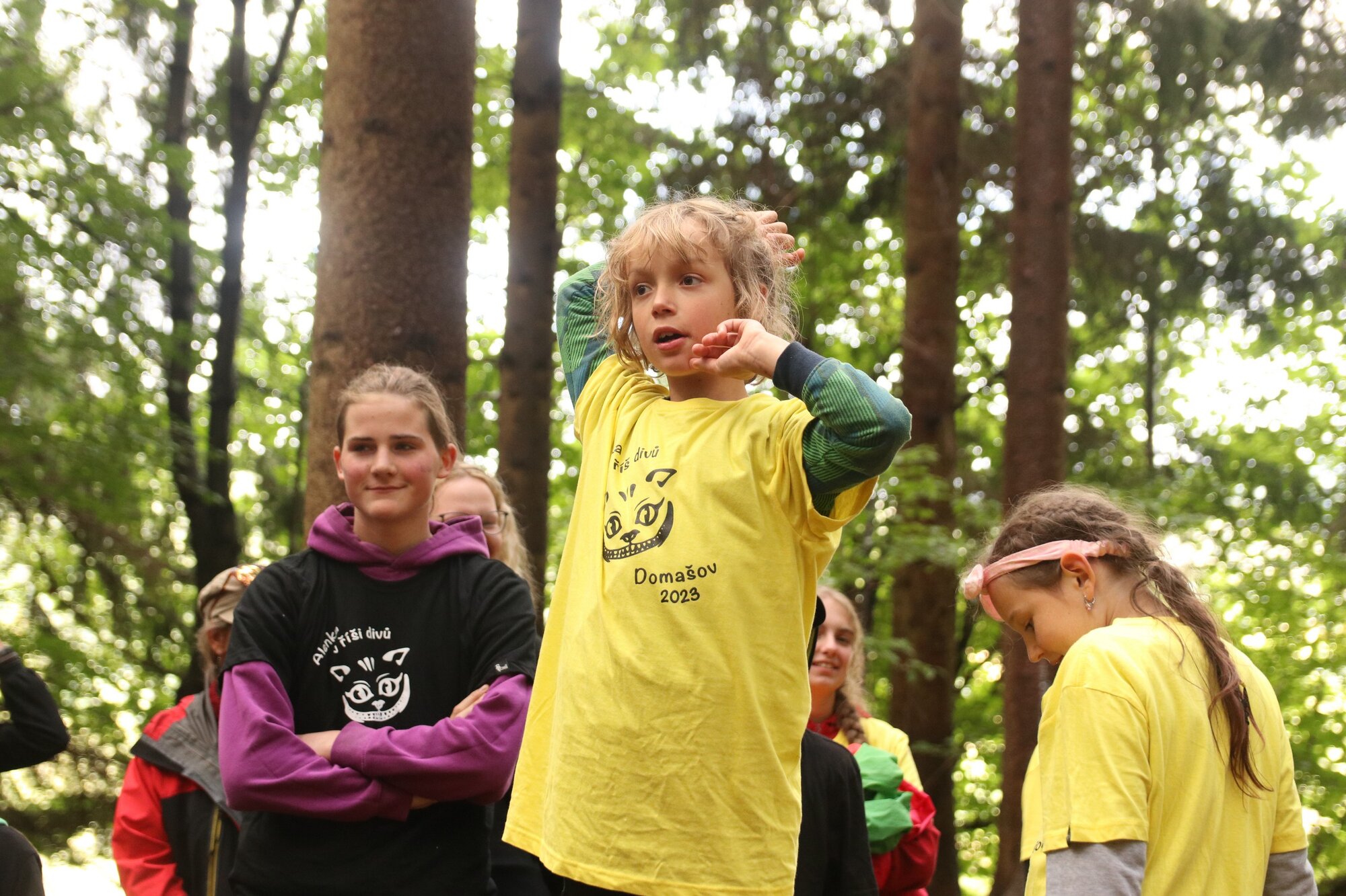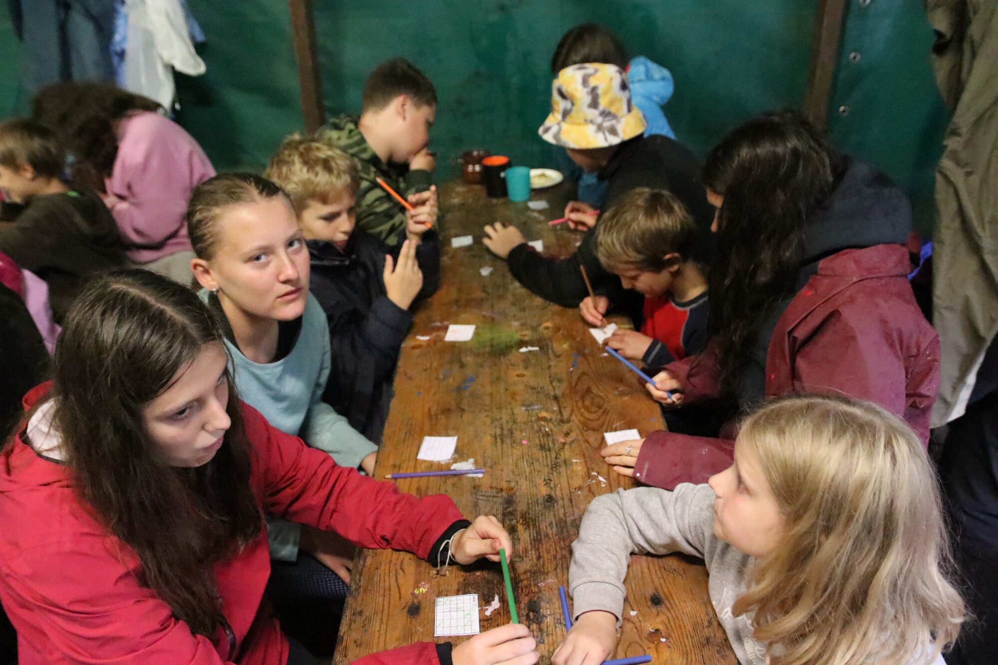 Odpoledne jsme v lese sehráli oblíbenou hru Maršál a špion ve variantě všechny oddíly proti všem. Sice ještě trochu pršelo, ale pod stromy nás déšť nijak moc netrápil. Pečlivě jsme rozdělovali role a plánovali strategie pro každé kolo. Sehráli jsme spoustu variant a byli jsme rádi že jsme mohli zase do lesa. V táboře jsme si ještě zahráli rychlovku na skládání slov. Vypadá to, že pršet už dnes přestalo, tak nám držte palce!