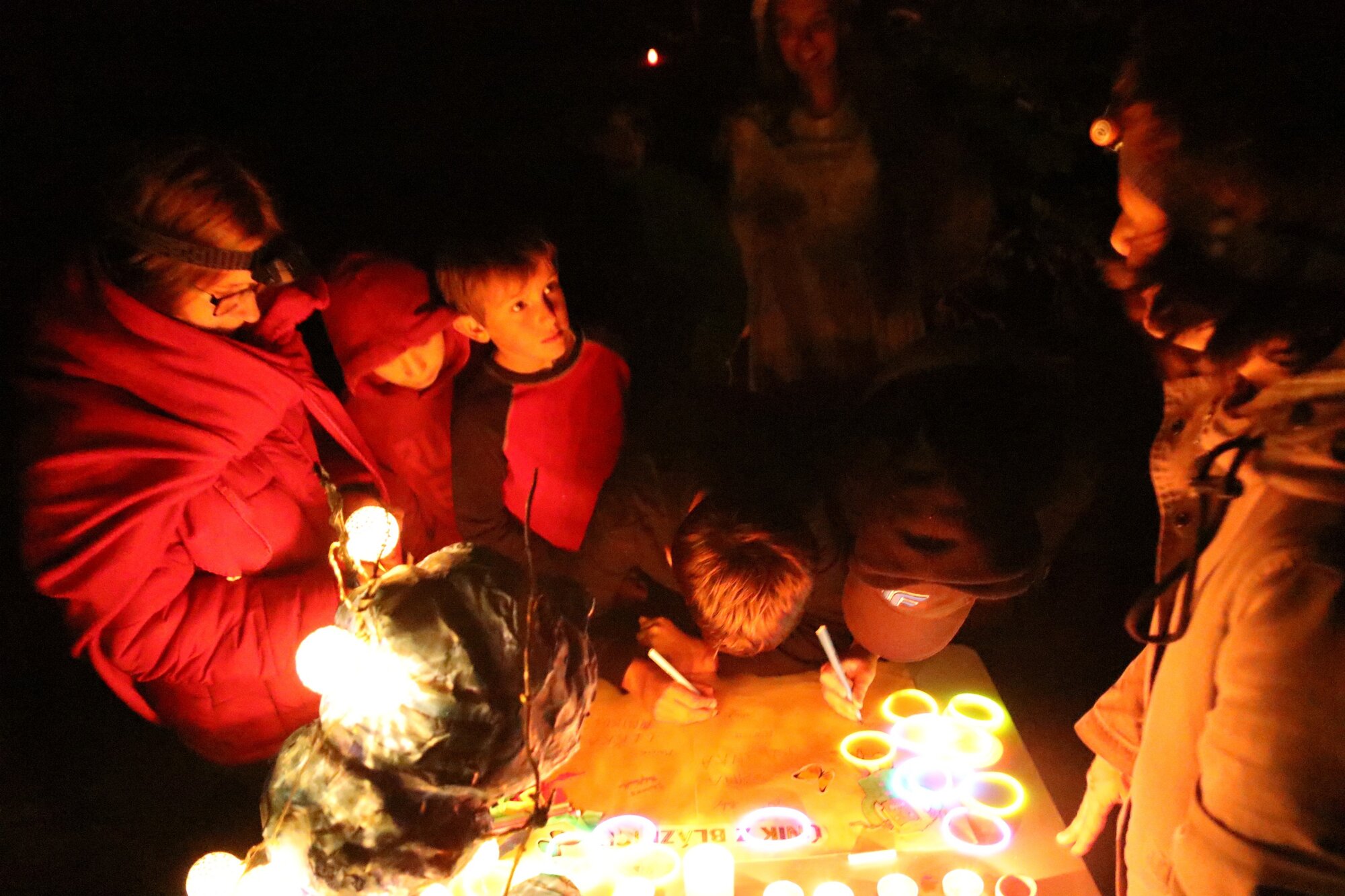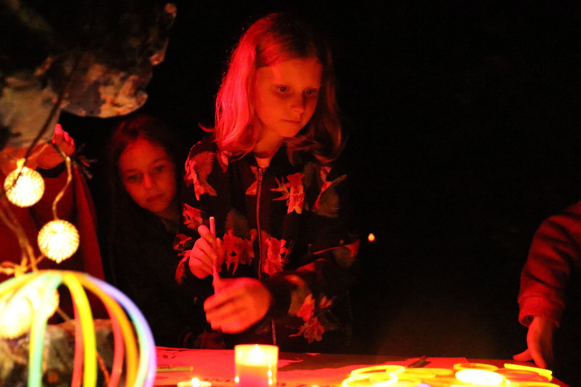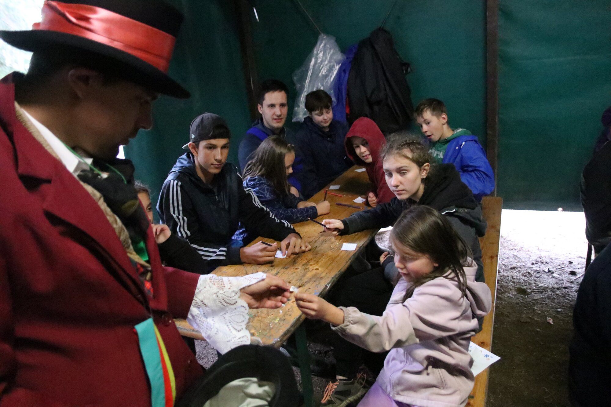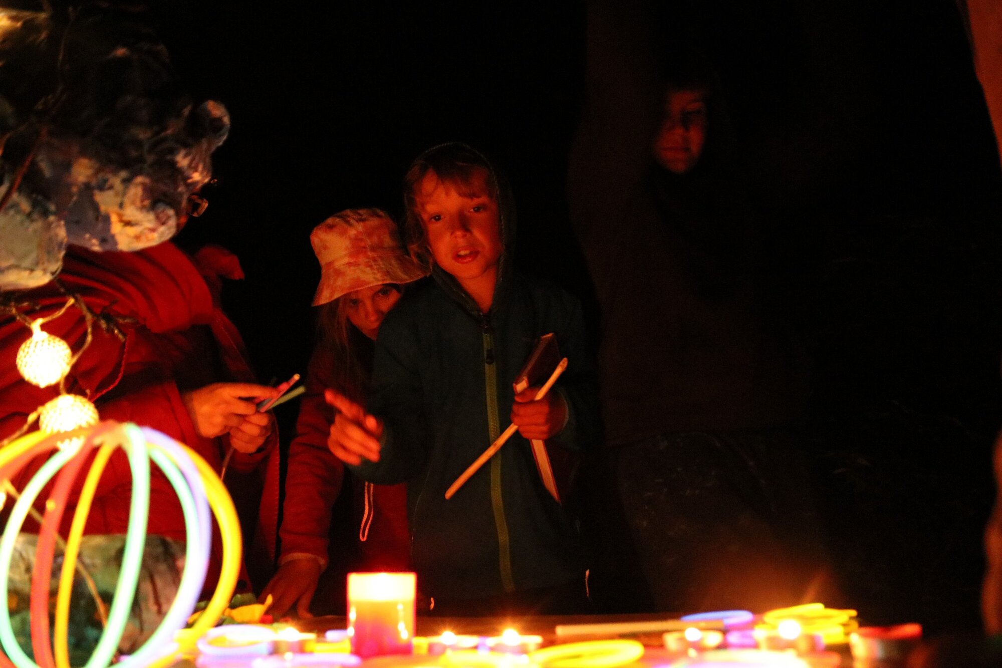 Když se začalo stmívat, byla ohlášena večerka. Jenže po ní jsme se nevydali do spacáků, ale … jak správně tušíte na stezku odvahy :-) Alenka, kterou pronásledoval Čas i Srdcová královna, se chronosférou dostala do světa lidí. Hamiš jí ale nechal zavřít a my ji musíme pomoci utéct. Všichni jsme to zvládli, i když ne všichni úplně potichu, a teď už se ukládáme do hajan. Ahoj zítra!