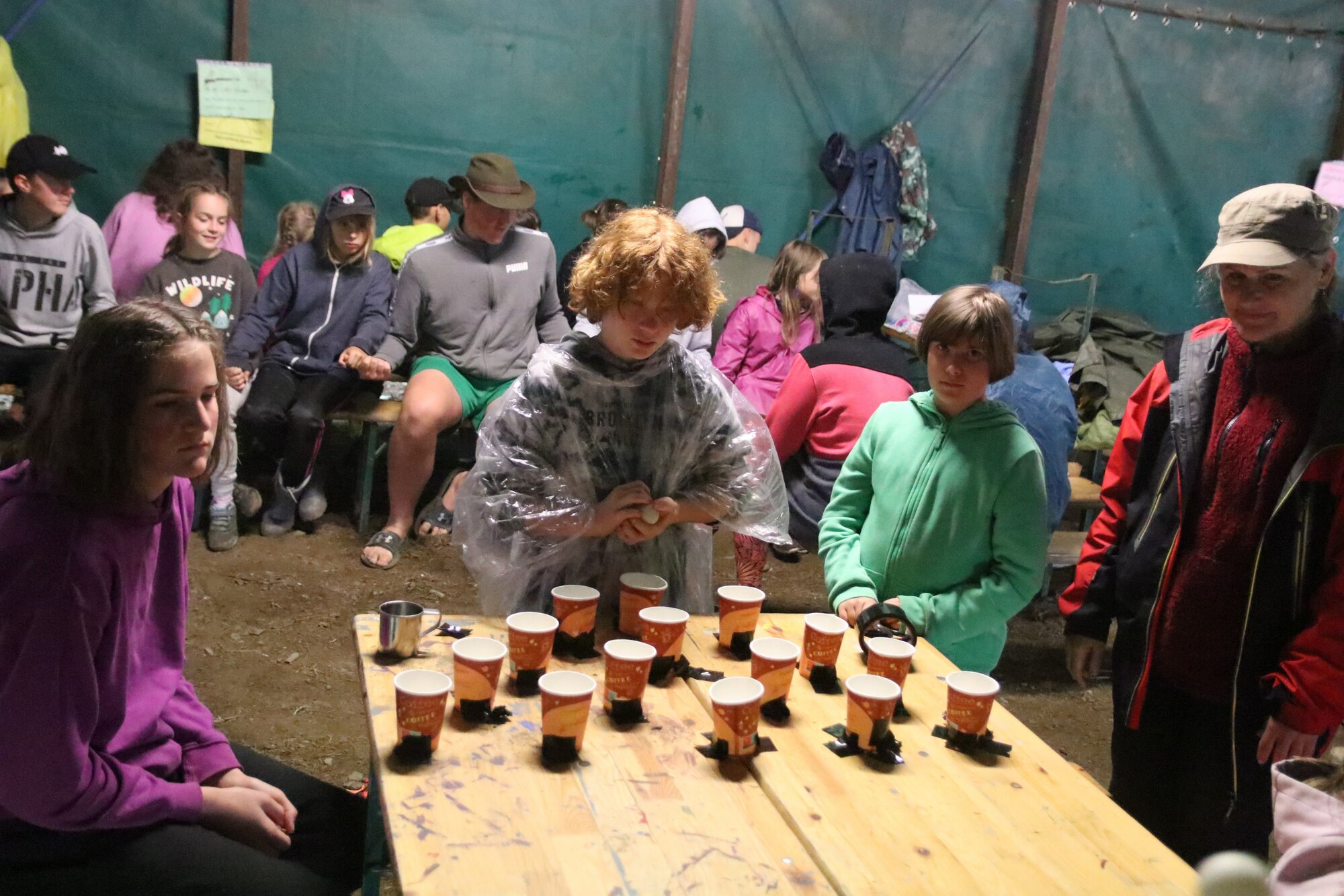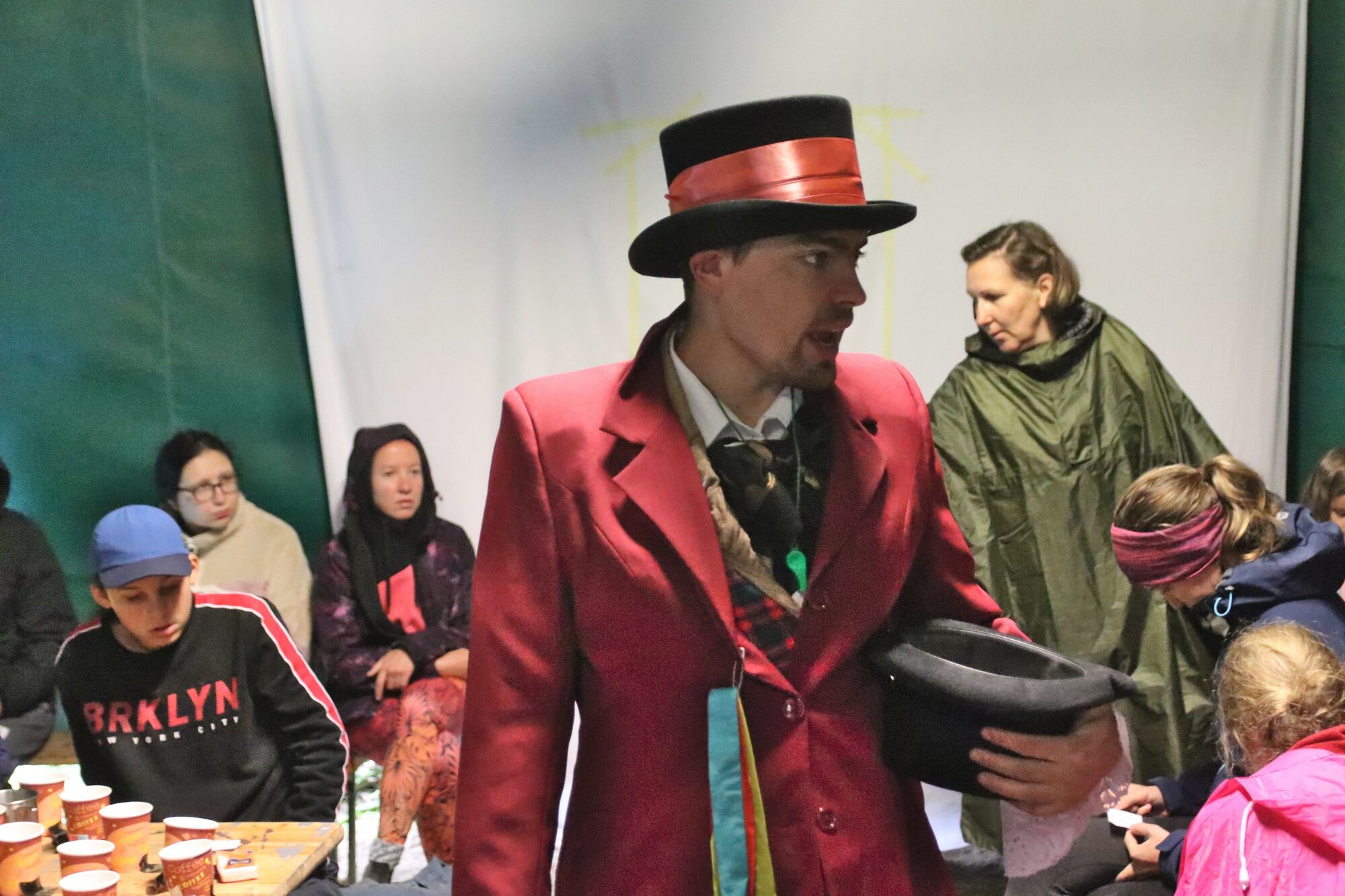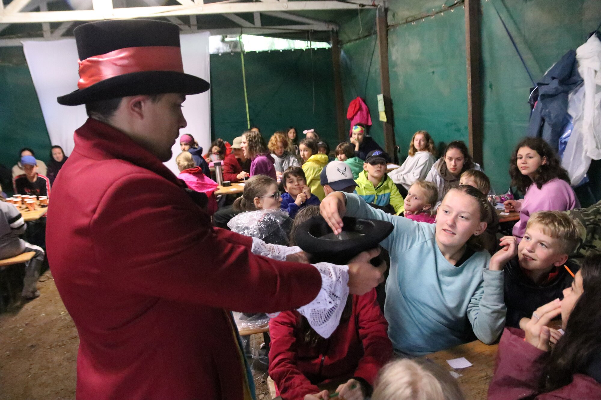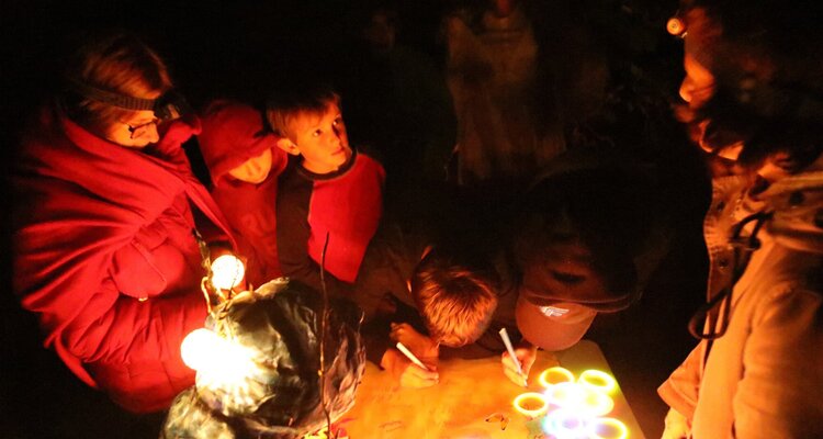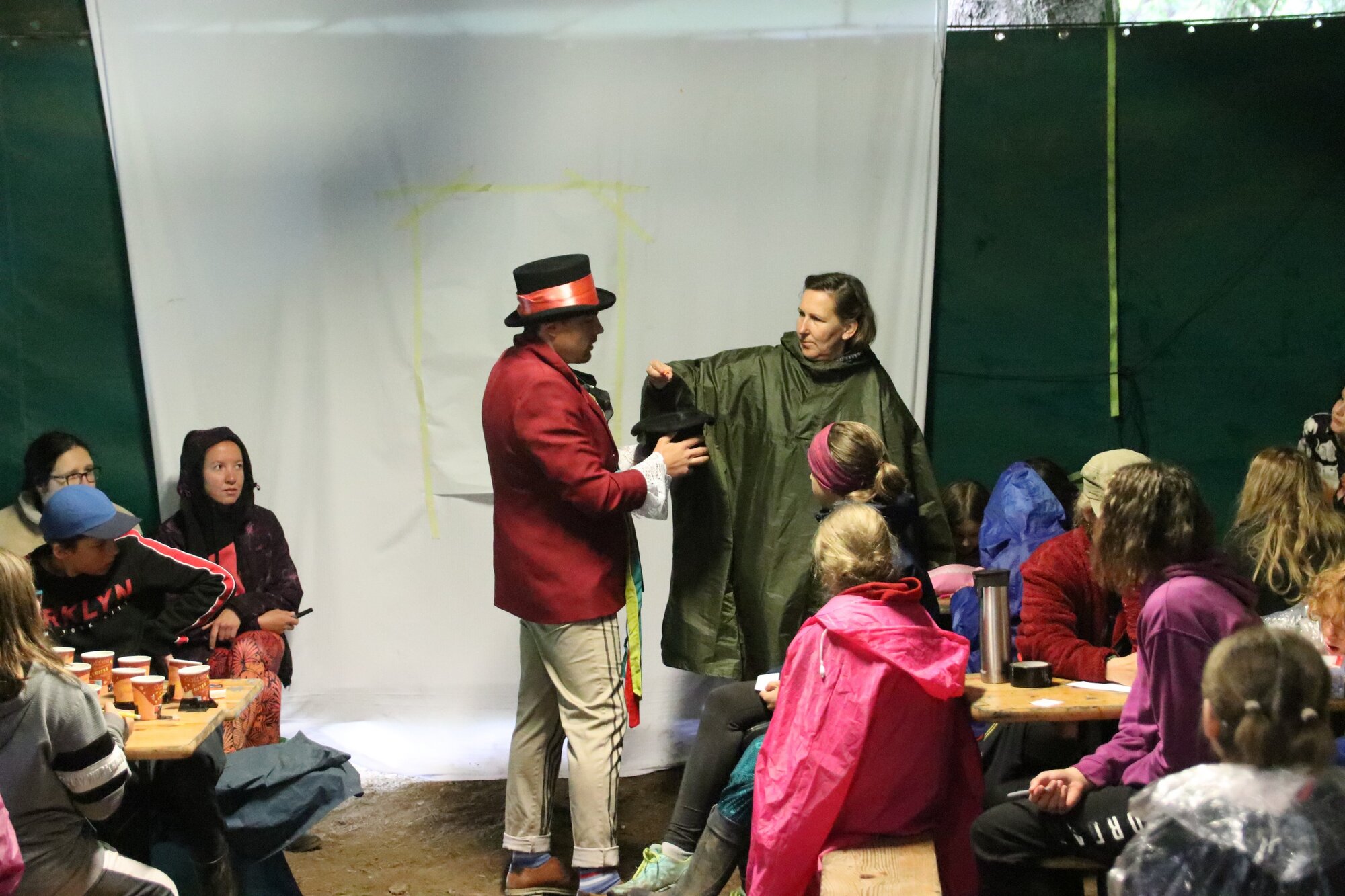Když se začalo stmívat, byla ohlášena večerka. Jenže po ní jsme se nevydali do spacáků, ale … jak správně tušíte na stezku odvahy :-) Alenka, kterou pronásledoval Čas i Srdcová královna, se chronosférou dostala do světa lidí. Hamiš jí ale nechal zavřít a my ji musíme pomoci utéct. Všichni jsme to zvládli, i když ne všichni úplně potichu, a teď už se ukládáme do hajan. Ahoj zítra!