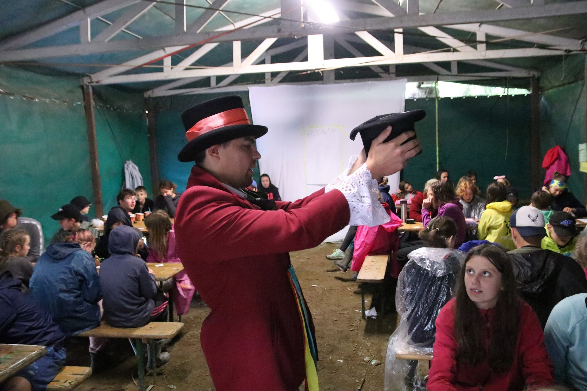 Opět tu máme den který by měl být “ten poslední který prší”. Zahráli jsme si několik mezioddílových klání pod střechou a pak přišla hlavní atrakce dopoledne - hra Bingo. Vyplnili jsme si každý svůj tiket a čekali, jaká čísla nechá Kloboučník vylosovat. Vyhrávali jsme zlaté mince až do té doby, než do kasína vtrhla policie a Kloboučníka odvedla. Potom se kasíno opět změnilo v jídelnu a šli jsme na oběd.