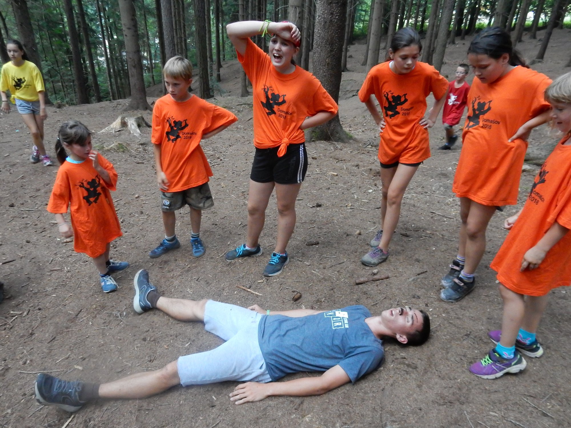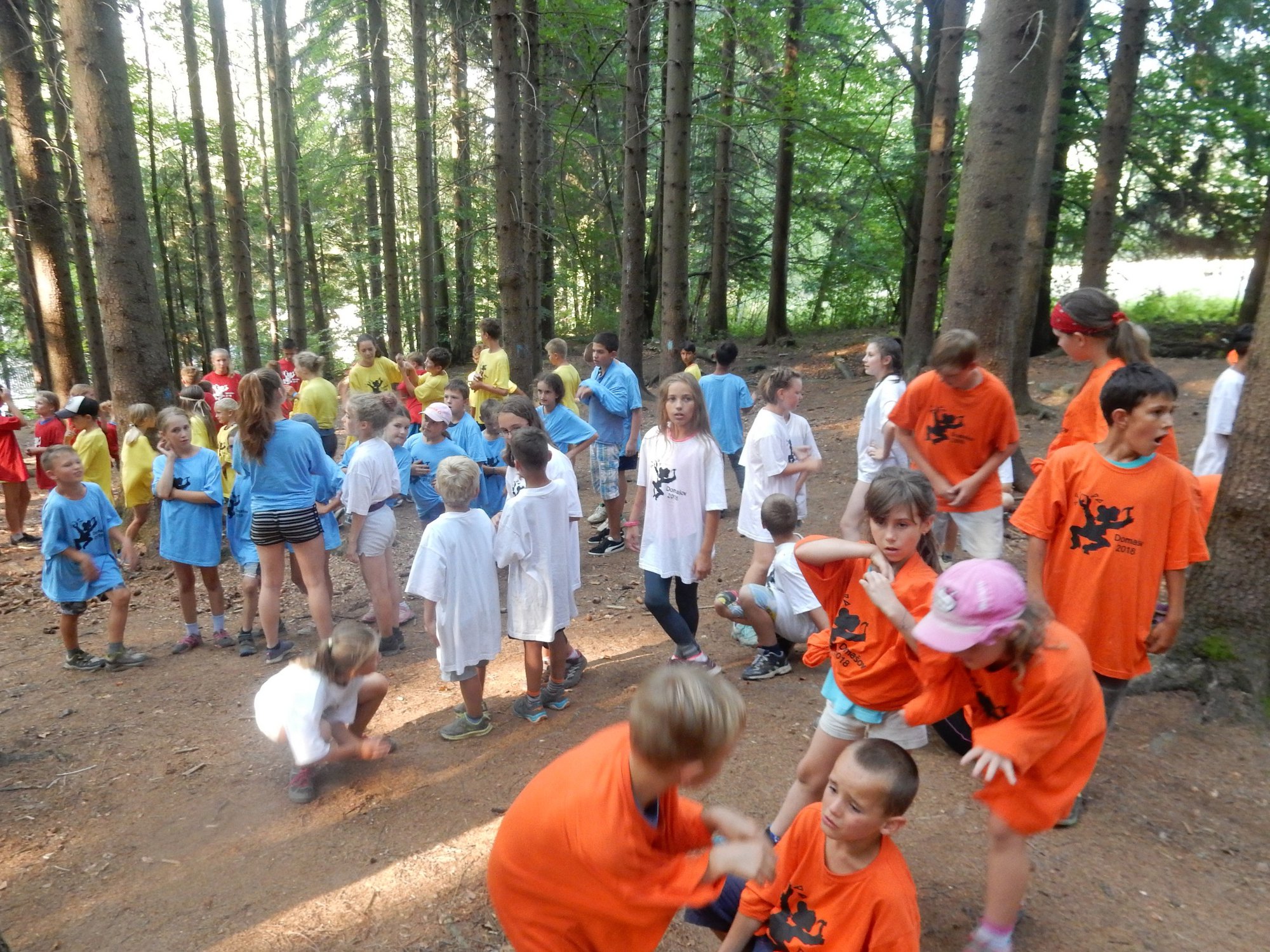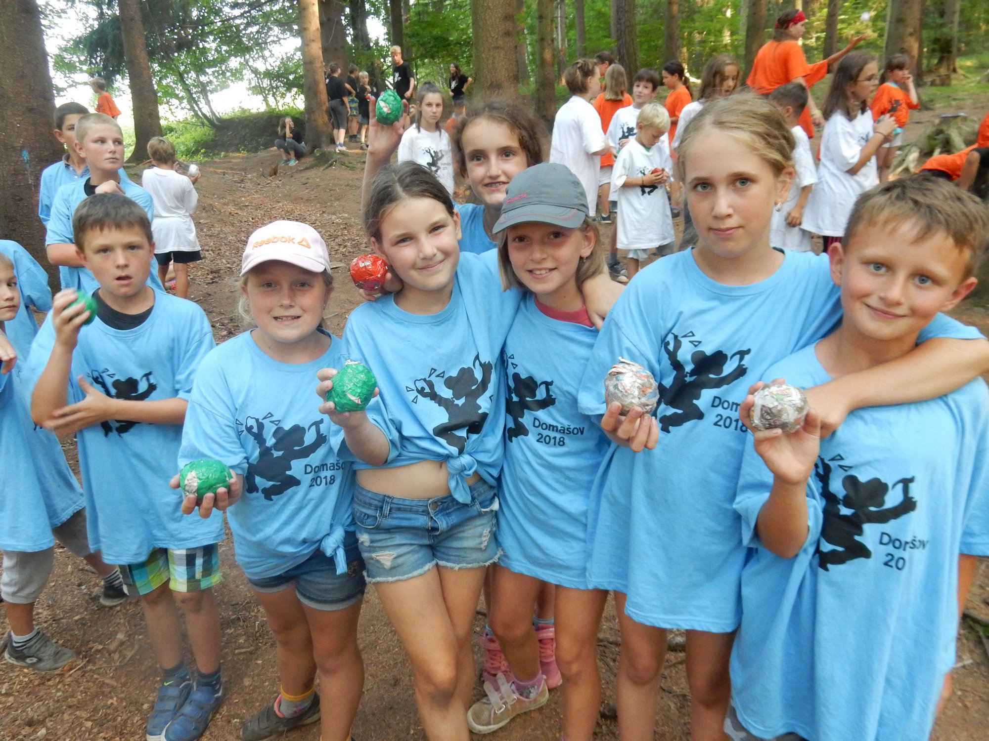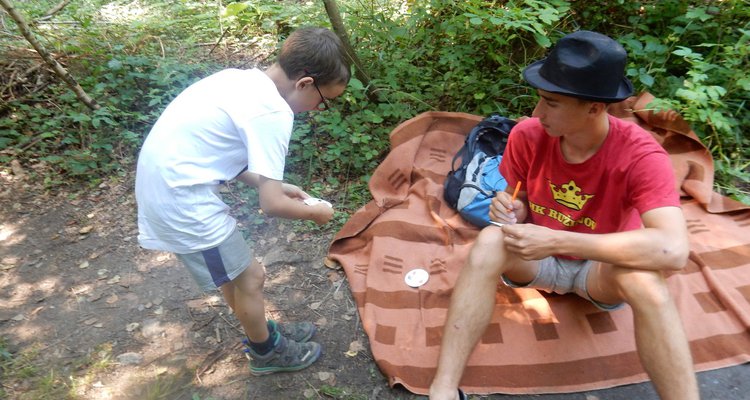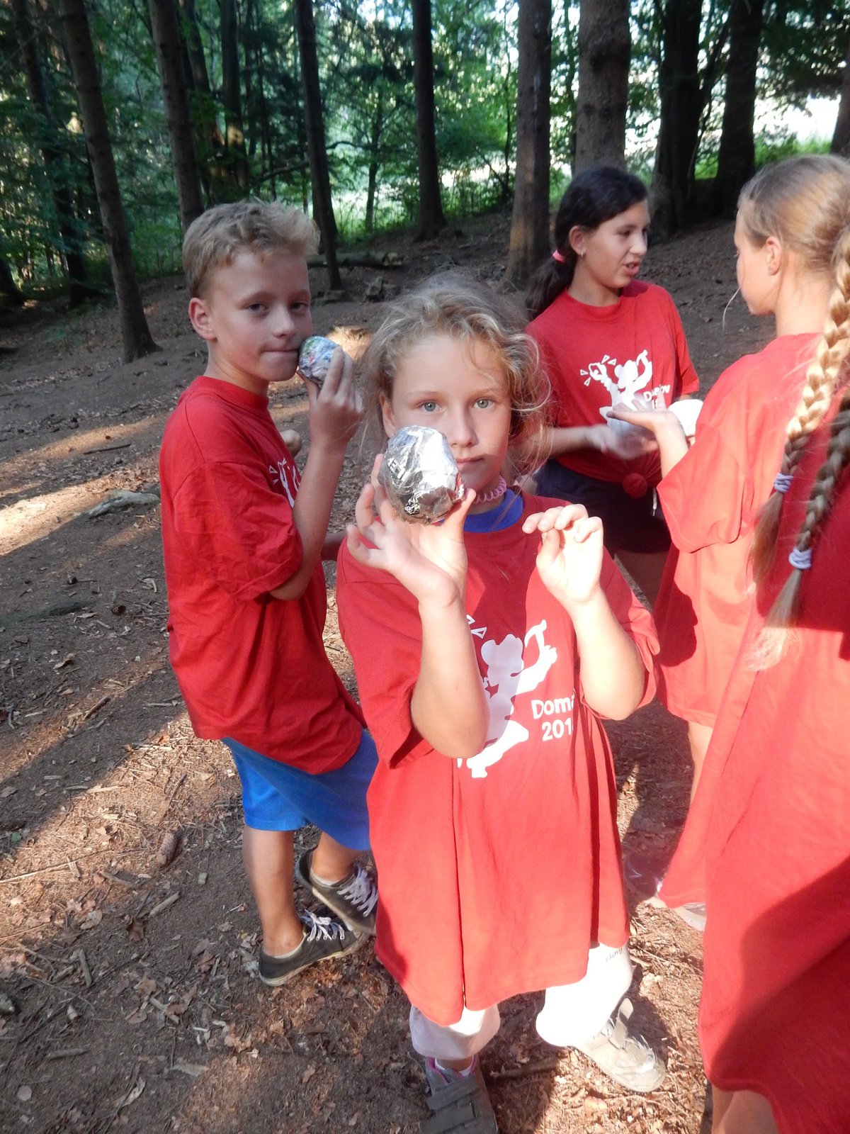 Dnes dopoledne běháme závod jednotlivců inspirovaný hrou Dobble. Mladší běželi s kartičkou a na každém stanovišti museli co nejrychleji najít stejný obrázek. Starší měli hru ztíženou – běželi bez kartičky a museli si obrázky mezi stanovišti pamatovat. Kdo si lépe pamatoval, méně se naběhal. Party, které zrovna neběžely závod jednotlivců, se utkaly v mezioddílových kláních. Protože se včerejší celotáborový Maršál a špion líbil, všichni si i pro dnešní souboje vybrali tuto oblíbenou hru.