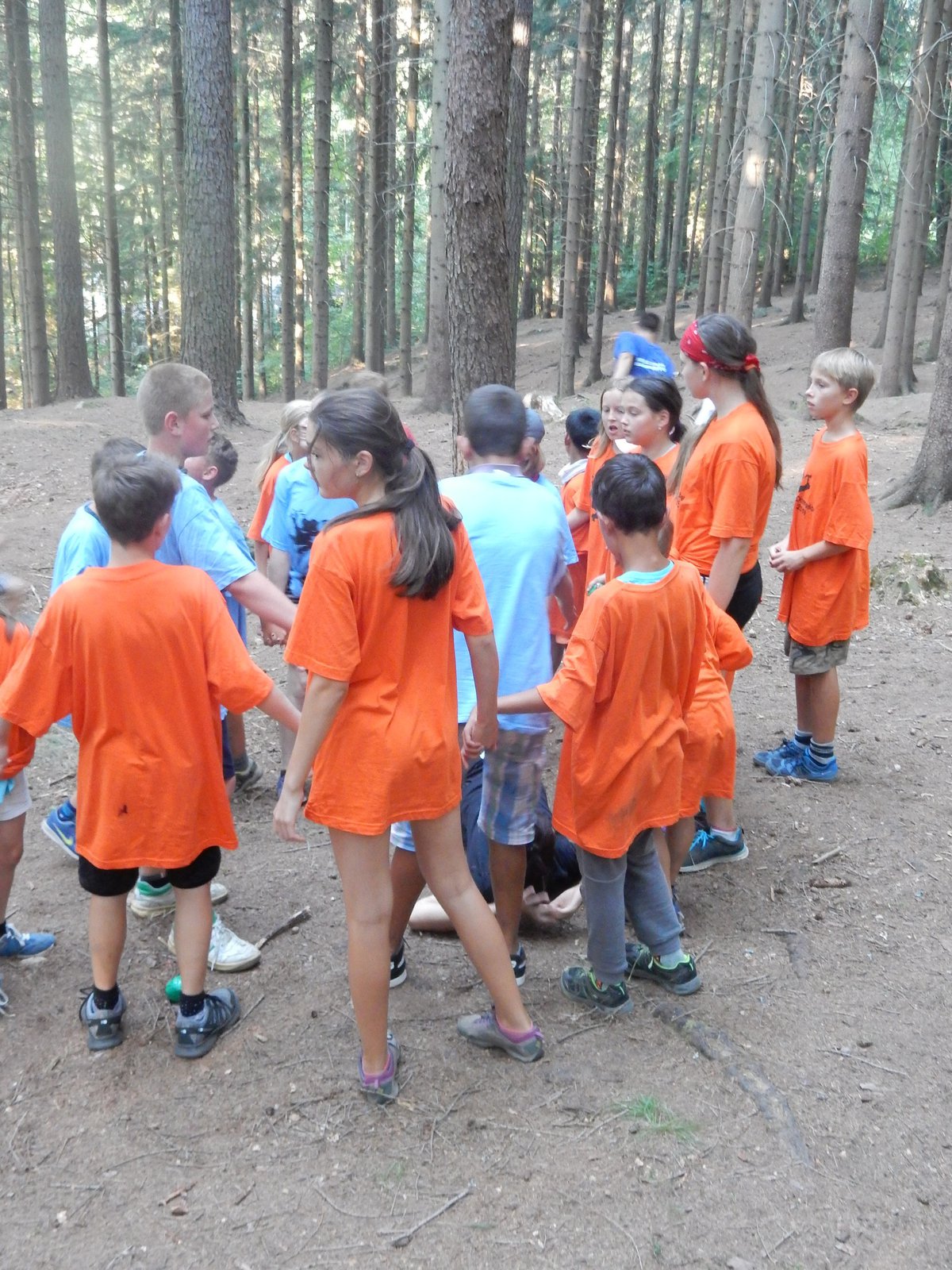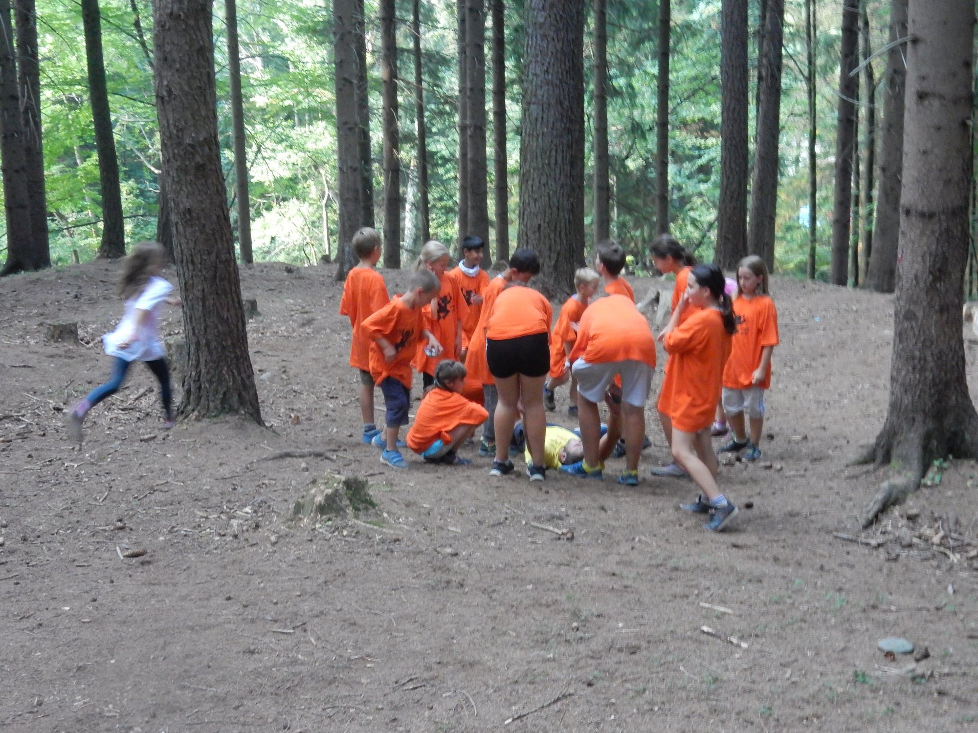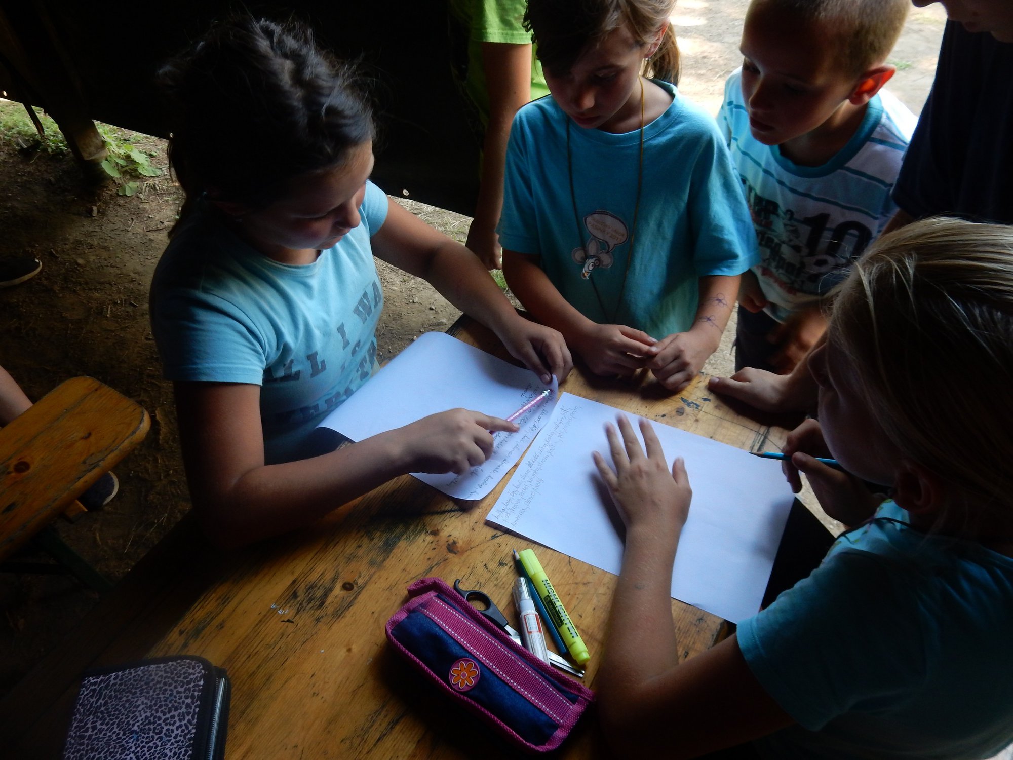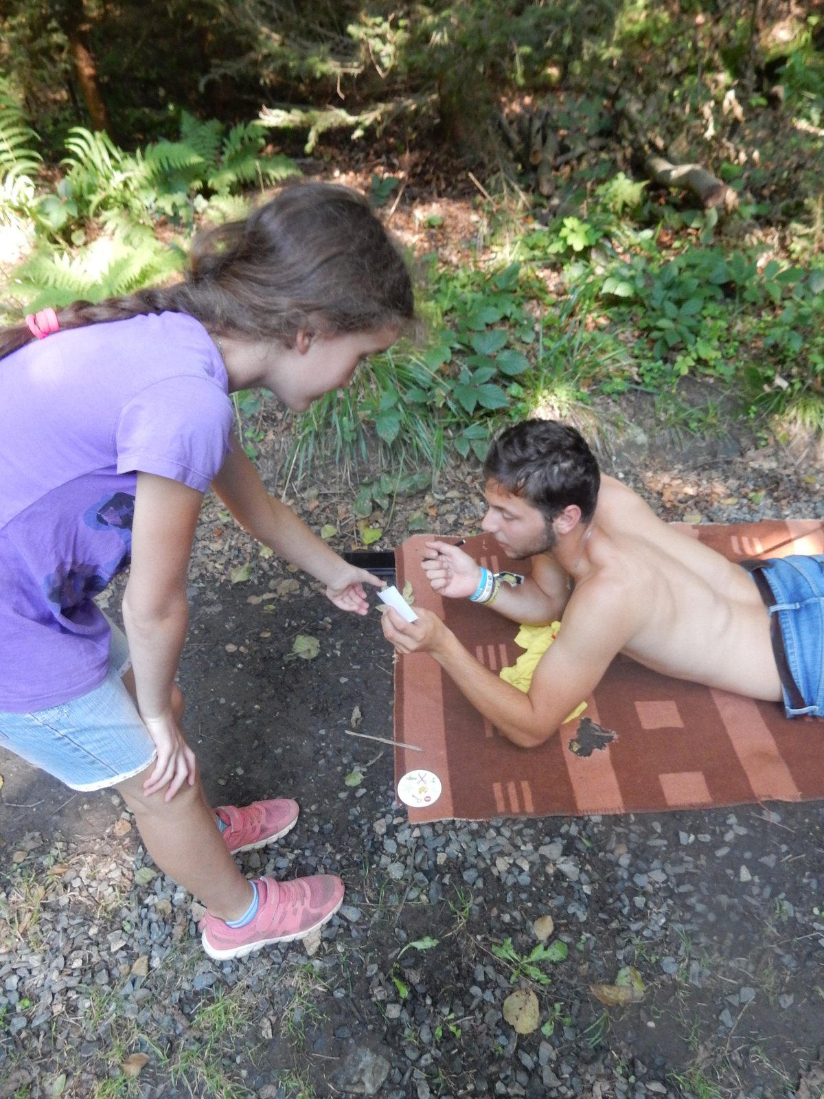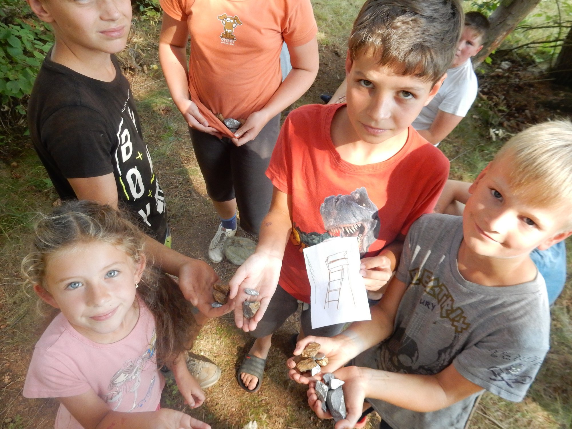 Dnes dopoledne běháme závod jednotlivců inspirovaný hrou Dobble. Mladší běželi s kartičkou a na každém stanovišti museli co nejrychleji najít stejný obrázek. Starší měli hru ztíženou – běželi bez kartičky a museli si obrázky mezi stanovišti pamatovat. Kdo si lépe pamatoval, méně se naběhal. Party, které zrovna neběžely závod jednotlivců, se utkaly v mezioddílových kláních. Protože se včerejší celotáborový Maršál a špion líbil, všichni si i pro dnešní souboje vybrali tuto oblíbenou hru.