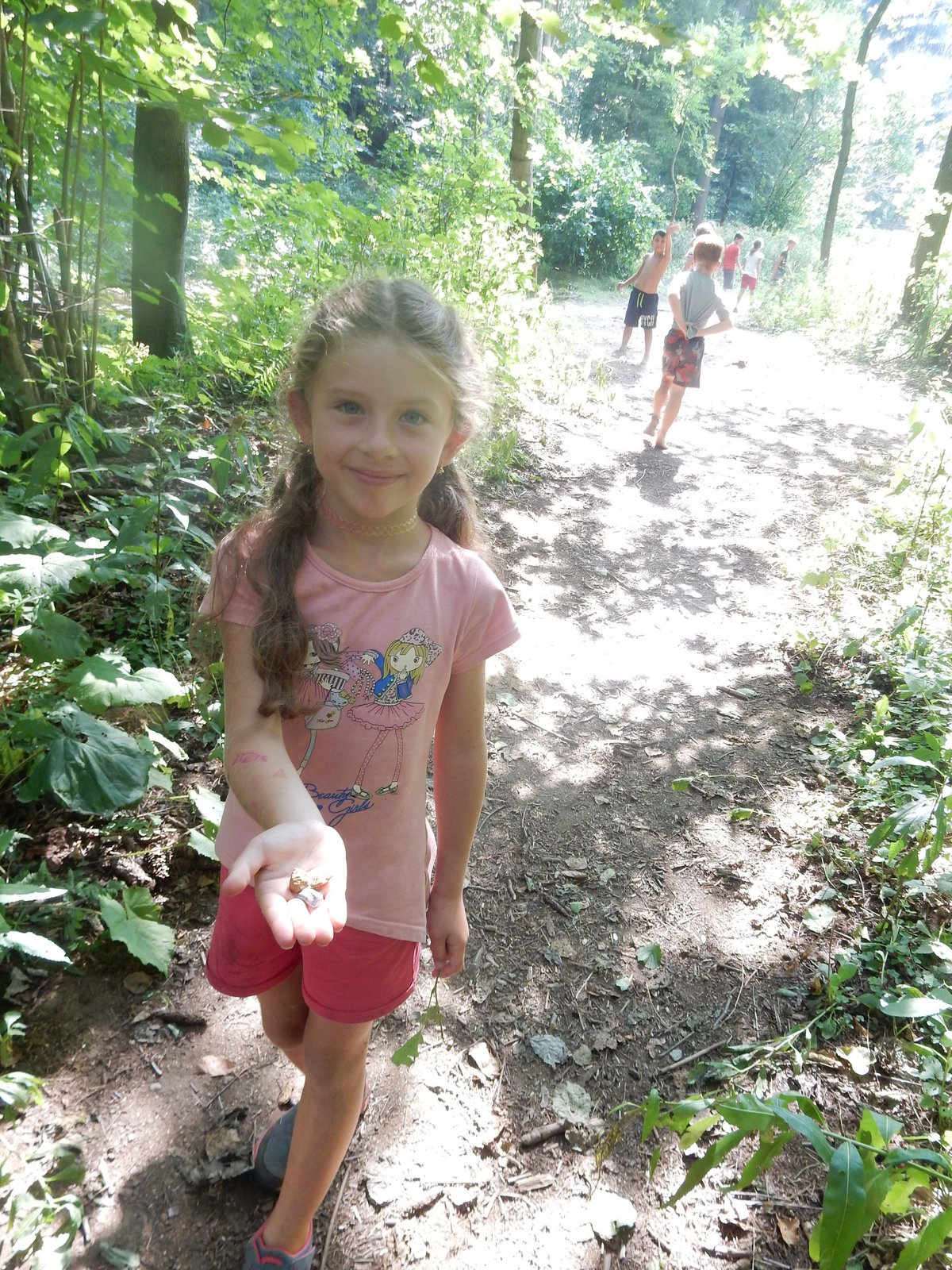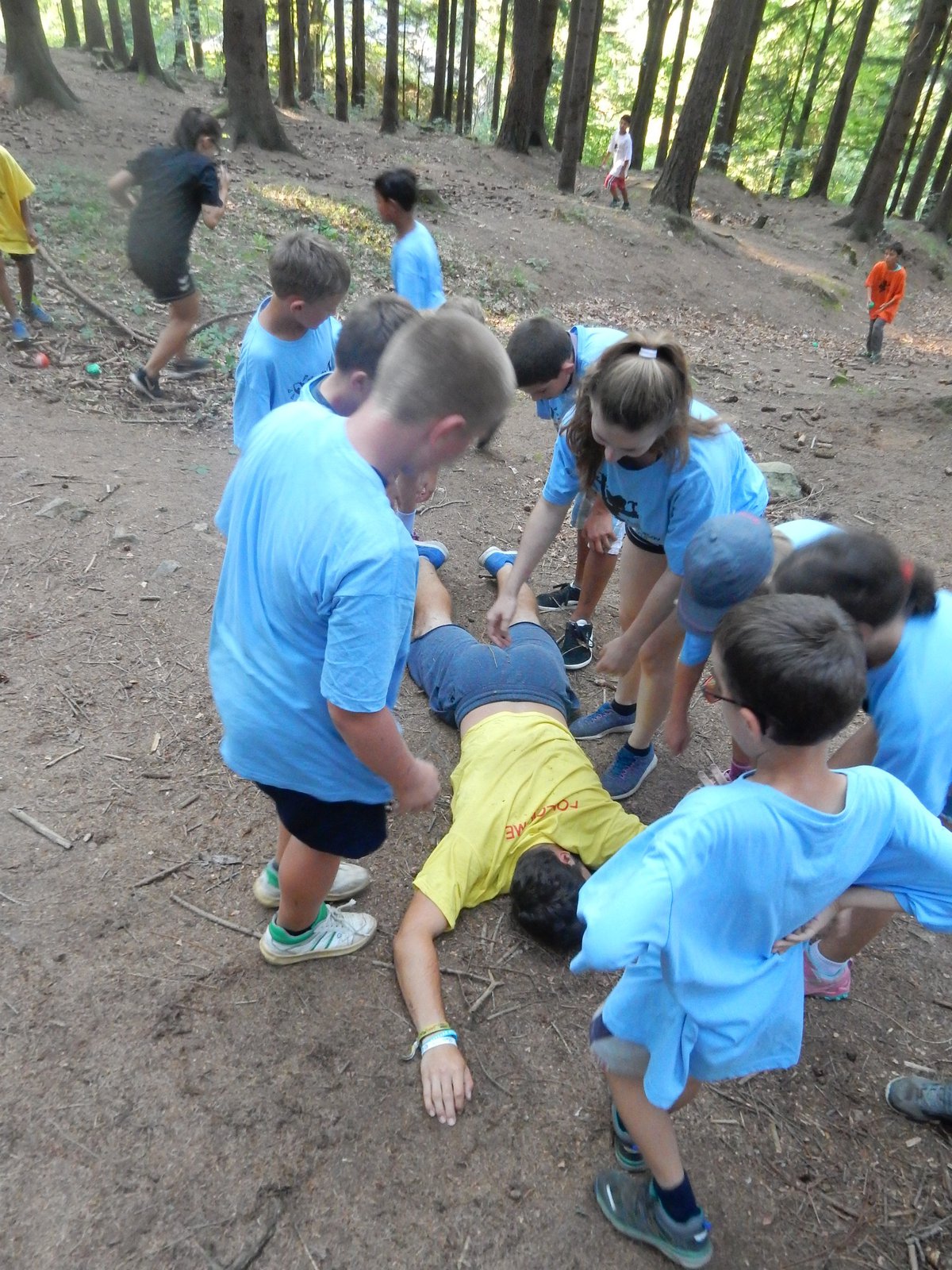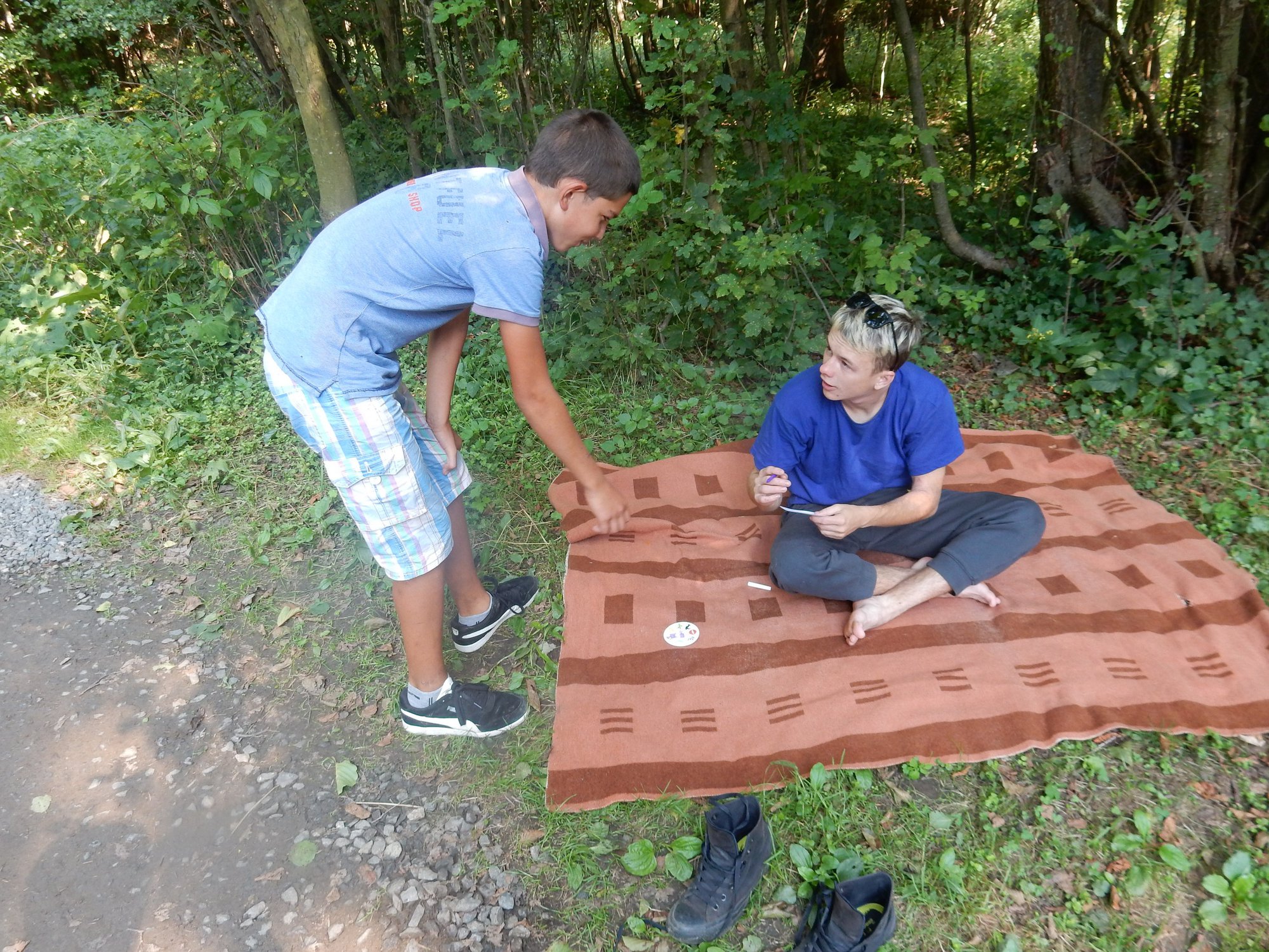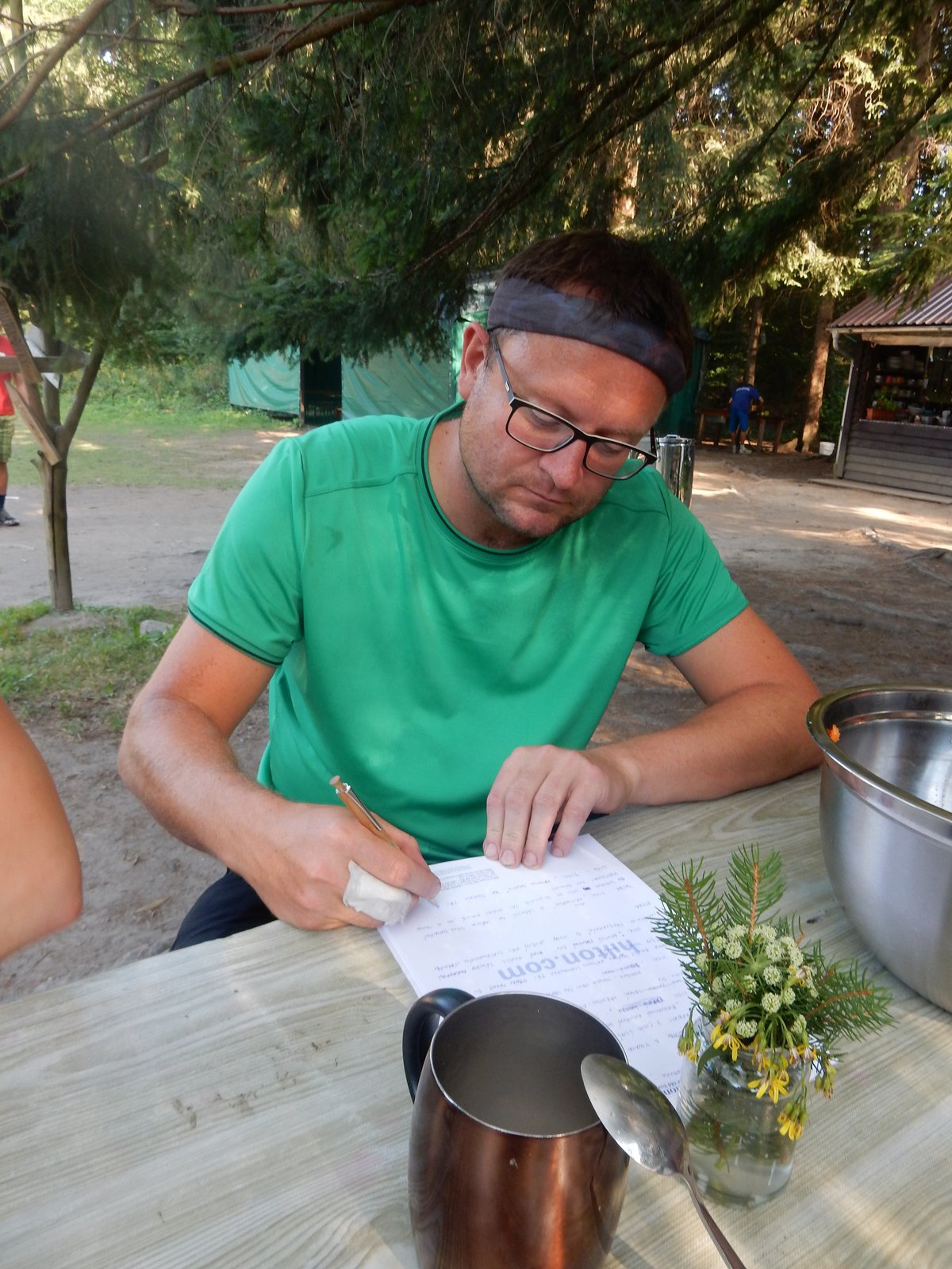 Dnes dopoledne běháme závod jednotlivců inspirovaný hrou Dobble. Mladší běželi s kartičkou a na každém stanovišti museli co nejrychleji najít stejný obrázek. Starší měli hru ztíženou – běželi bez kartičky a museli si obrázky mezi stanovišti pamatovat. Kdo si lépe pamatoval, méně se naběhal. Party, které zrovna neběžely závod jednotlivců, se utkaly v mezioddílových kláních. Protože se včerejší celotáborový Maršál a špion líbil, všichni si i pro dnešní souboje vybrali tuto oblíbenou hru.