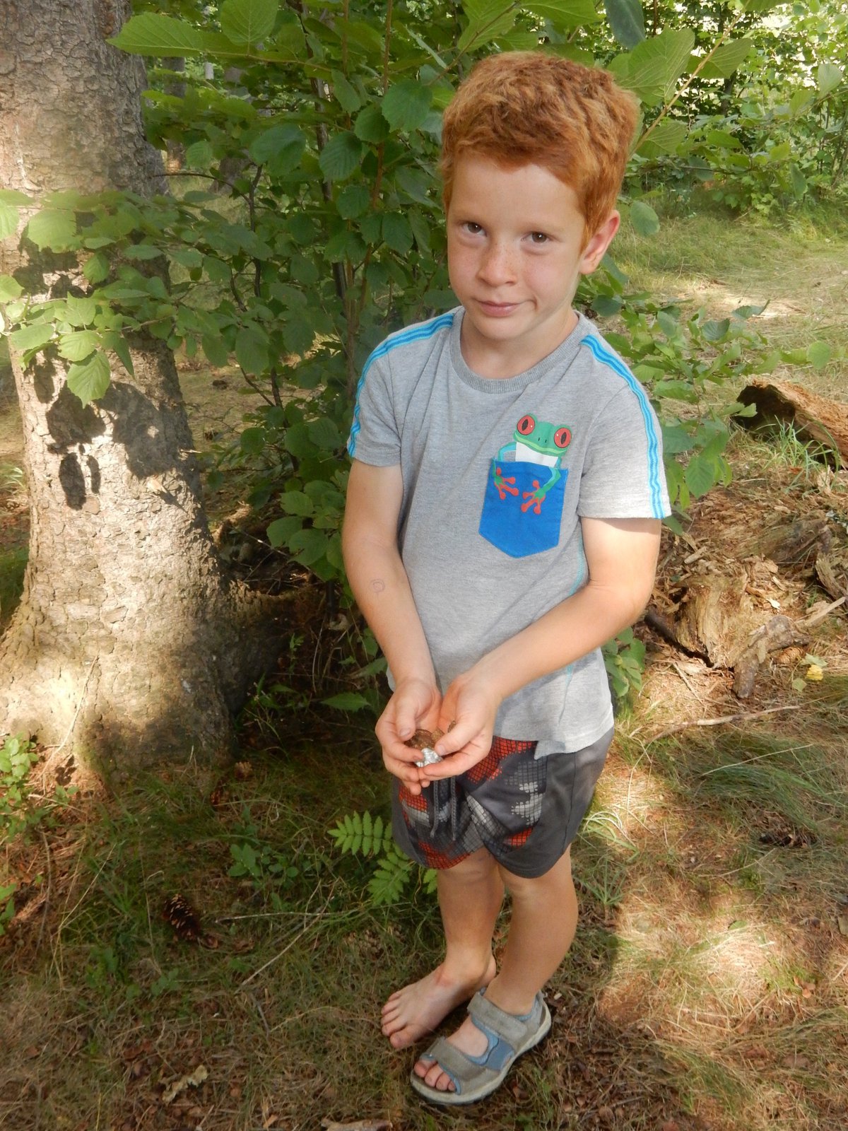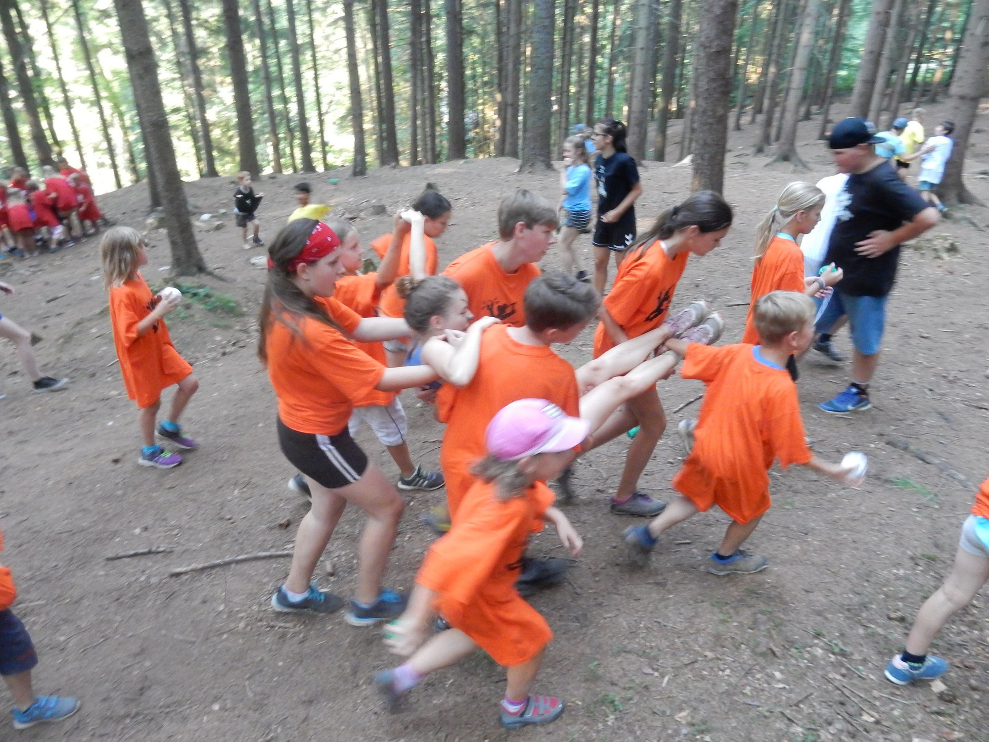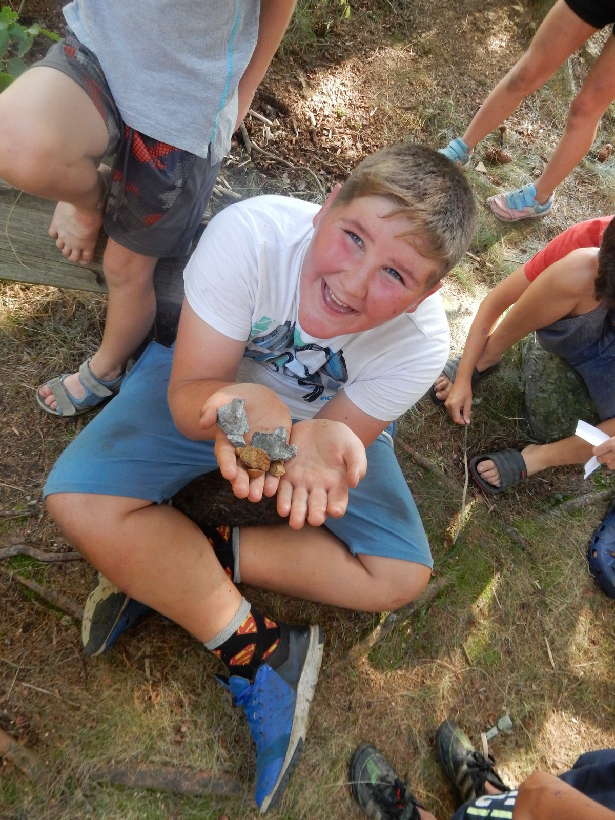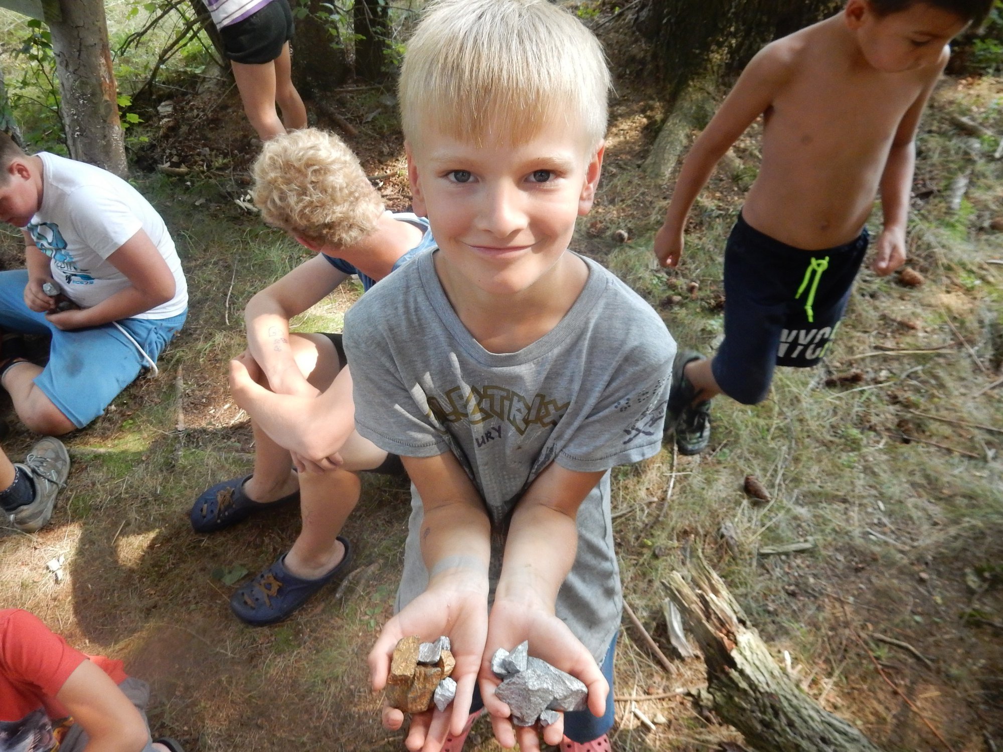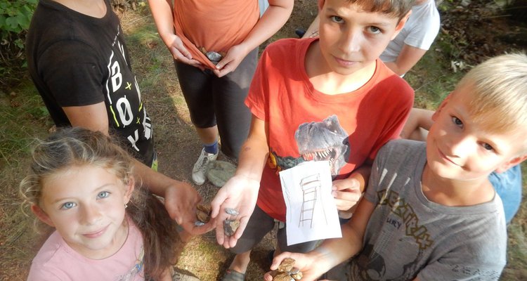 V poledním klidu jsme dnes potrénovali lukostřelbu. Kdo chtěl, mohl si přijít mimo soutěž zastřílet. Jako vždy jsme také vytěžili dnešní naleziště zlata a stříbra. Před svačinou byla rychlovka, ve které jsme měli a úkol po táboře najít různá slova a poskládat z nich příběh. Hlavní odpolední hrou byl lov bizonů. Ti byli představováni našimi vedoucími, my jsme se proměnili v lovce vyzbrojené papírovými koulemi. Museli jsme bizona zasáhnout a zároveň se od něho nenechat chytit. Když byla kořist skolena, ještě jsme ji museli dotáhnout na určené místo. Vrátili jsme se do tábora a už zase si hrajeme s míčem :-)