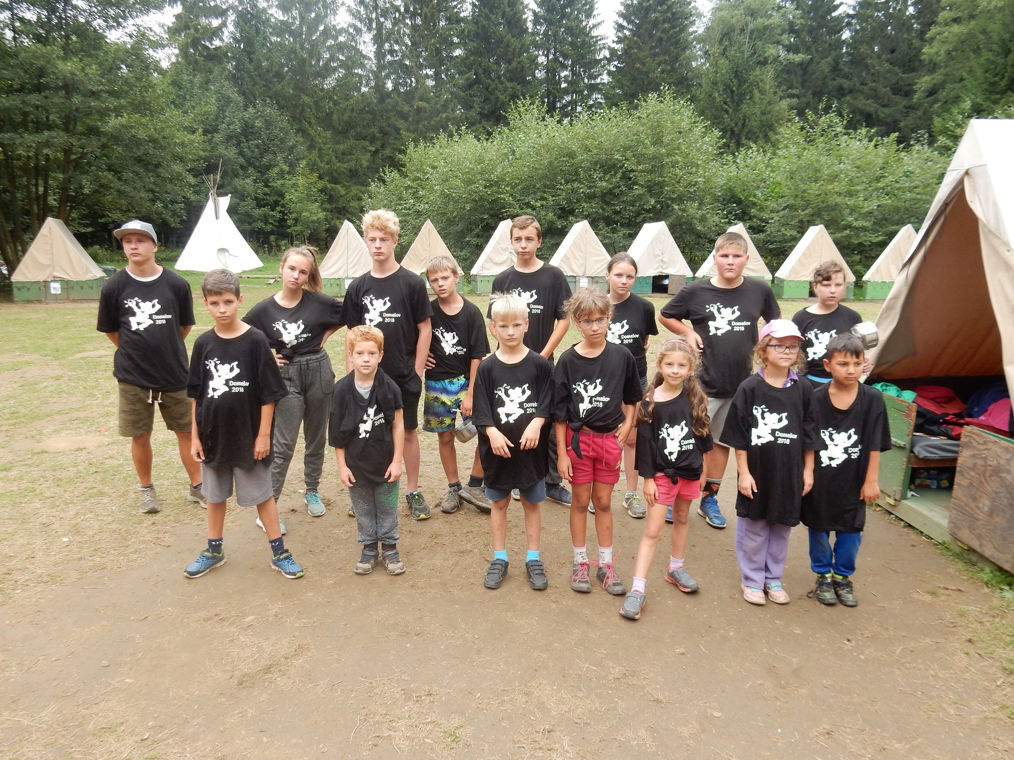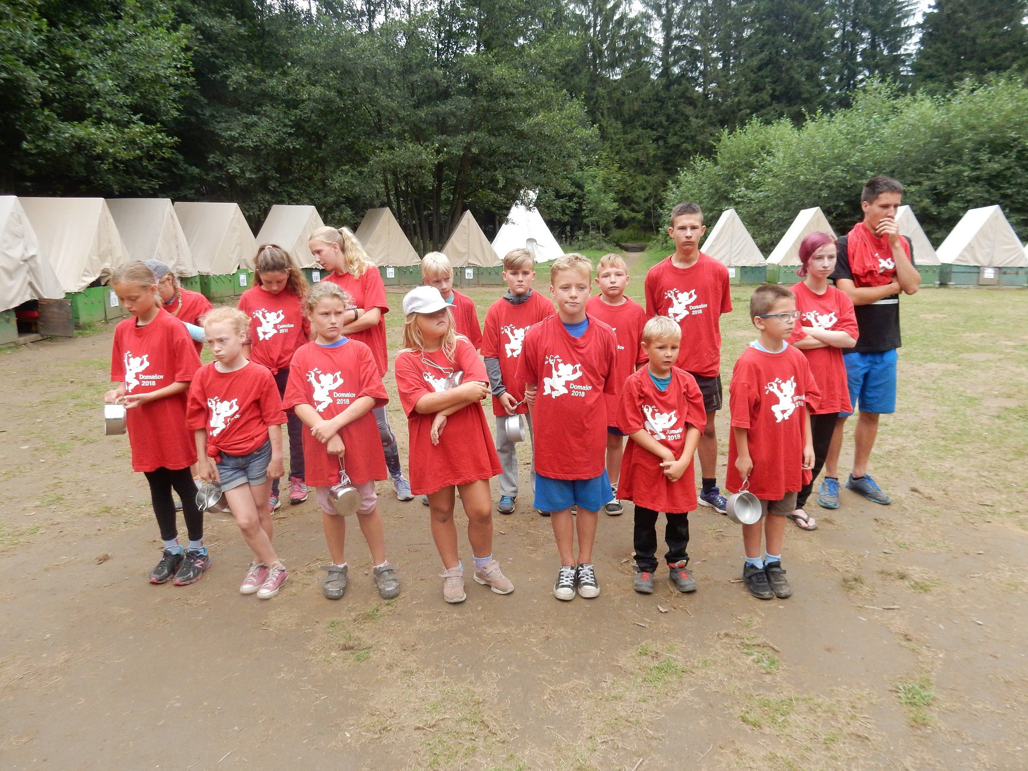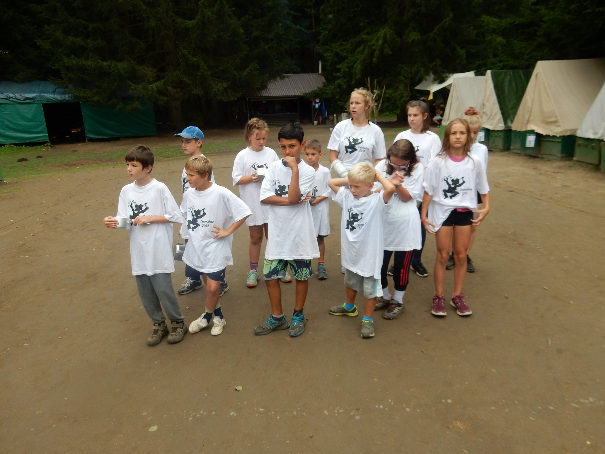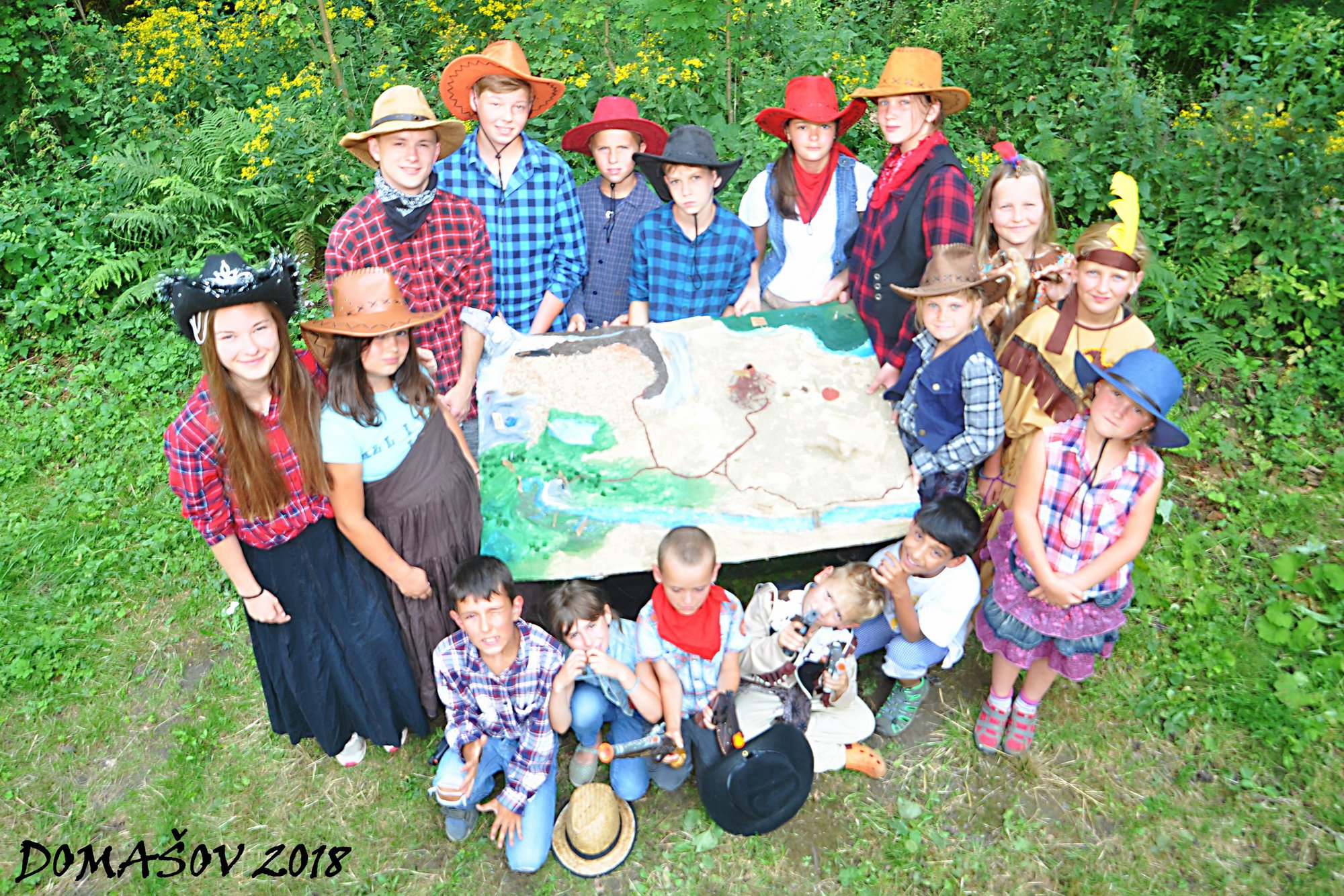 Dnes večer jsme nastoupili a přesunuli se k zatím nezapálenému ohni. Šerif nám poděkoval za odhodlání a statečnost, se kterou jsme celých čtrnáct dní bojovali. Všichni dostali do ruky svíčku a šerif ji dvěma táborníkům zapálil. Každý z nich potom zapálil dvěma dalším až měli všichni v rukou hořící svíčku. Tu jsme umístili každý tam, kde mu na táboře bylo nejlépe. Poté jsme zapálili poslední letošní táborový oheň a zazpívali hymnu. Následovalo vyhlášení výsledků celotáborové hry a nejlepších jednotlivců. Zazpíváme posledních pár písniček a zítra už se s vámi uvidíme. Na závěr vám děkujeme za přízeň a důvěru, se kterou jste nám svěřili svoje děti. Věříme, že se všem líbilo a že se zase uvidíme příští rok. Informace o táboře 2019 naleznete na našich stránkách www.tabor-domasov.cz nebo na našem facebooku. Ahoj !