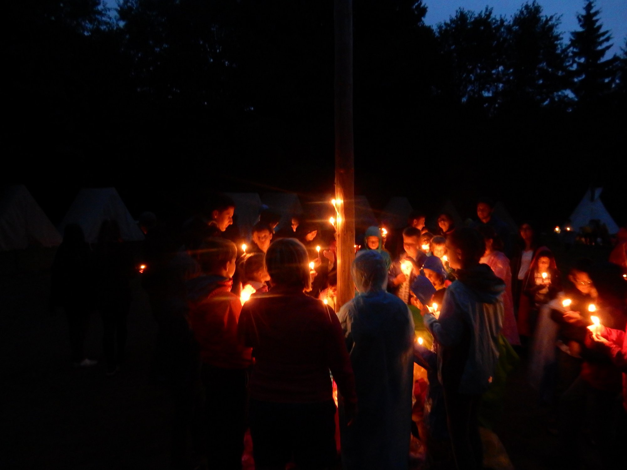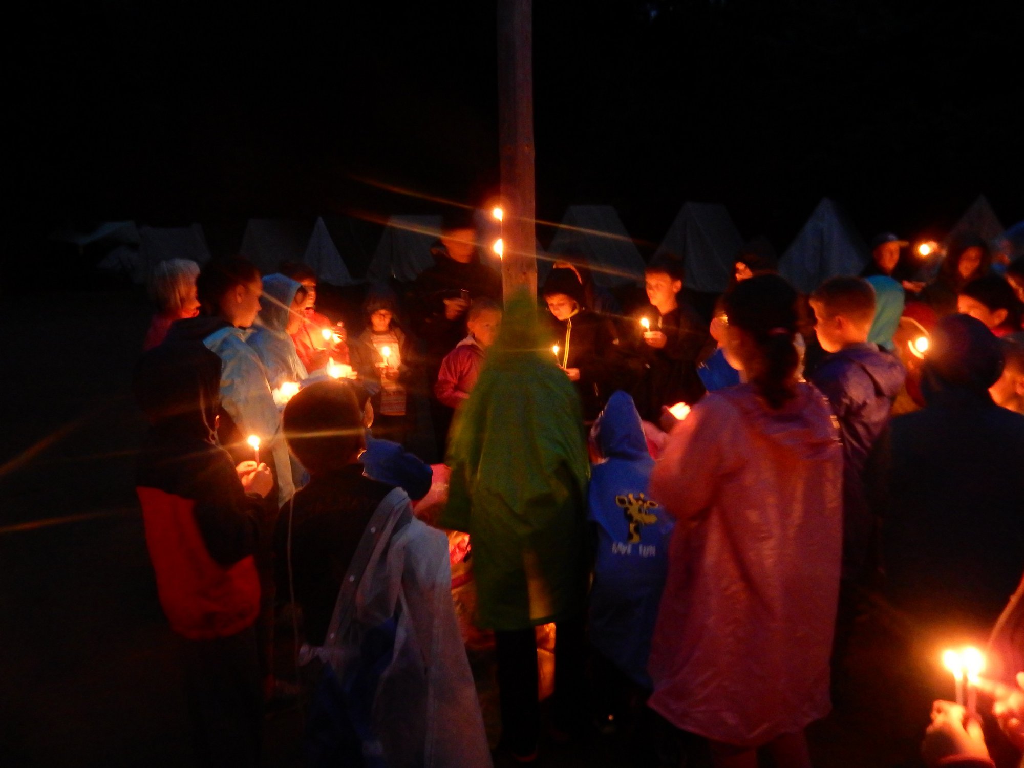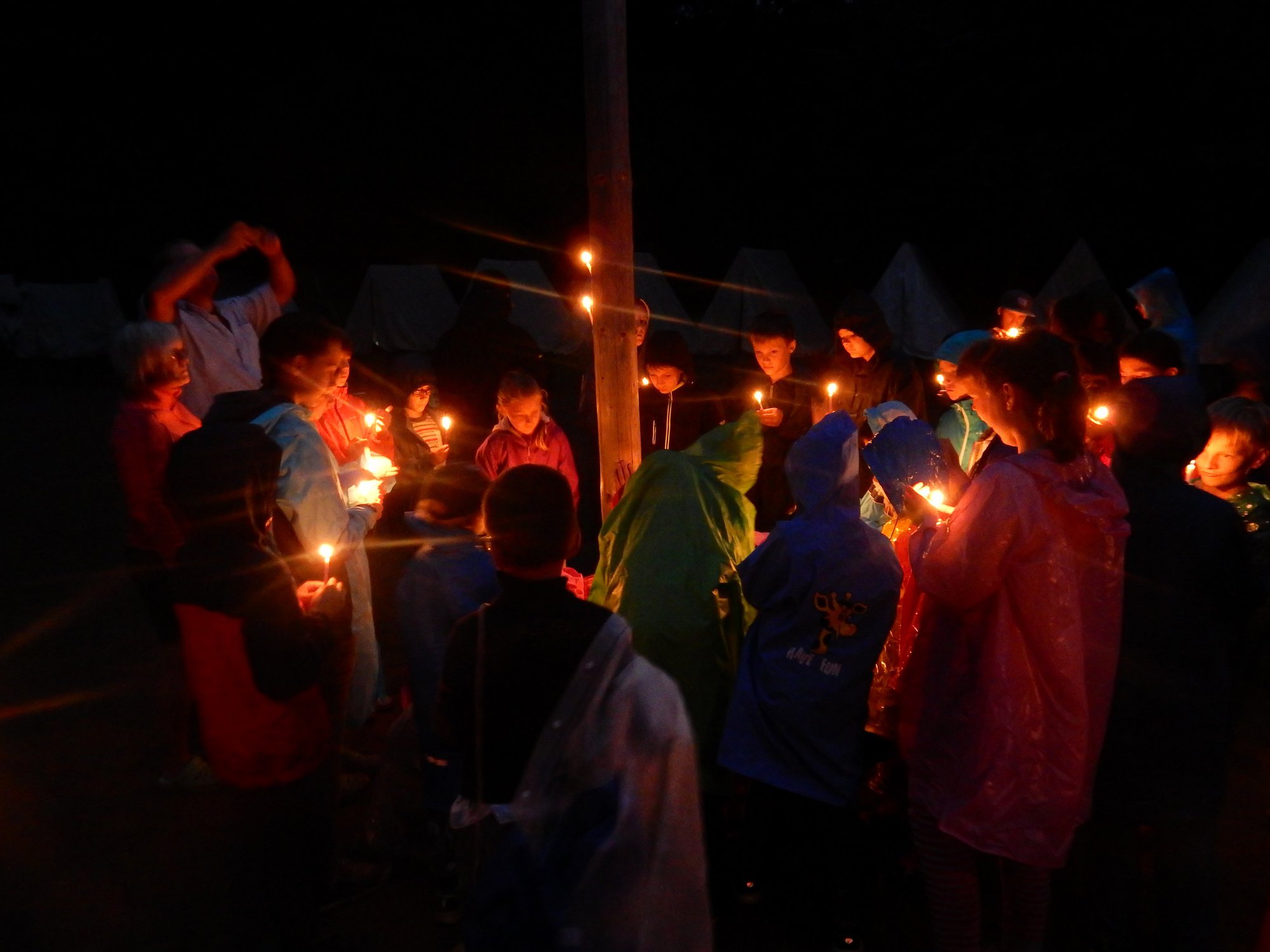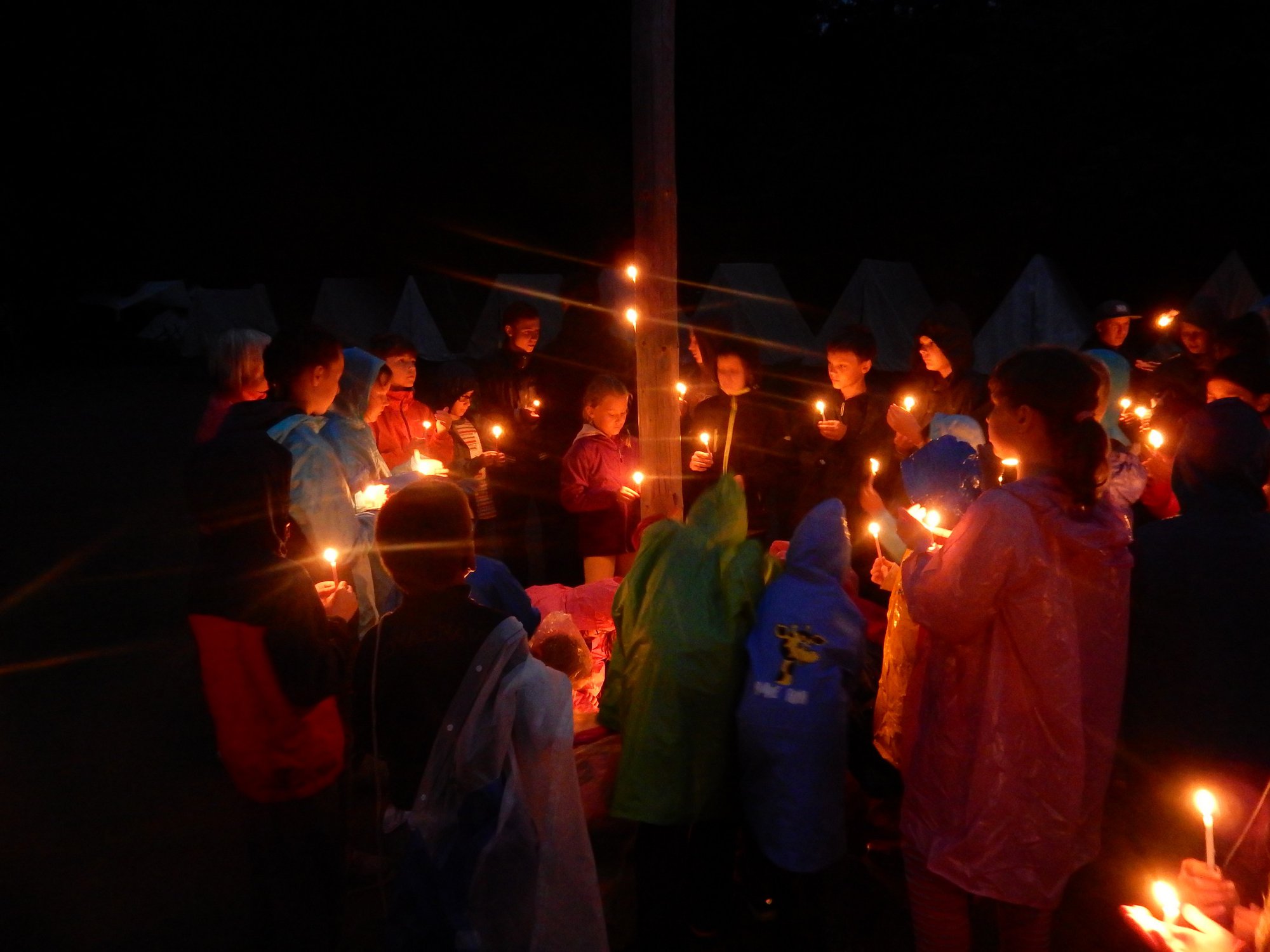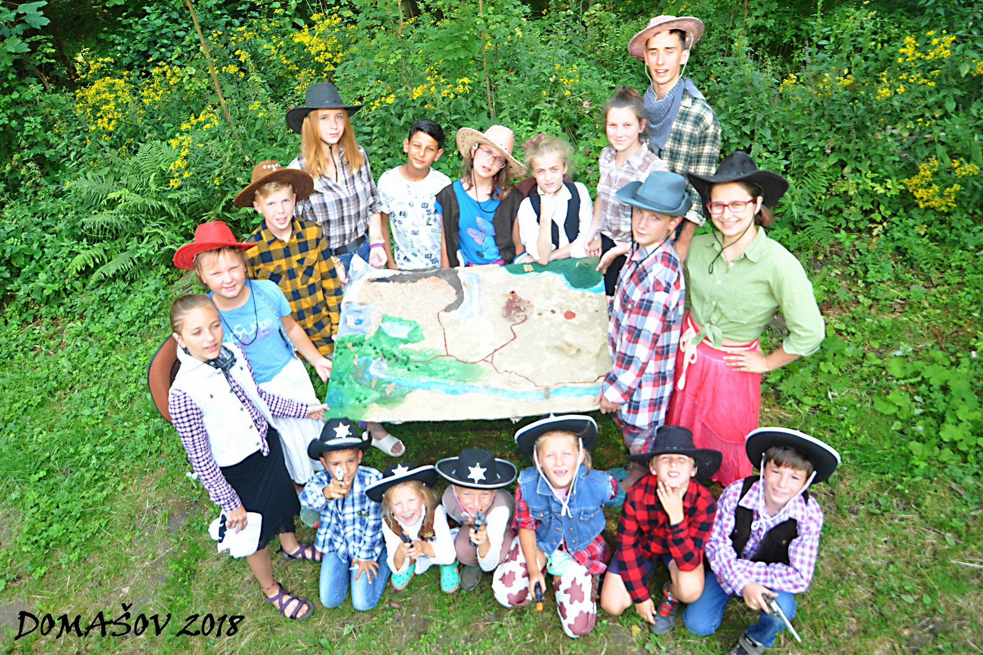 Dnes večer jsme nastoupili a přesunuli se k zatím nezapálenému ohni. Šerif nám poděkoval za odhodlání a statečnost, se kterou jsme celých čtrnáct dní bojovali. Všichni dostali do ruky svíčku a šerif ji dvěma táborníkům zapálil. Každý z nich potom zapálil dvěma dalším až měli všichni v rukou hořící svíčku. Tu jsme umístili každý tam, kde mu na táboře bylo nejlépe. Poté jsme zapálili poslední letošní táborový oheň a zazpívali hymnu. Následovalo vyhlášení výsledků celotáborové hry a nejlepších jednotlivců. Zazpíváme posledních pár písniček a zítra už se s vámi uvidíme. Na závěr vám děkujeme za přízeň a důvěru, se kterou jste nám svěřili svoje děti. Věříme, že se všem líbilo a že se zase uvidíme příští rok. Informace o táboře 2019 naleznete na našich stránkách www.tabor-domasov.cz nebo na našem facebooku. Ahoj !