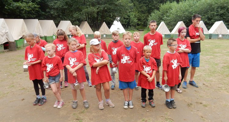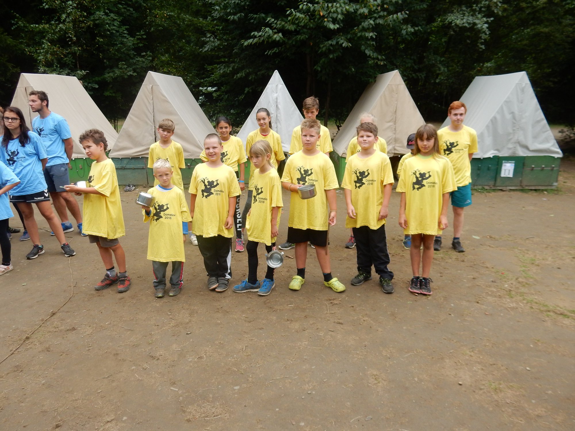 Je dobojováno ! Dnes dopoledne jsme si zahráli poslední velkou hru. Dali jsme do ní všechny zbytky sil, protože to byla poslední možnost jak ještě vylepšit zisk našich part. V lese každý tým dostal svoje území, kde si hlídal svoje zlato. Zároveň se snažil ukrást zlato jiných týmů. A do toho ještě měli uprostřed svoji skrýš bandité, kteří nám znepříjemňovali život. Po bitvě jsme s vrátili do tábora a čeká nás hlavně balení a uklízení. Na večer je plánován závěrečný táborový oheň, kde se dozvíme výsledky celotáborové hry.