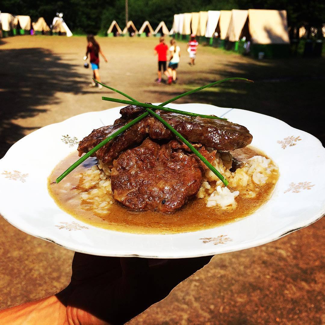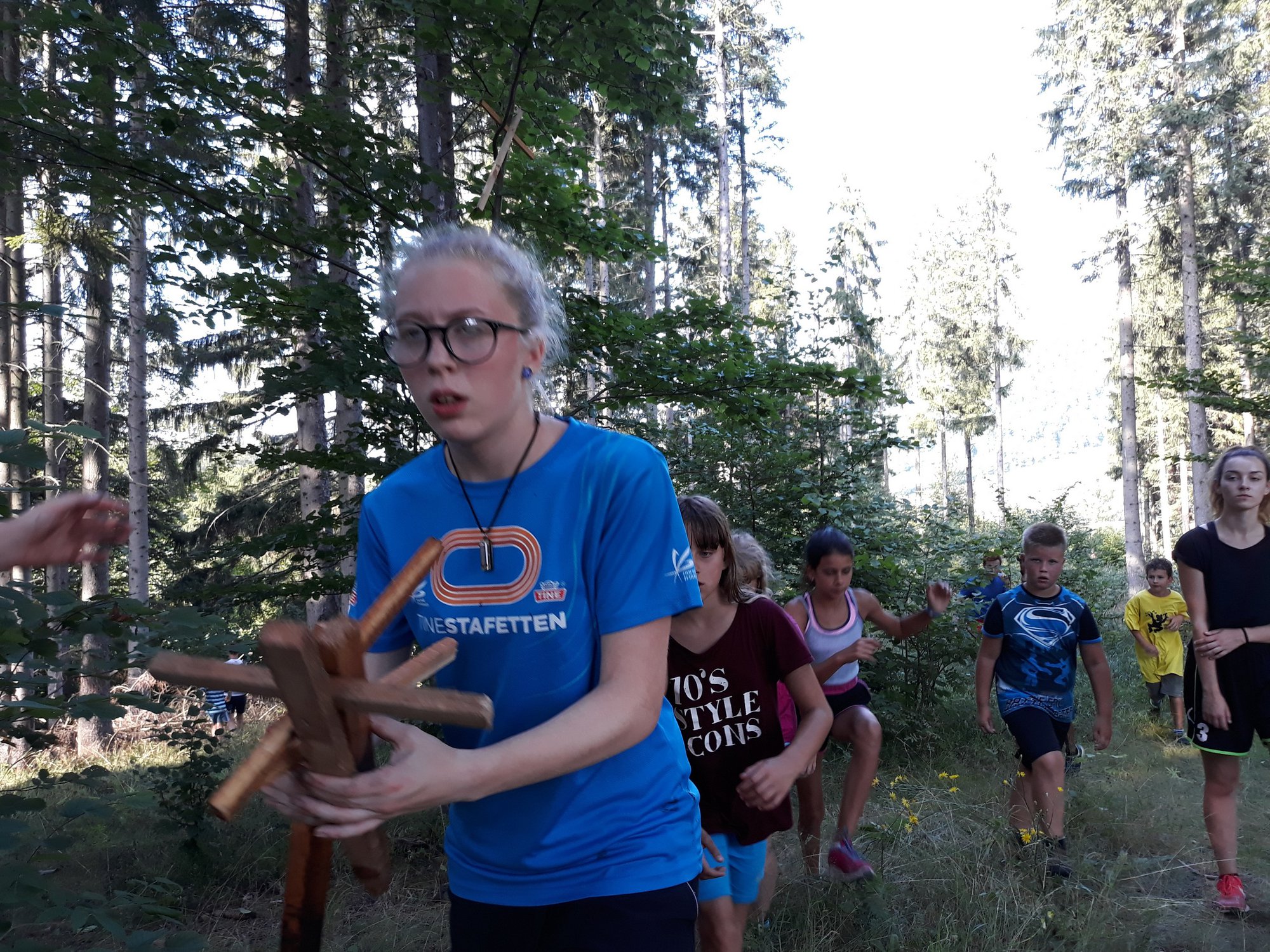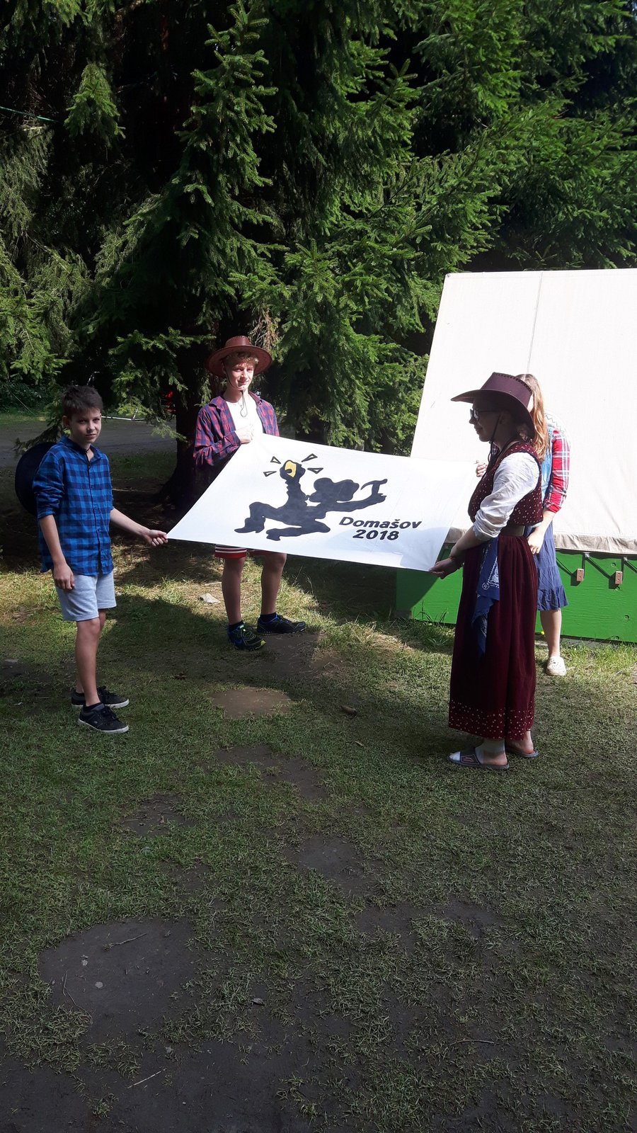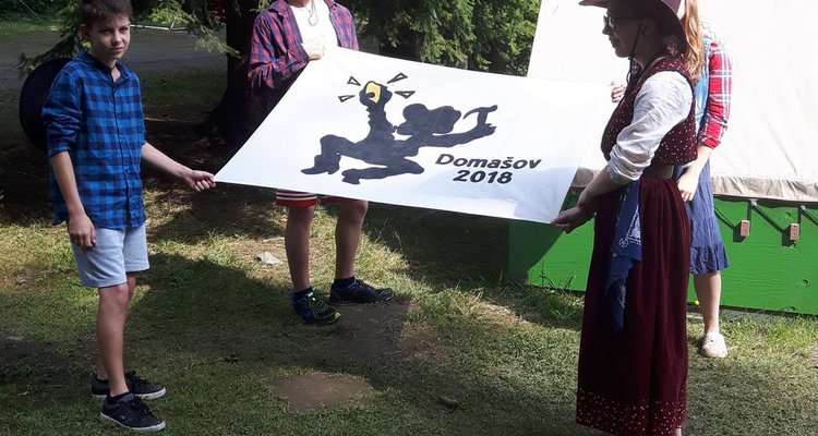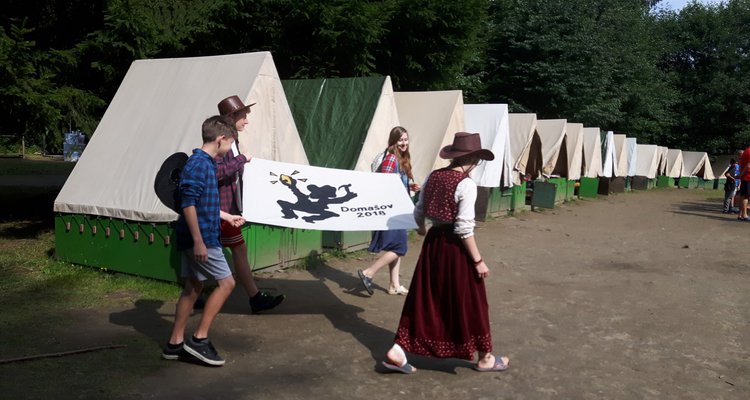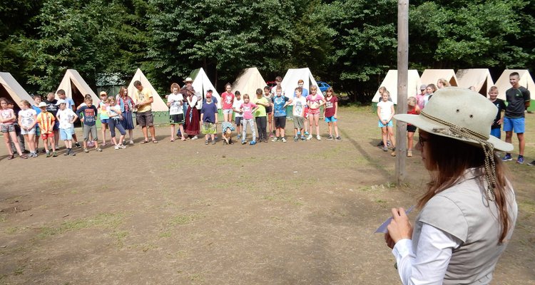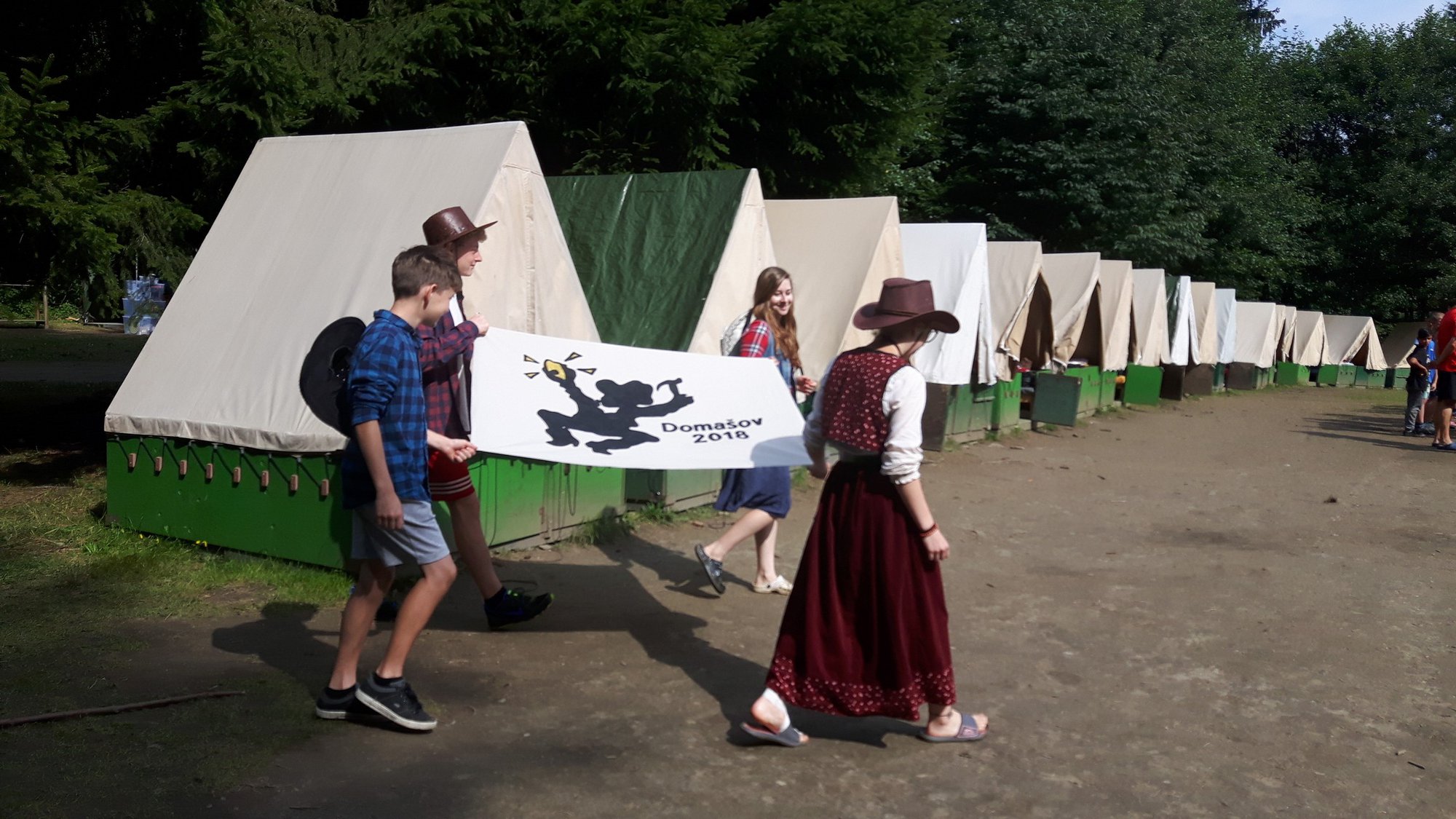 První táborovou noc jsme všichni přečkali bez problémů. Jak už to první den bývá, ještě před budíčkem už bylo připraveno spousta zlatokopů do akce. Počasí nám přálo a tak jsme se po snídani (chleba s vajíčkovou pomazánkou a pažitkou) vydali prohlédnout si širší okolí tábora. Na nástupu jsme vztyčili vlajku a dozvěděli se první informace o letošní celotáborové hře. Během dne se ještě seznámíme s mapou a s tím, jak na ní budeme postupovat. Ve zbytku dopoledne poměříme síly v kláních mezi našimi partami.