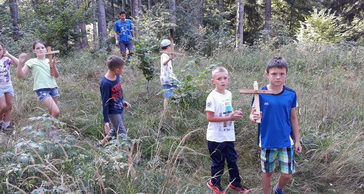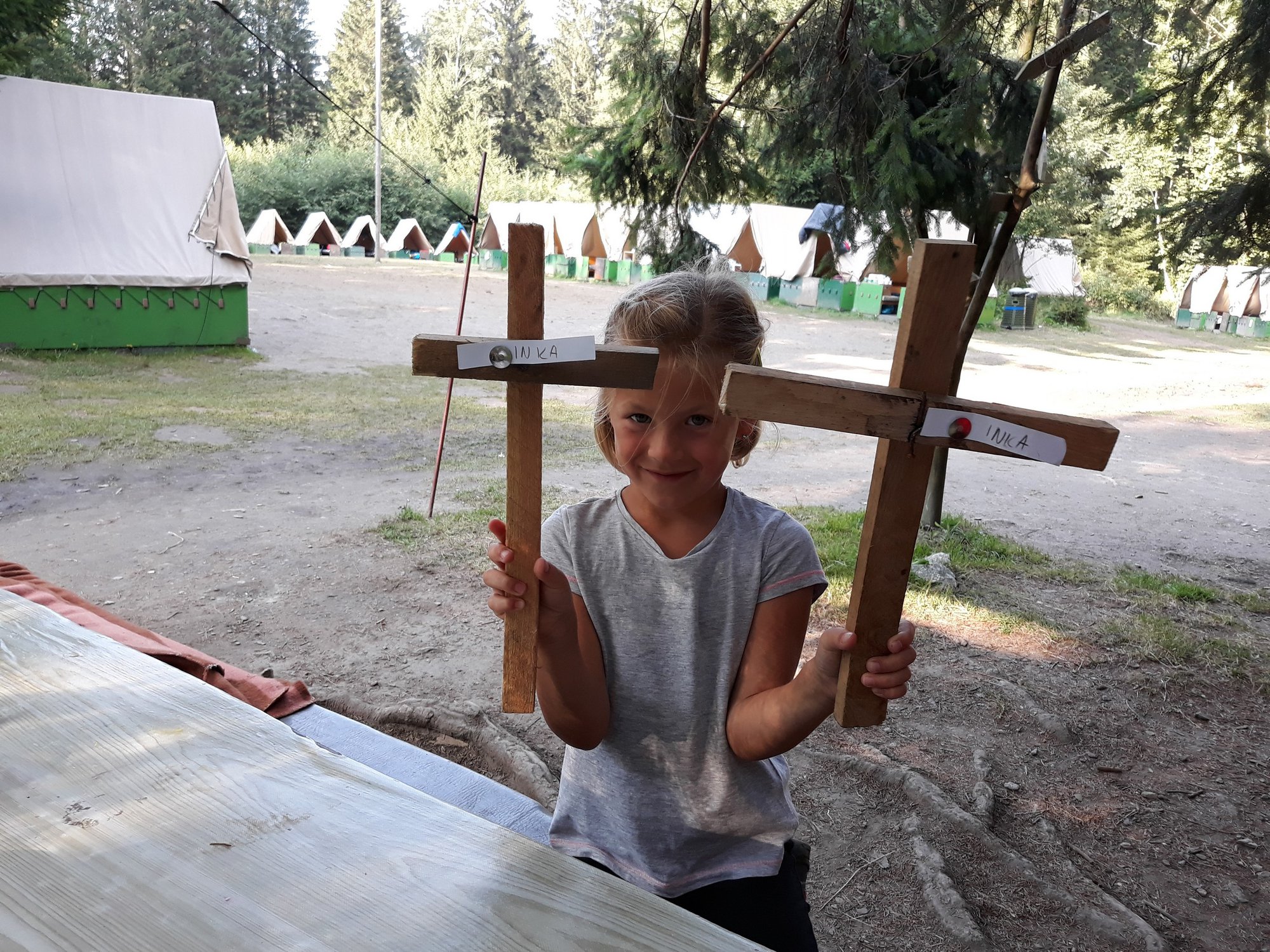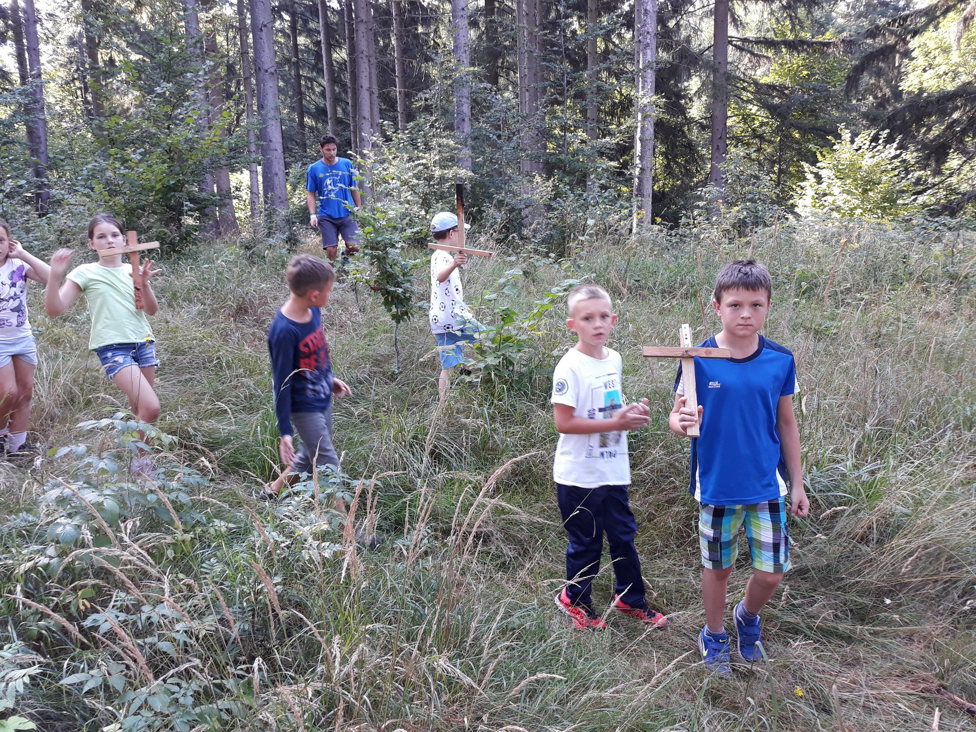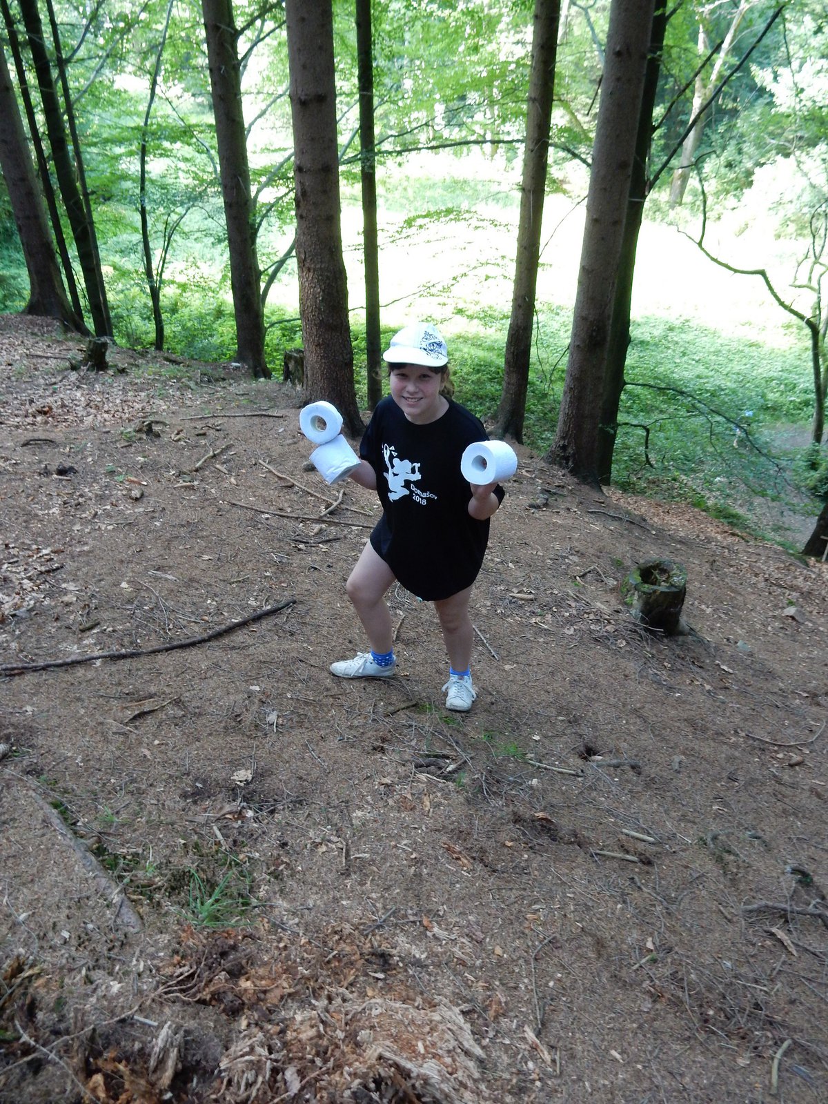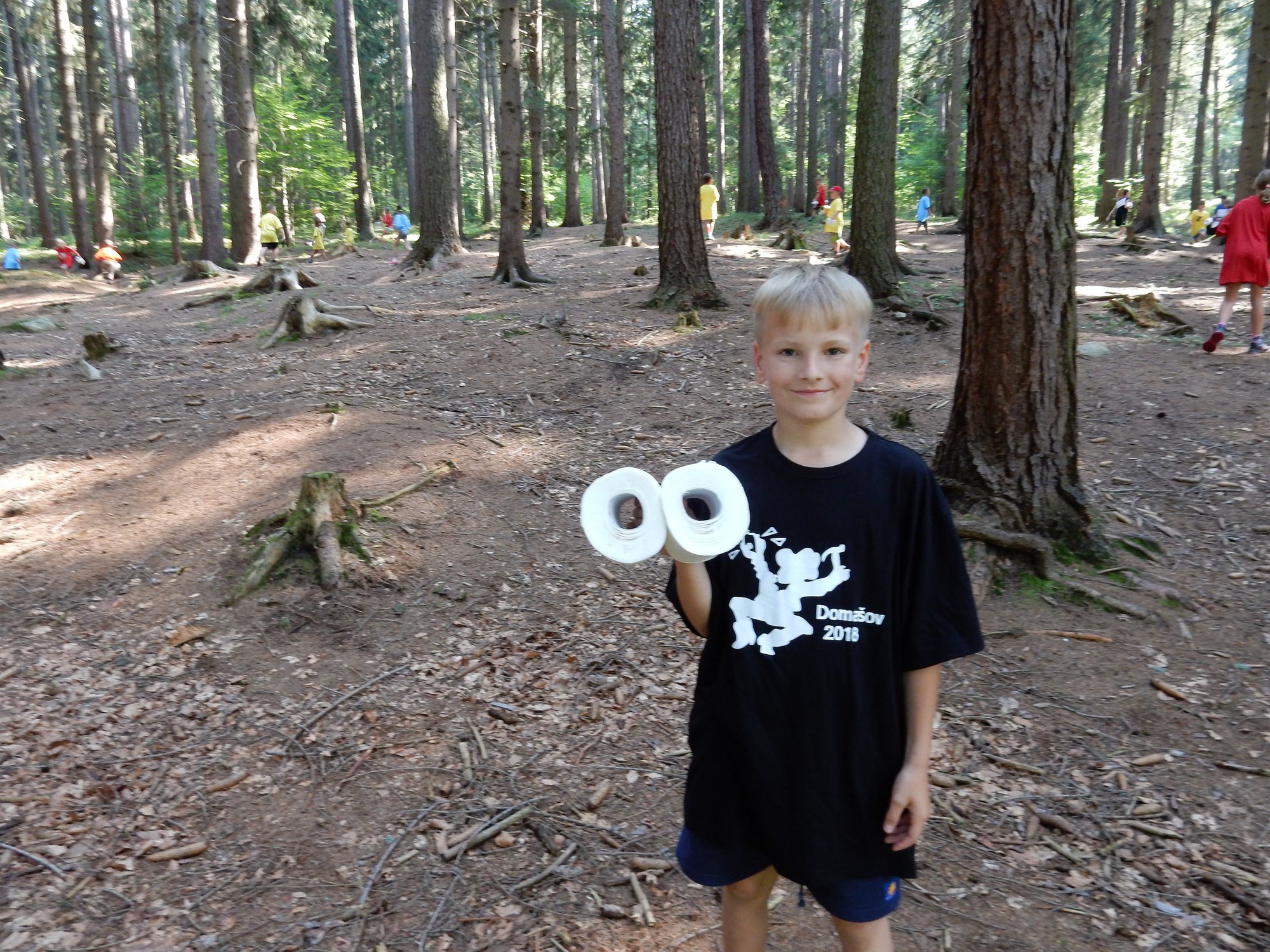 Odpoledne nás přepadly průjmy. Nebojte se, ne opravdové. Bylo to jen zábavnou formou provedené vybírání toaletních papírů, jak uvidíte na fotkách. Po svačině jsme se vypravili do okolí hledat kříže – památky po našich předchůdcích. Bylo jich po lese spousta a úspěch slavili ti, kteří hledali pečlivě, ne v rychlosti. Ale v lesích v okolí tábora se už dobře vyznáme a tak jsme nakonec našli všechny. Počasí nám po celý den přálo a louže z předchozího dne jsou již prakticky vysušeny. I po dvou běhavých hrách máme pořád dost sil na řádění na hřišti (poznámka redakce – takže doufáme že nebudete zase vzhůru před budíčkem !). Na závěr dne jsme se seznámili s mapou území, na kterém budeme hledat zlato. Večeře byla v italském duchu – těstoviny s prošutem a sušenými rajčaty. To je pro dnešek vše a zítra ahoj !