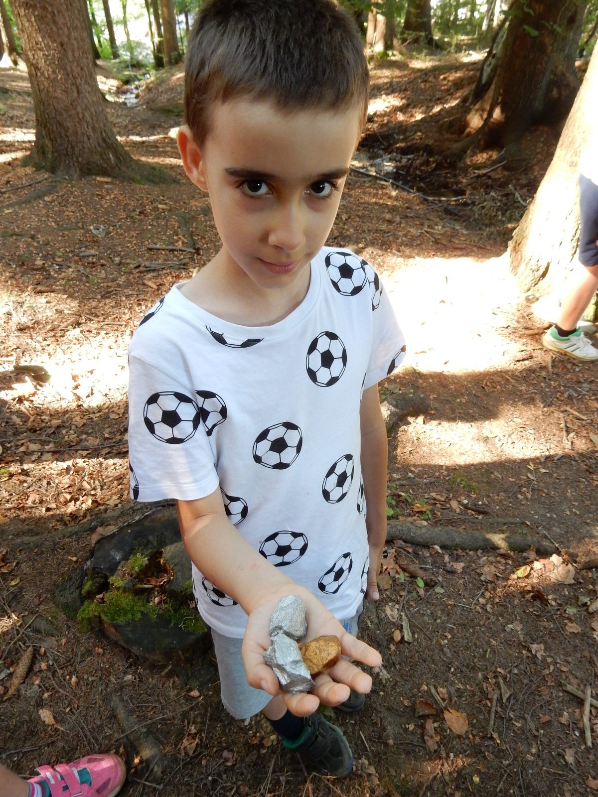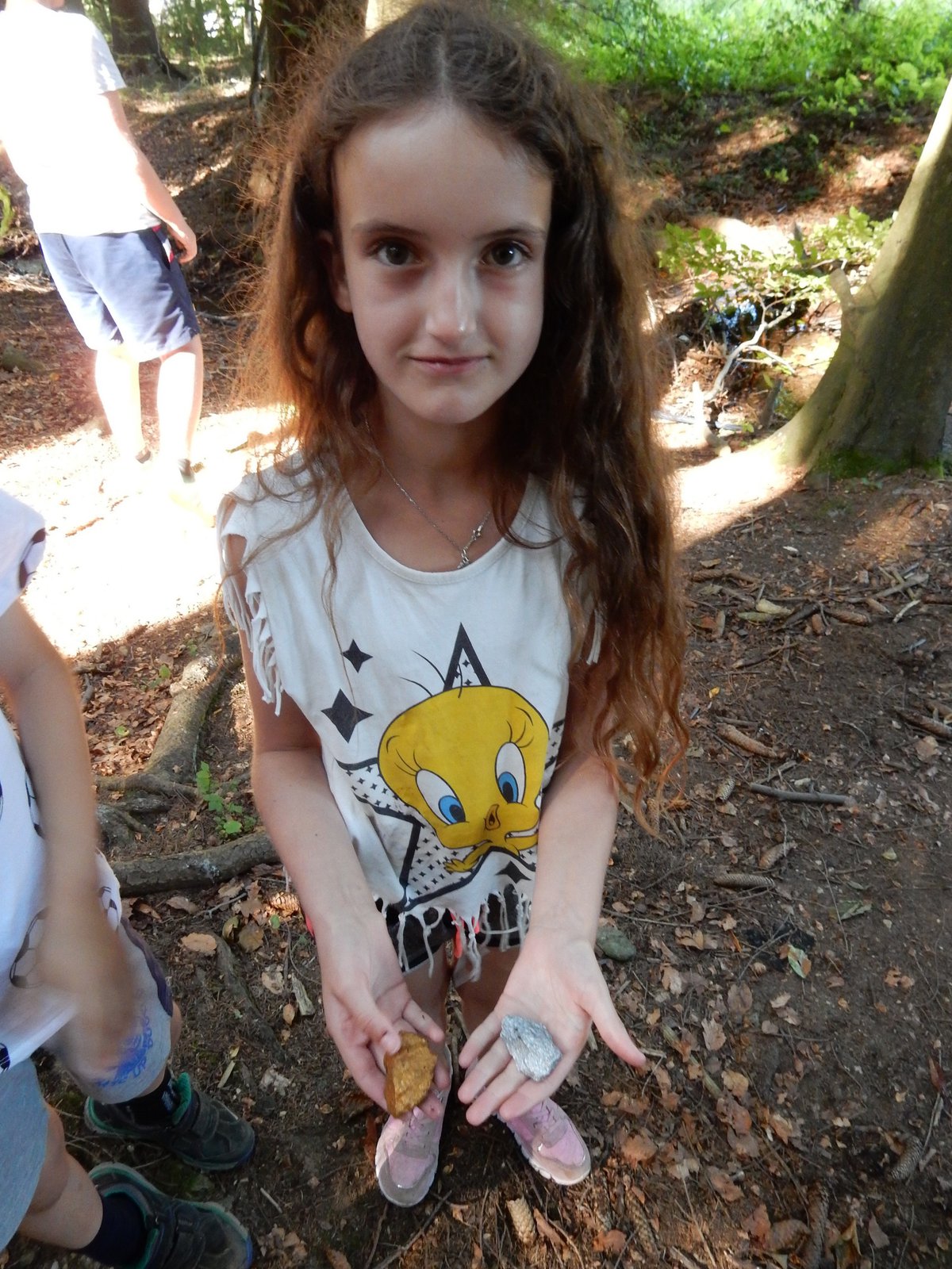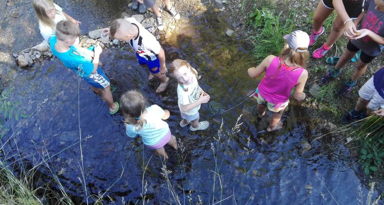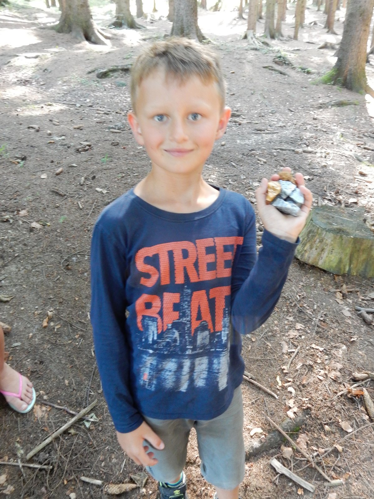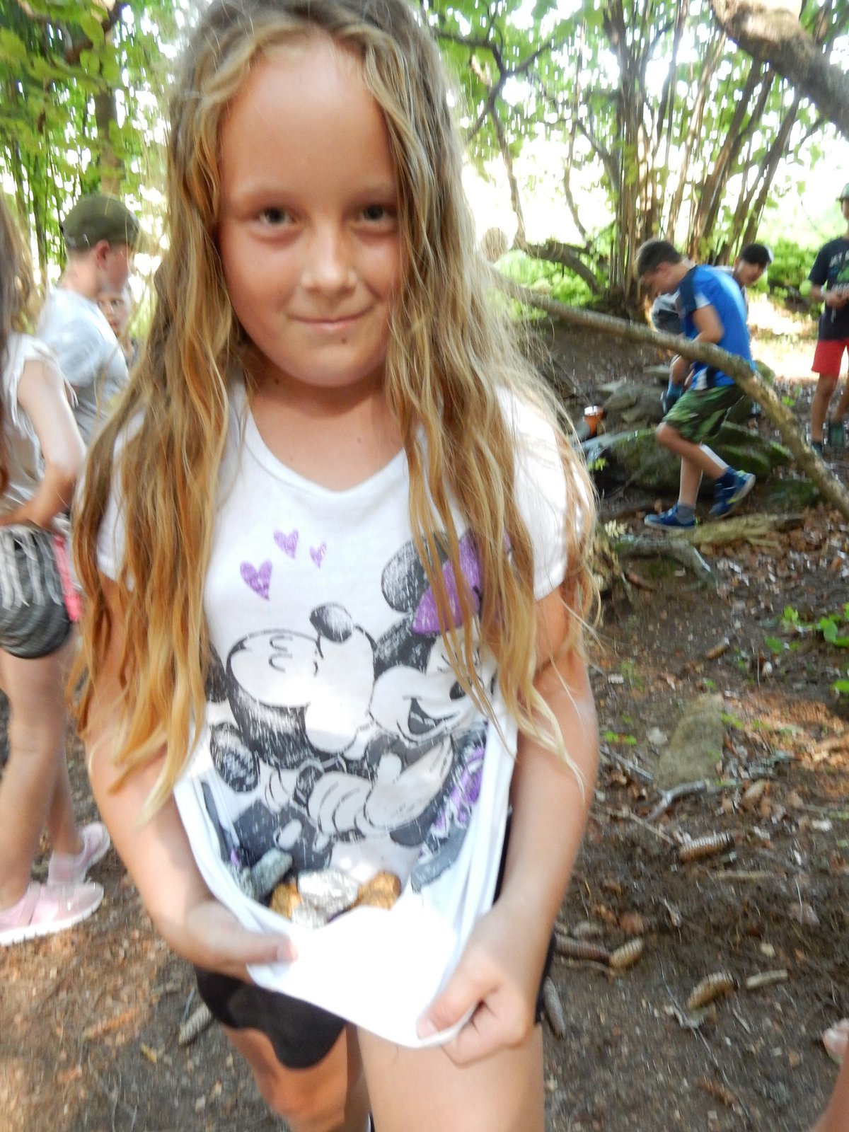 Z dopoledního klidu nás náhle vyrušilo volání a shon. Vždy jeden z nejstarších zlatokopů dostal za úkol svolat svůj oddíl a vyrazit do lesa najít a složit kousky tajné zprávy. Ta nás po vyluštění poslala na různá místa v okolí tábora, kde se měla nacházet truhla s pokladem. Truhlu jsme našli a byla v ní pro každý oddíl jen malá drobnost. Tak jednoduché to zase s hledáním zlata být nemůže, ale my se nevzdáváme a budeme hledat dál ! Ve zbytku dopoledne jsme se učili vázat uzly, zpívali s kytarou a podobné lehčí zaměstnání. Každý se do něčeho zapojil. Po obědě si dopřejeme polední klid a protože je koupací počasí, plánujeme se jít vykoupat.