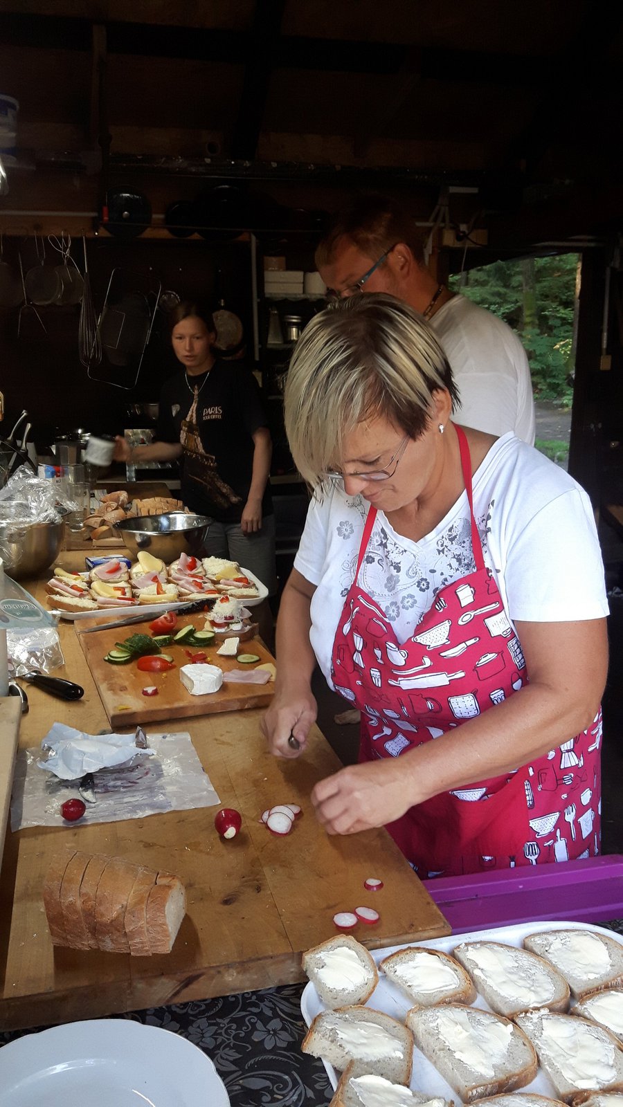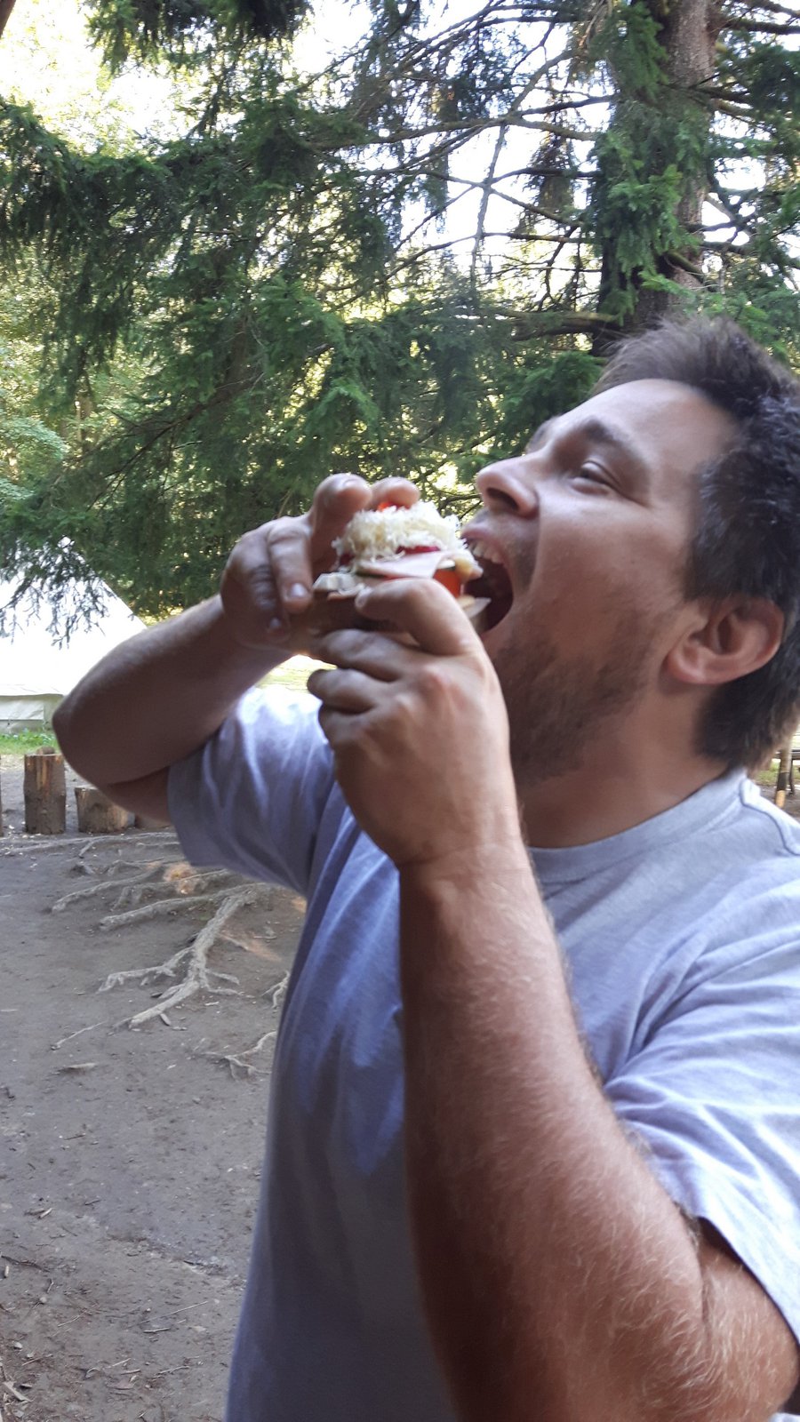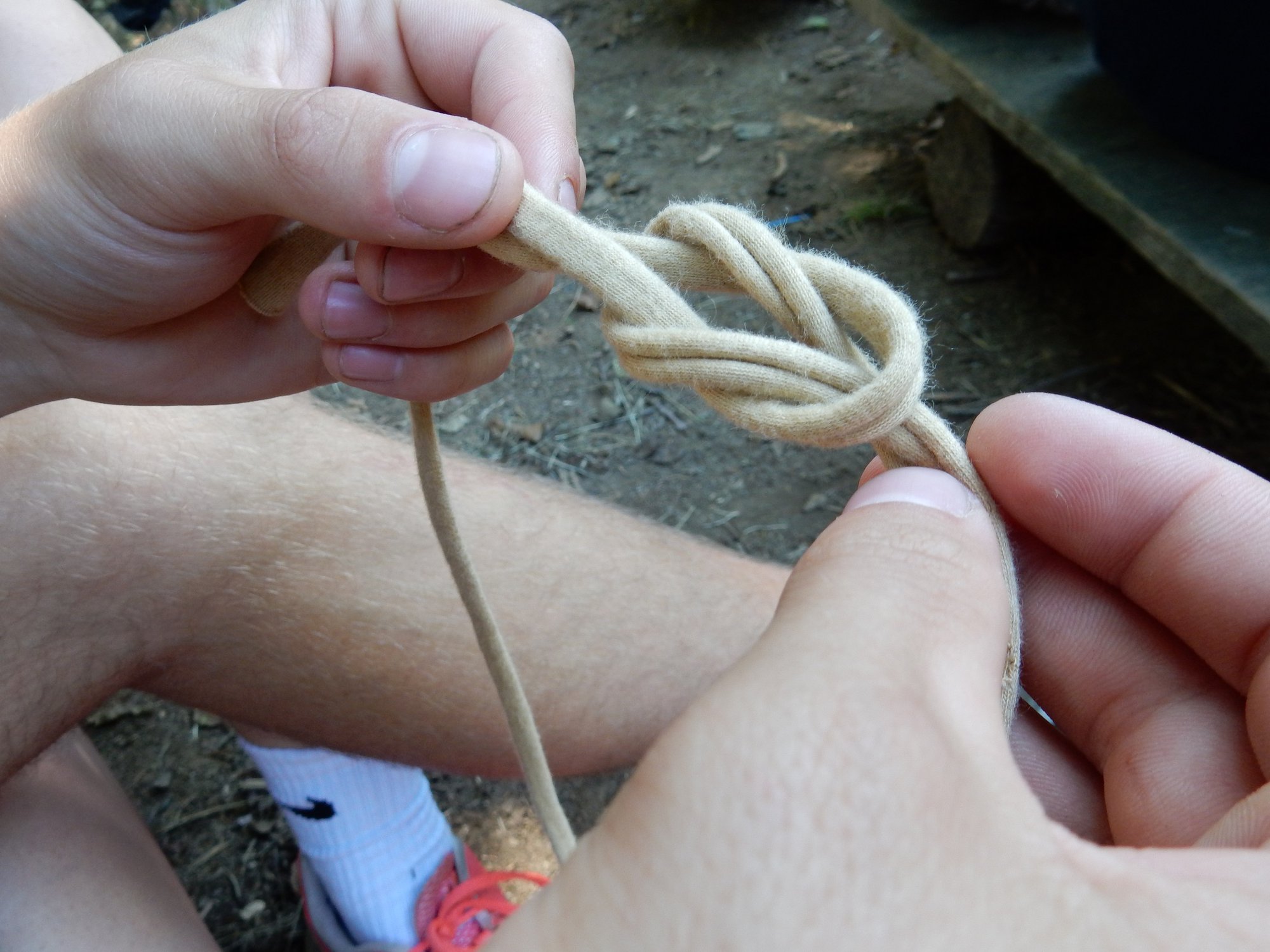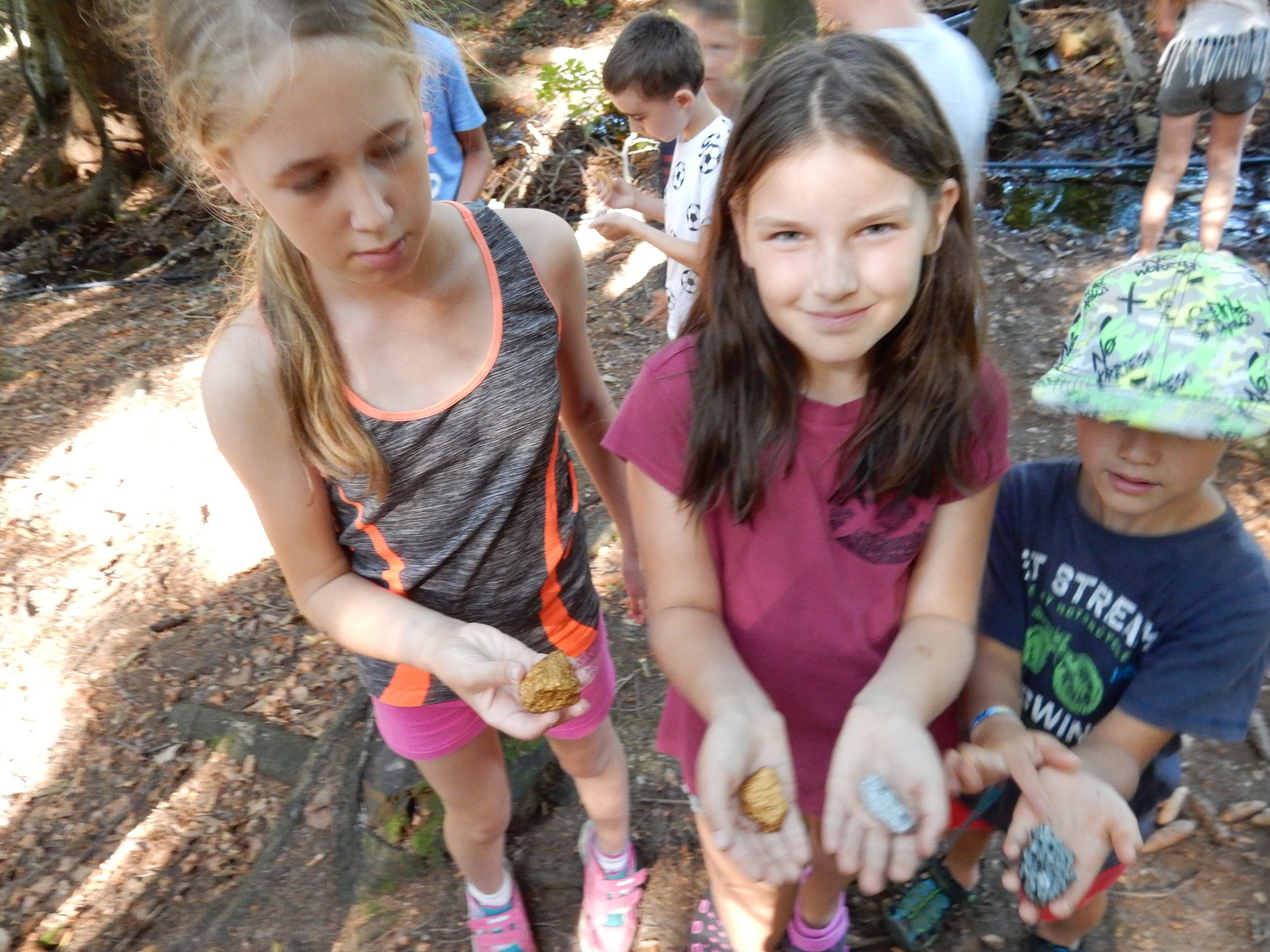 Z dopoledního klidu nás náhle vyrušilo volání a shon. Vždy jeden z nejstarších zlatokopů dostal za úkol svolat svůj oddíl a vyrazit do lesa najít a složit kousky tajné zprávy. Ta nás po vyluštění poslala na různá místa v okolí tábora, kde se měla nacházet truhla s pokladem. Truhlu jsme našli a byla v ní pro každý oddíl jen malá drobnost. Tak jednoduché to zase s hledáním zlata být nemůže, ale my se nevzdáváme a budeme hledat dál ! Ve zbytku dopoledne jsme se učili vázat uzly, zpívali s kytarou a podobné lehčí zaměstnání. Každý se do něčeho zapojil. Po obědě si dopřejeme polední klid a protože je koupací počasí, plánujeme se jít vykoupat.