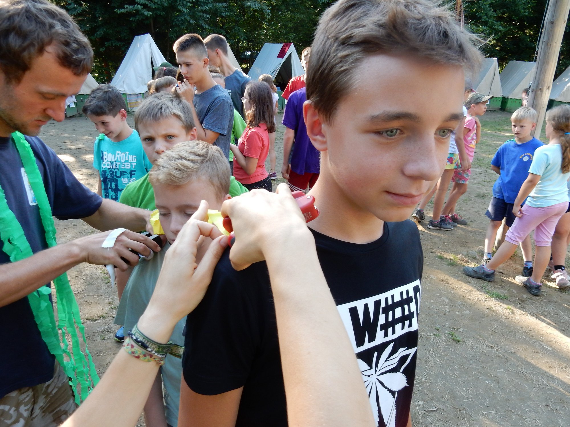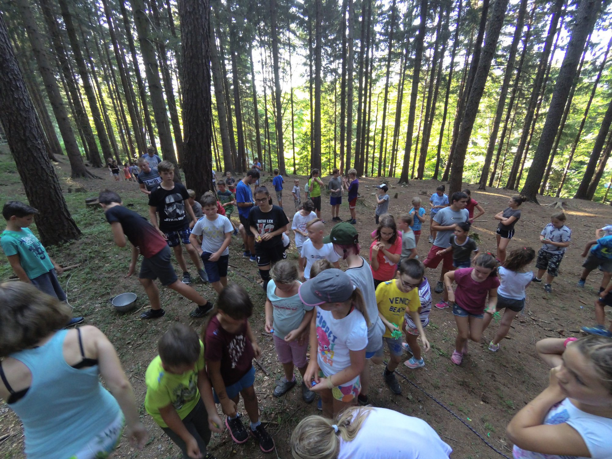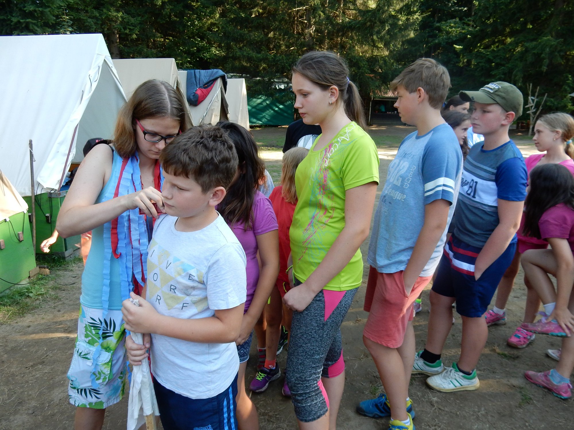 Probudili jsme se do slunečného dne a jako obvykle jsme začali rozcvičkou a hygienou. Po pestrobarevné snídani jsme měli nástup ve “zlatokopeckém”, na kterém jsme se dozvěděli výsledky ze včerejších her. Zatím je všude klid a pohoda, ale máme takové tušení, že dopoledne něco velkého přijde …
