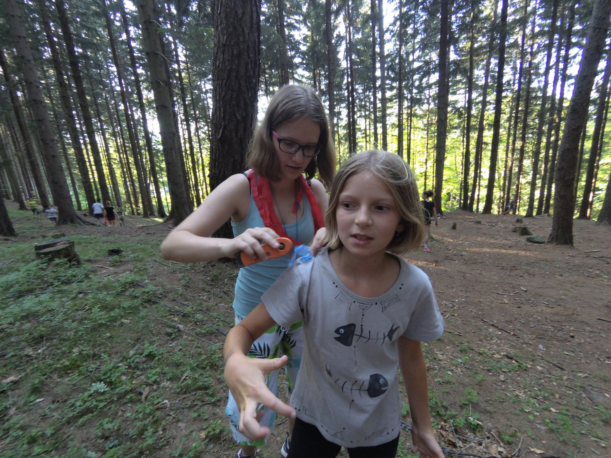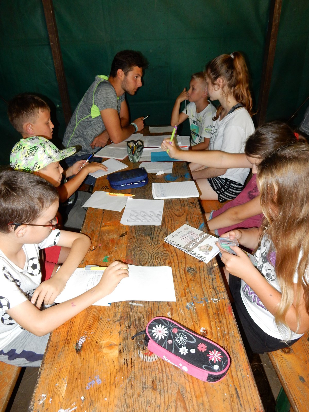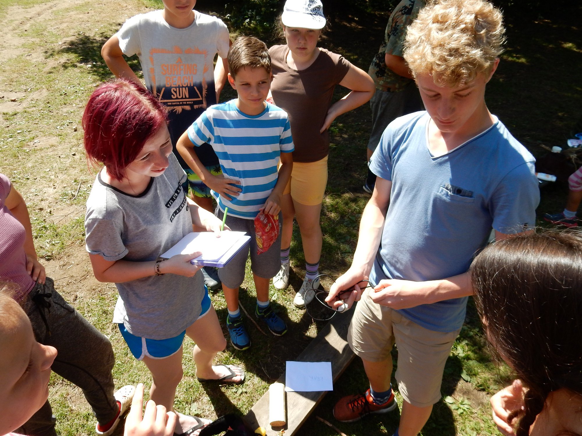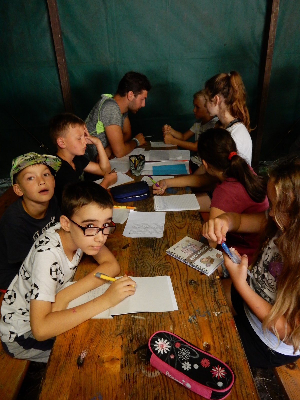 Probudili jsme se do slunečného dne a jako obvykle jsme začali rozcvičkou a hygienou. Po pestrobarevné snídani jsme měli nástup ve “zlatokopeckém”, na kterém jsme se dozvěděli výsledky ze včerejších her. Zatím je všude klid a pohoda, ale máme takové tušení, že dopoledne něco velkého přijde …