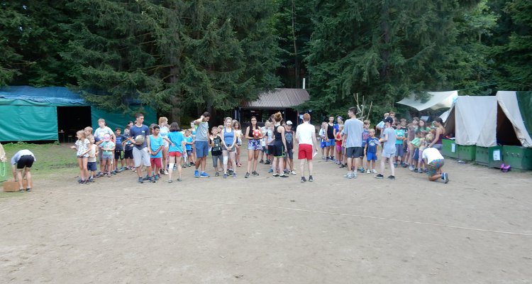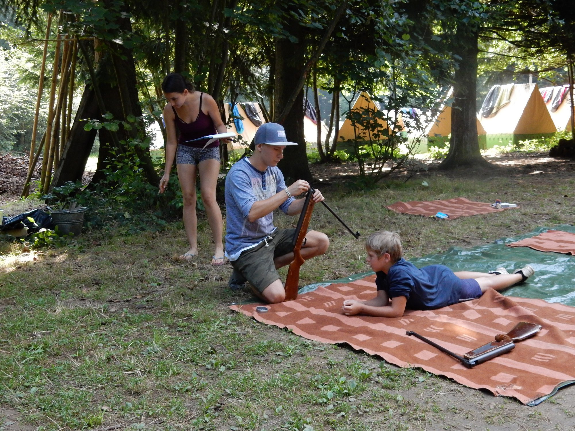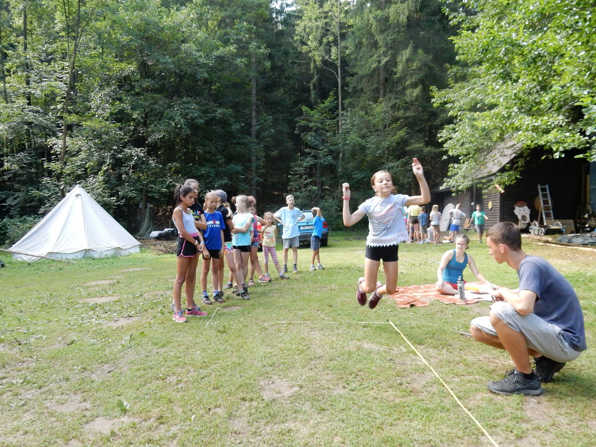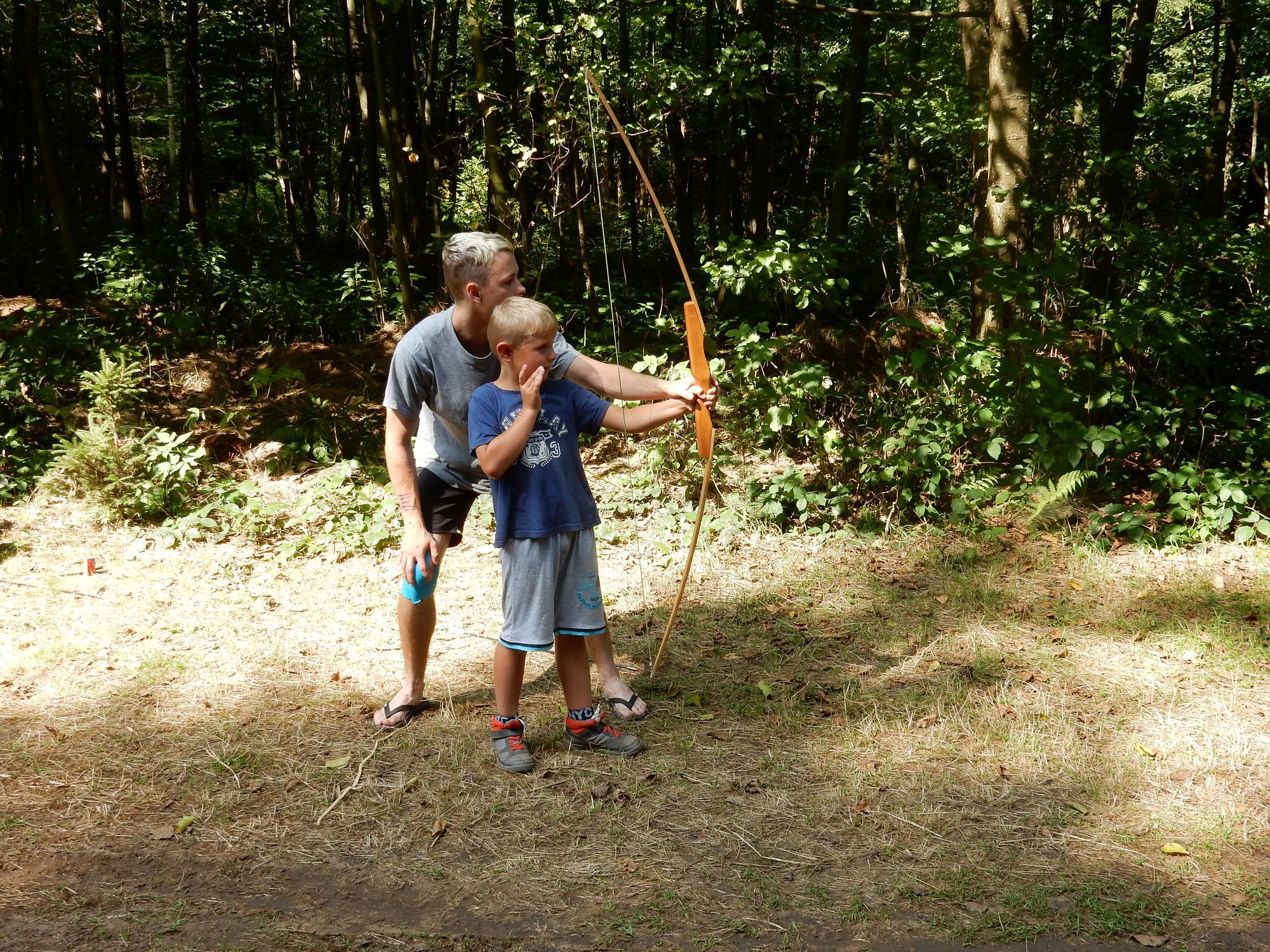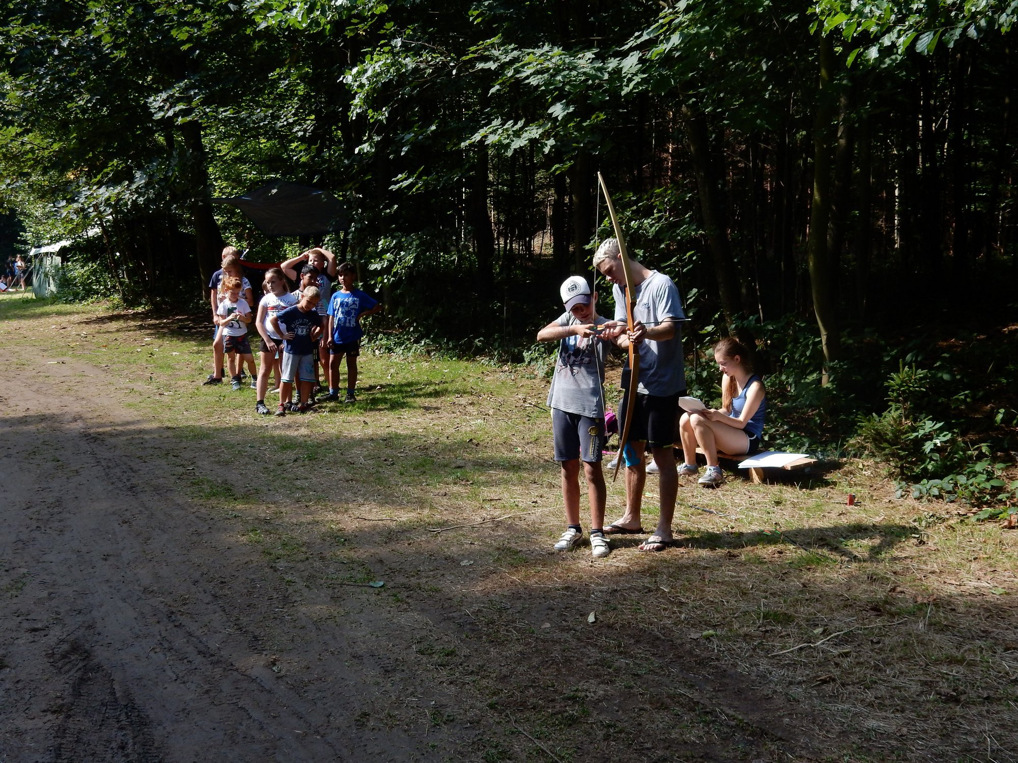 Po včerejší noční hře jsme měli budíček až v 8 a probudili jsme se do dalšího slunečného dne. Po včerejší bitvě jsme dnes pro změnu tužili přátelství a uspořádali jsme tábornické olympijské hry. Zahájení obstaral atlet s pochodní a po něm jsme se rozprchli po disciplínách. Kromě člunkového běhu, podhmatu a skoku dalekého jsme měli možnost si zastřílet z luku, ze vzduchovky a zaházet šipkami. To všechno se nám na divokém západě bude hodit každý den. Na každou disciplínu můžeme jít třikrát, takže až do oběda budeme zlepšovat své výkony, abychom se vám mohli pochlubit prvními diplomy.