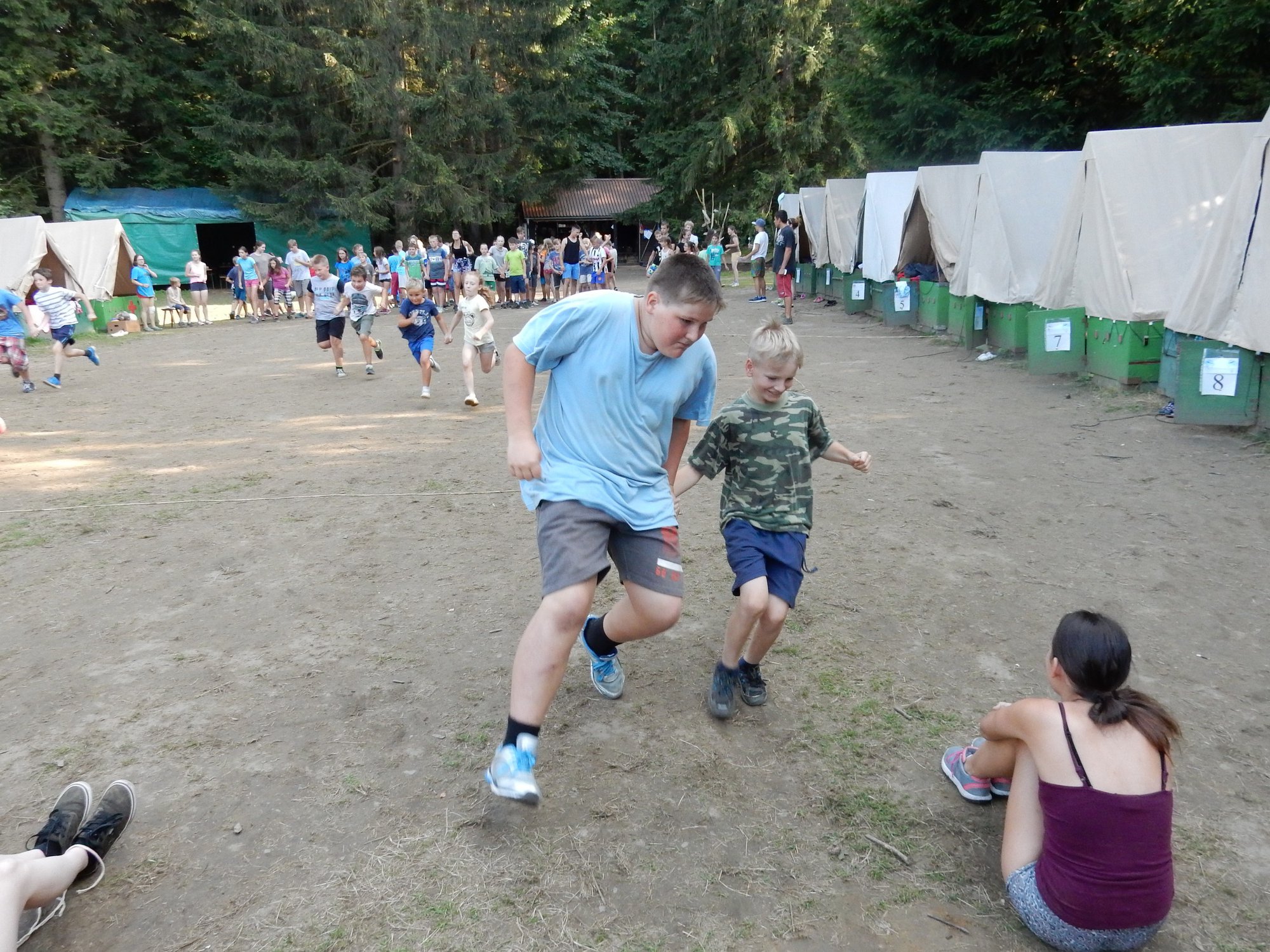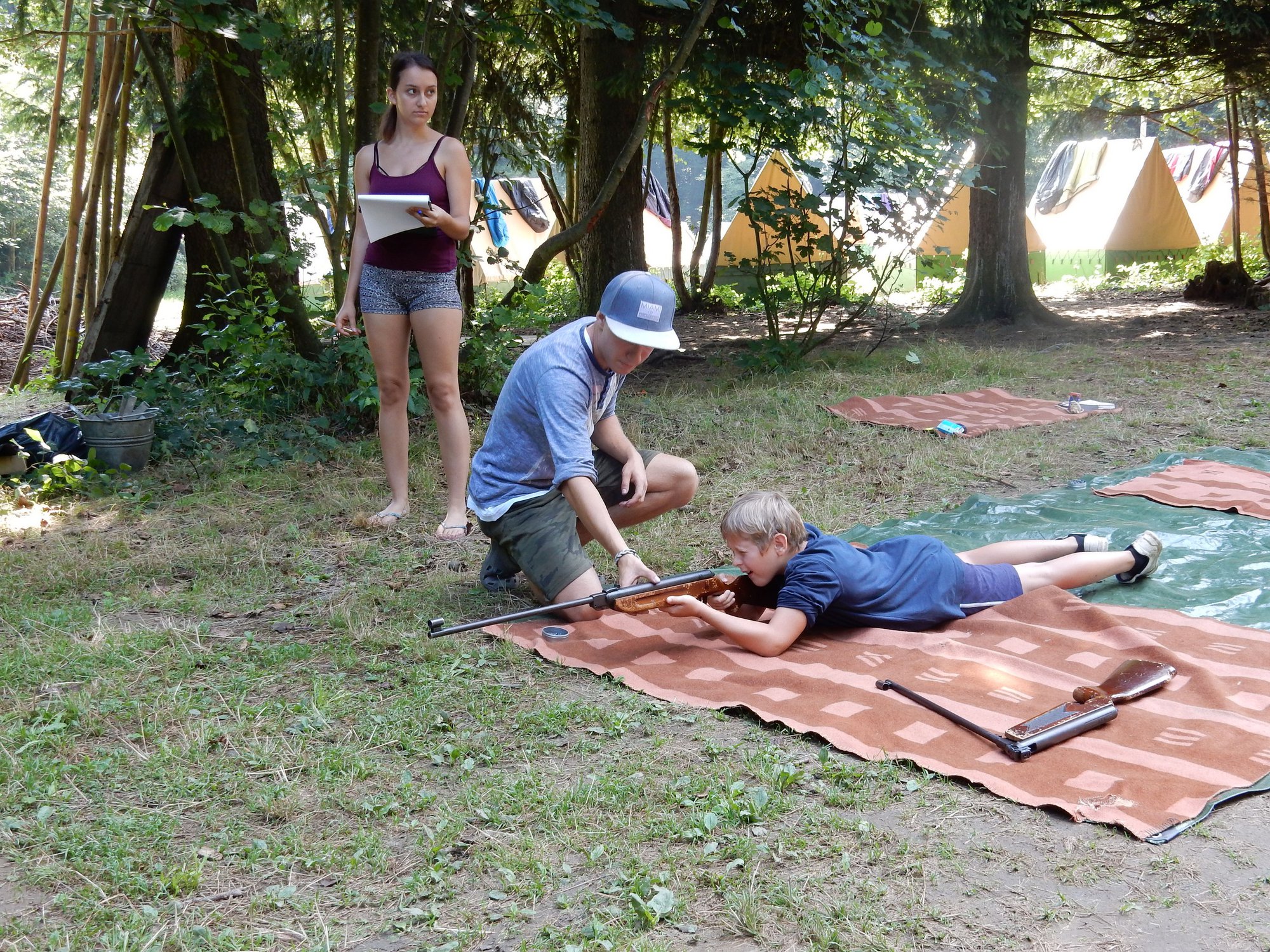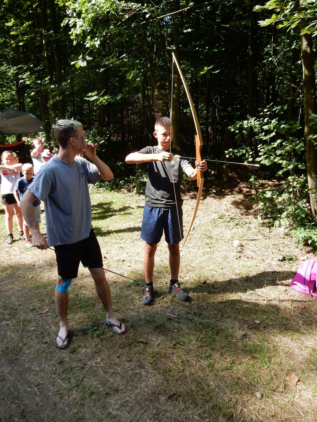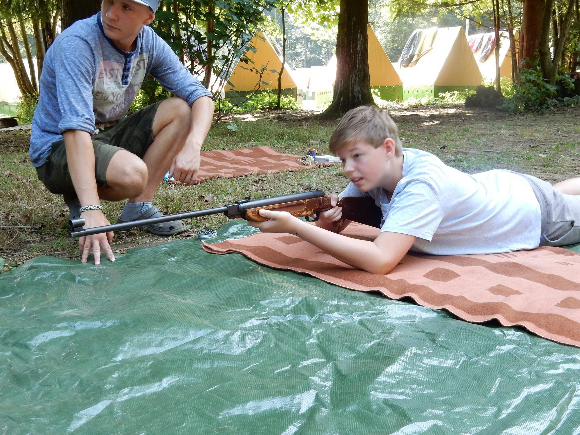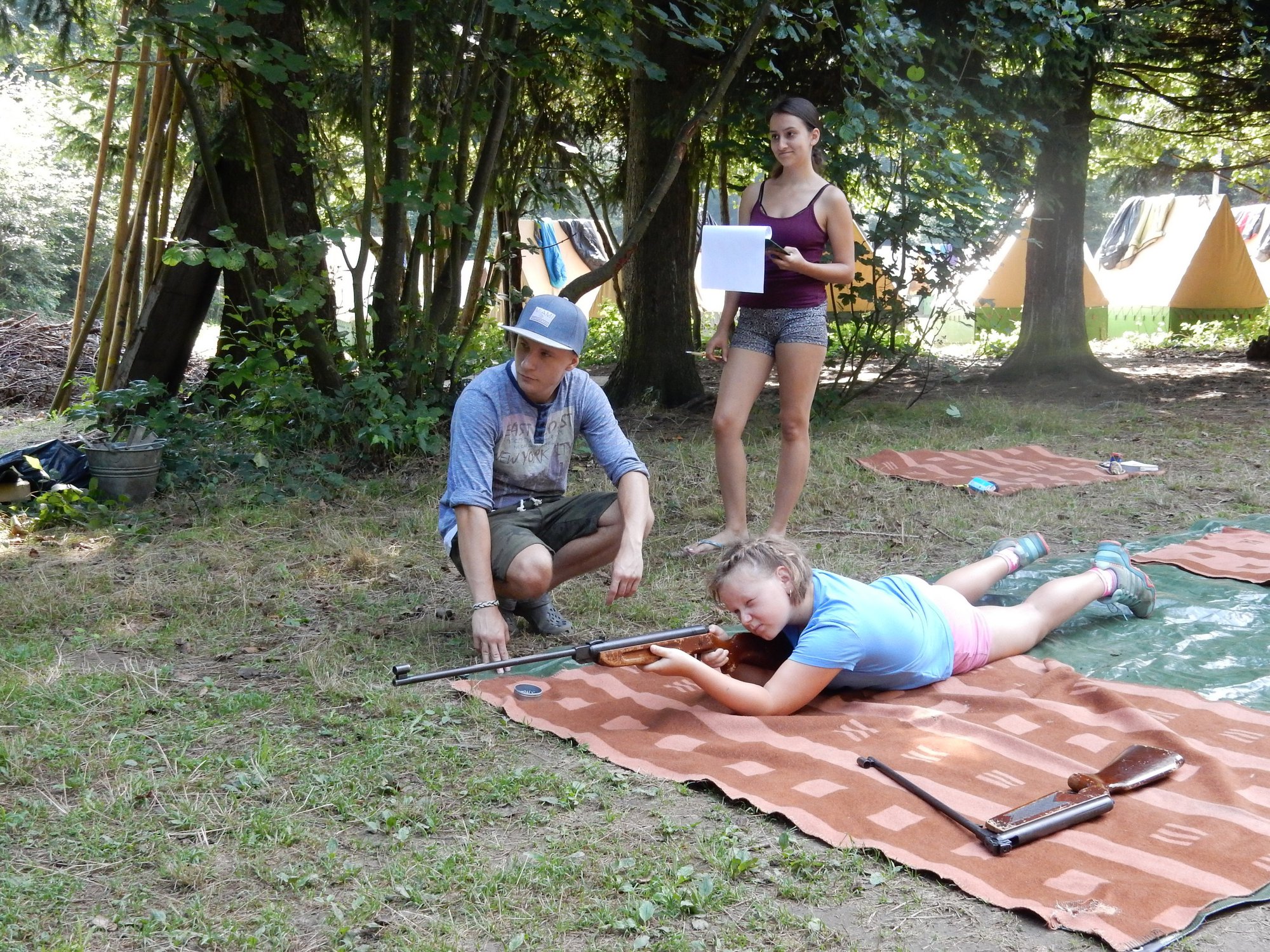 Po včerejší noční hře jsme měli budíček až v 8 a probudili jsme se do dalšího slunečného dne. Po včerejší bitvě jsme dnes pro změnu tužili přátelství a uspořádali jsme tábornické olympijské hry. Zahájení obstaral atlet s pochodní a po něm jsme se rozprchli po disciplínách. Kromě člunkového běhu, podhmatu a skoku dalekého jsme měli možnost si zastřílet z luku, ze vzduchovky a zaházet šipkami. To všechno se nám na divokém západě bude hodit každý den. Na každou disciplínu můžeme jít třikrát, takže až do oběda budeme zlepšovat své výkony, abychom se vám mohli pochlubit prvními diplomy.