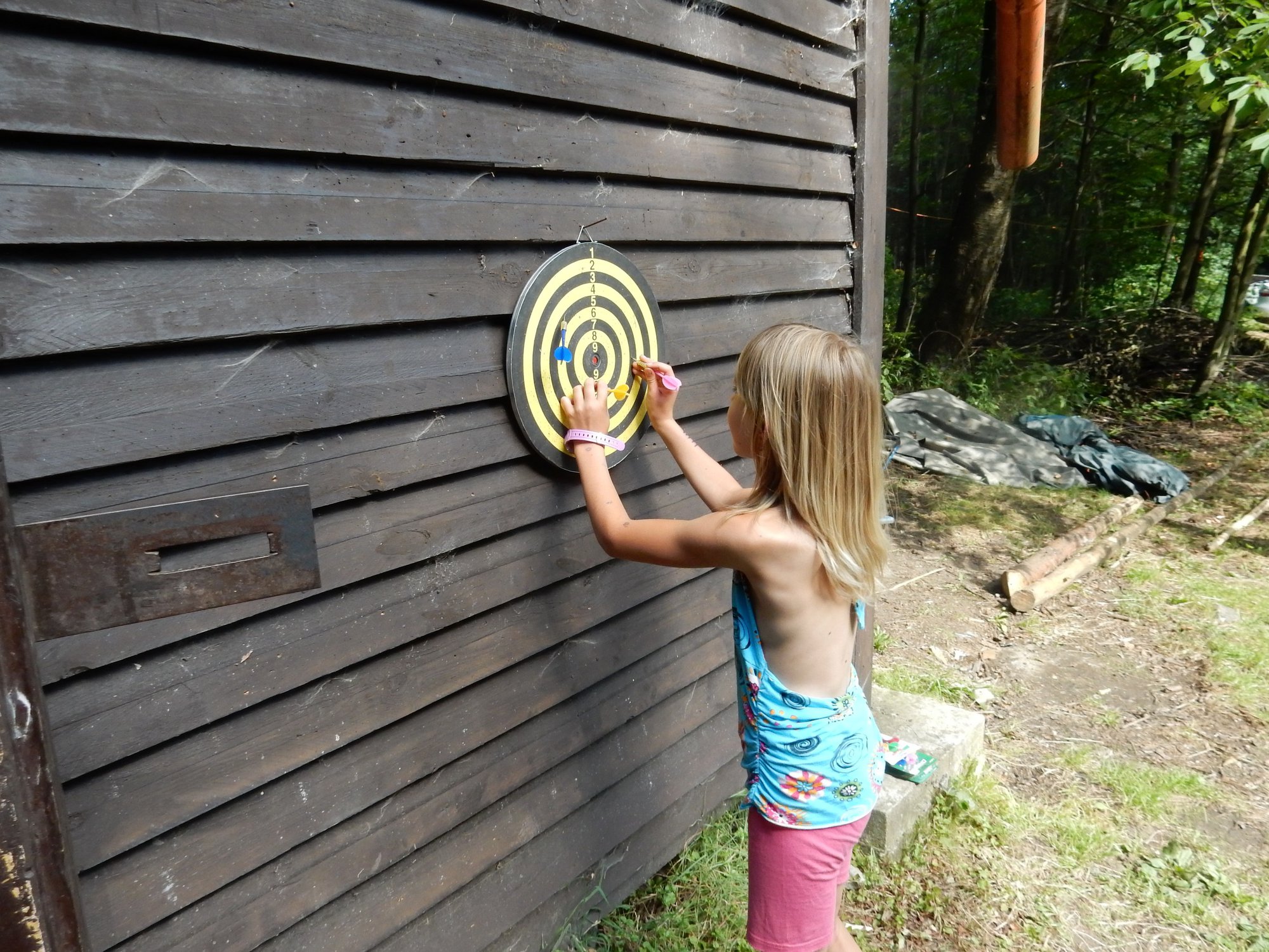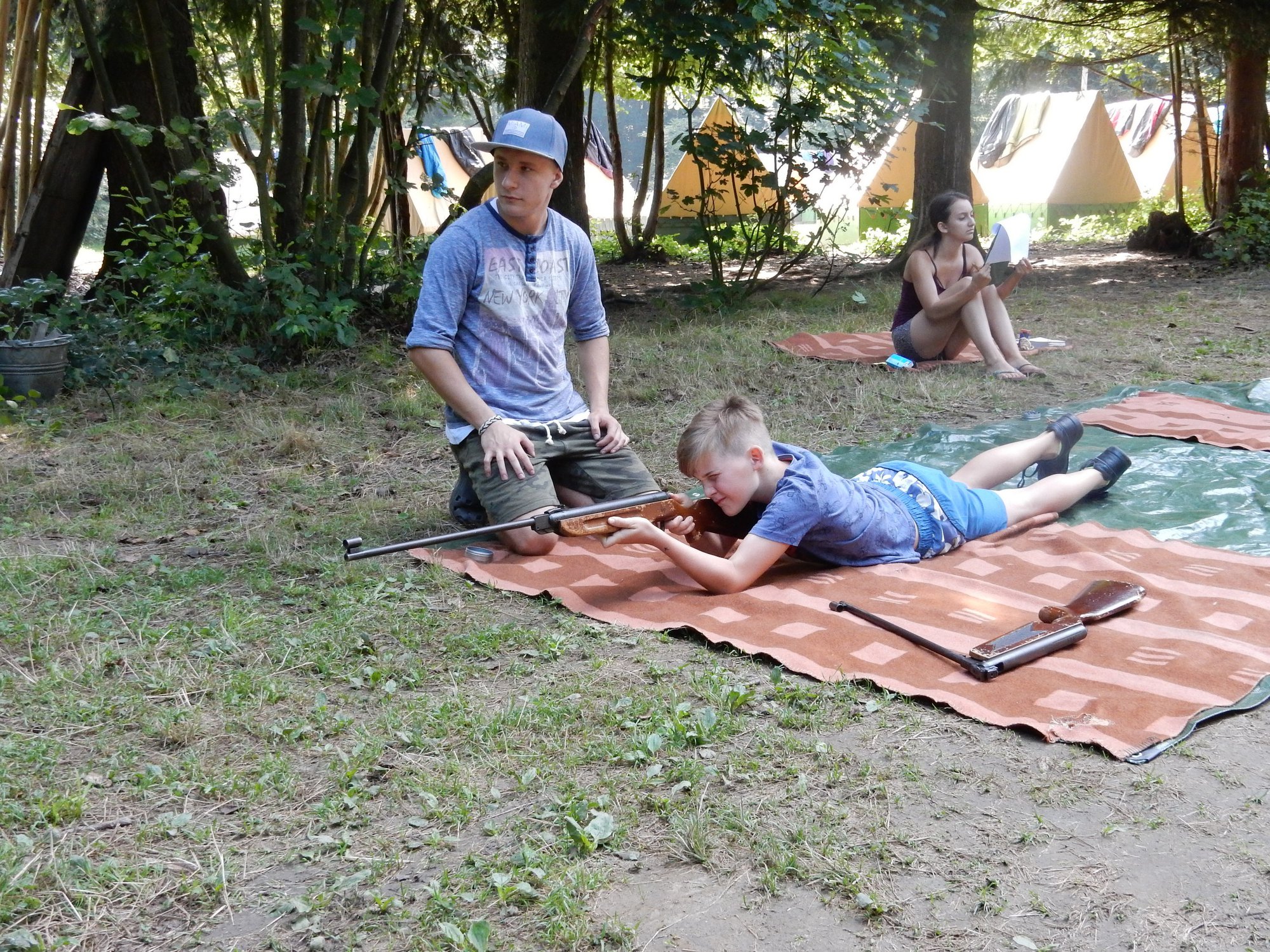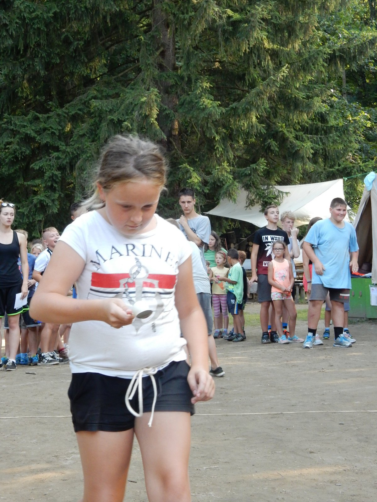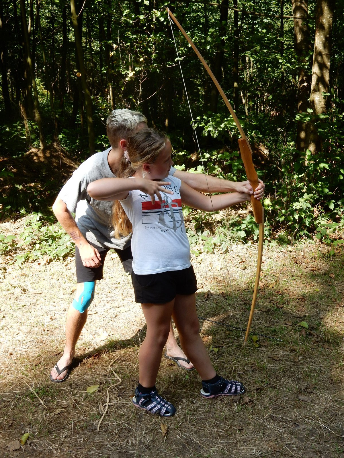 Po včerejší noční hře jsme měli budíček až v 8 a probudili jsme se do dalšího slunečného dne. Po včerejší bitvě jsme dnes pro změnu tužili přátelství a uspořádali jsme tábornické olympijské hry. Zahájení obstaral atlet s pochodní a po něm jsme se rozprchli po disciplínách. Kromě člunkového běhu, podhmatu a skoku dalekého jsme měli možnost si zastřílet z luku, ze vzduchovky a zaházet šipkami. To všechno se nám na divokém západě bude hodit každý den. Na každou disciplínu můžeme jít třikrát, takže až do oběda budeme zlepšovat své výkony, abychom se vám mohli pochlubit prvními diplomy.