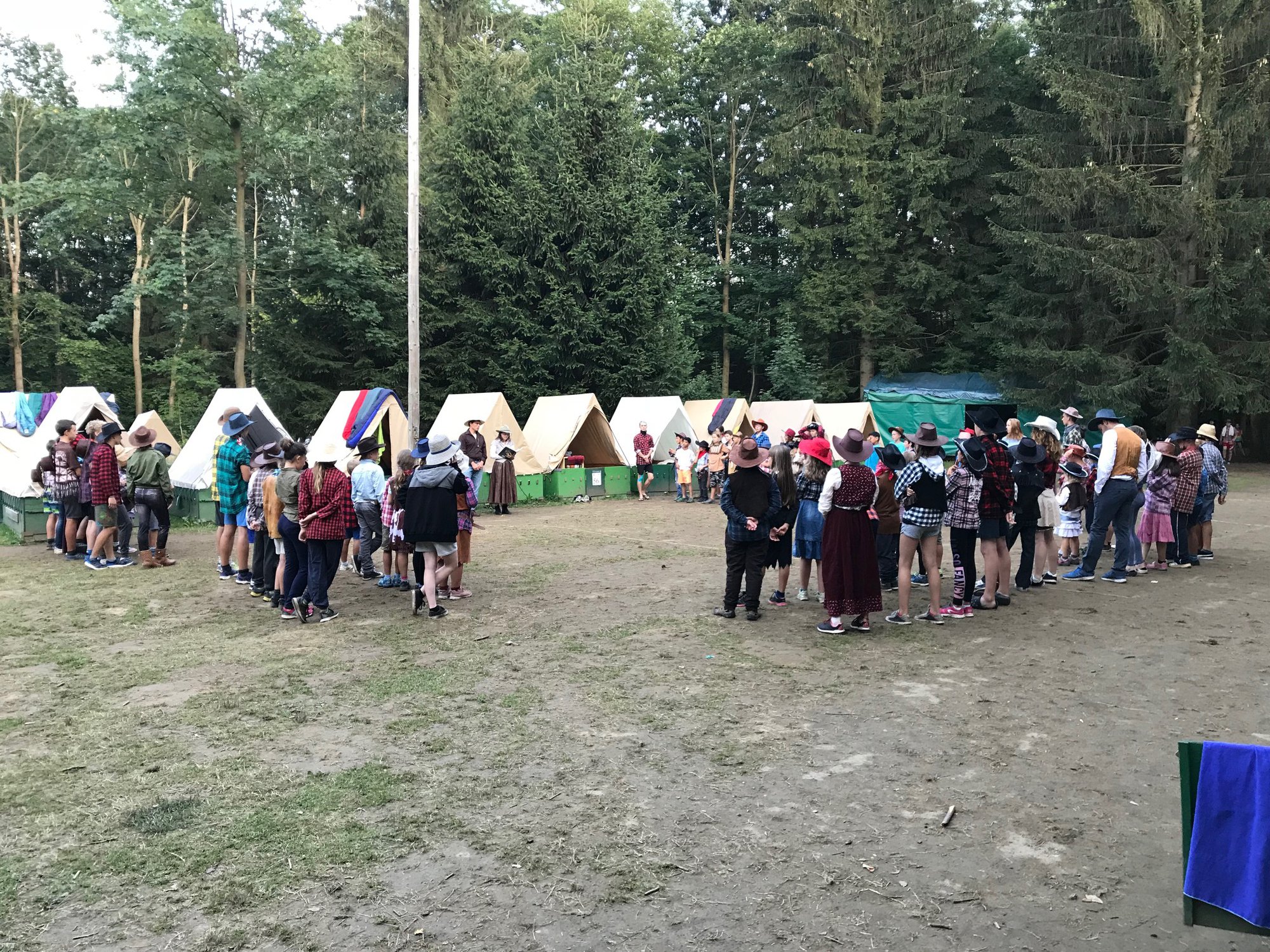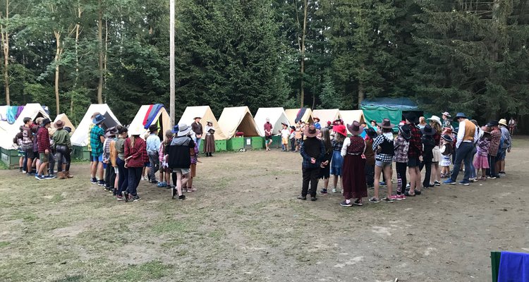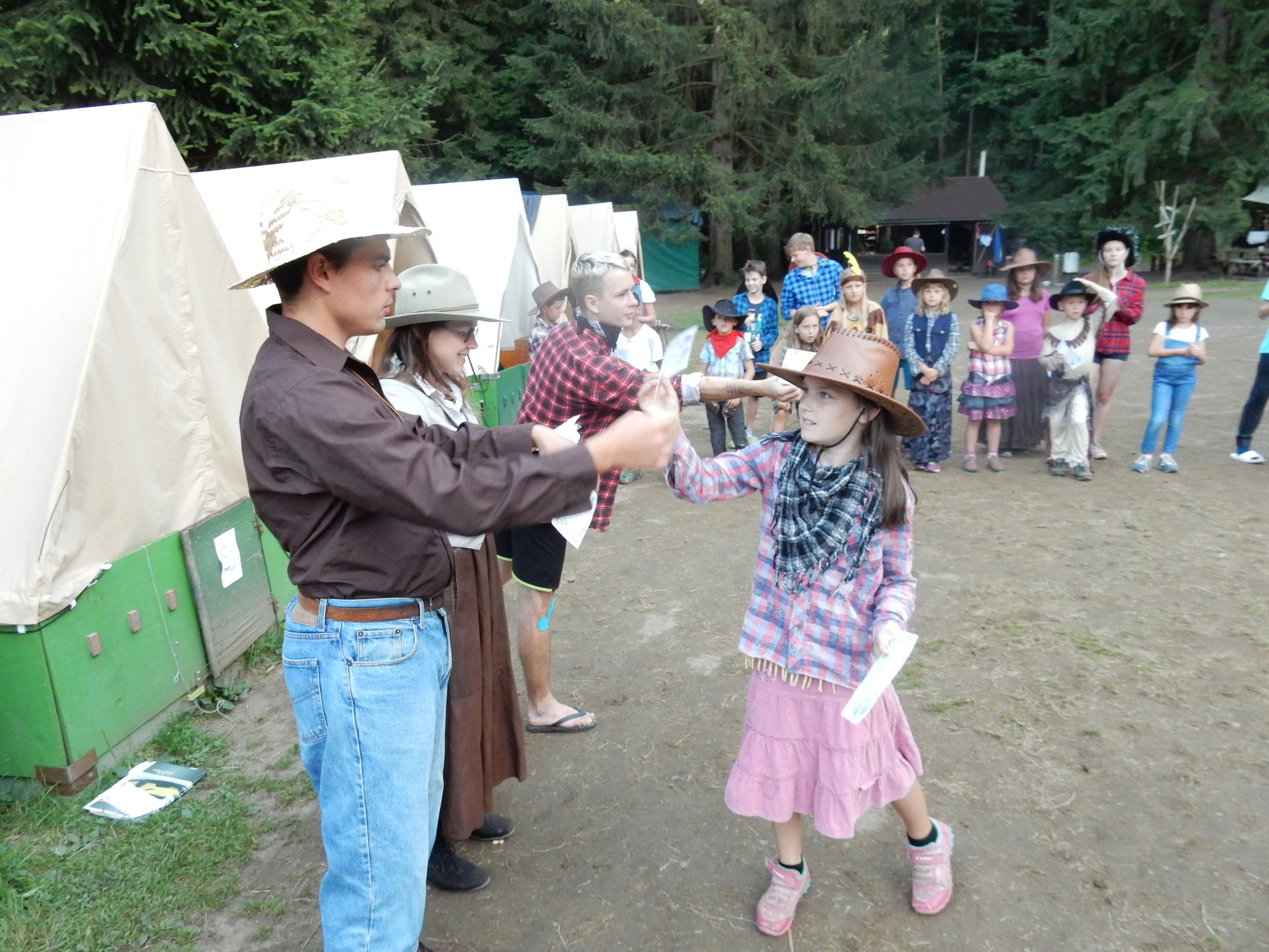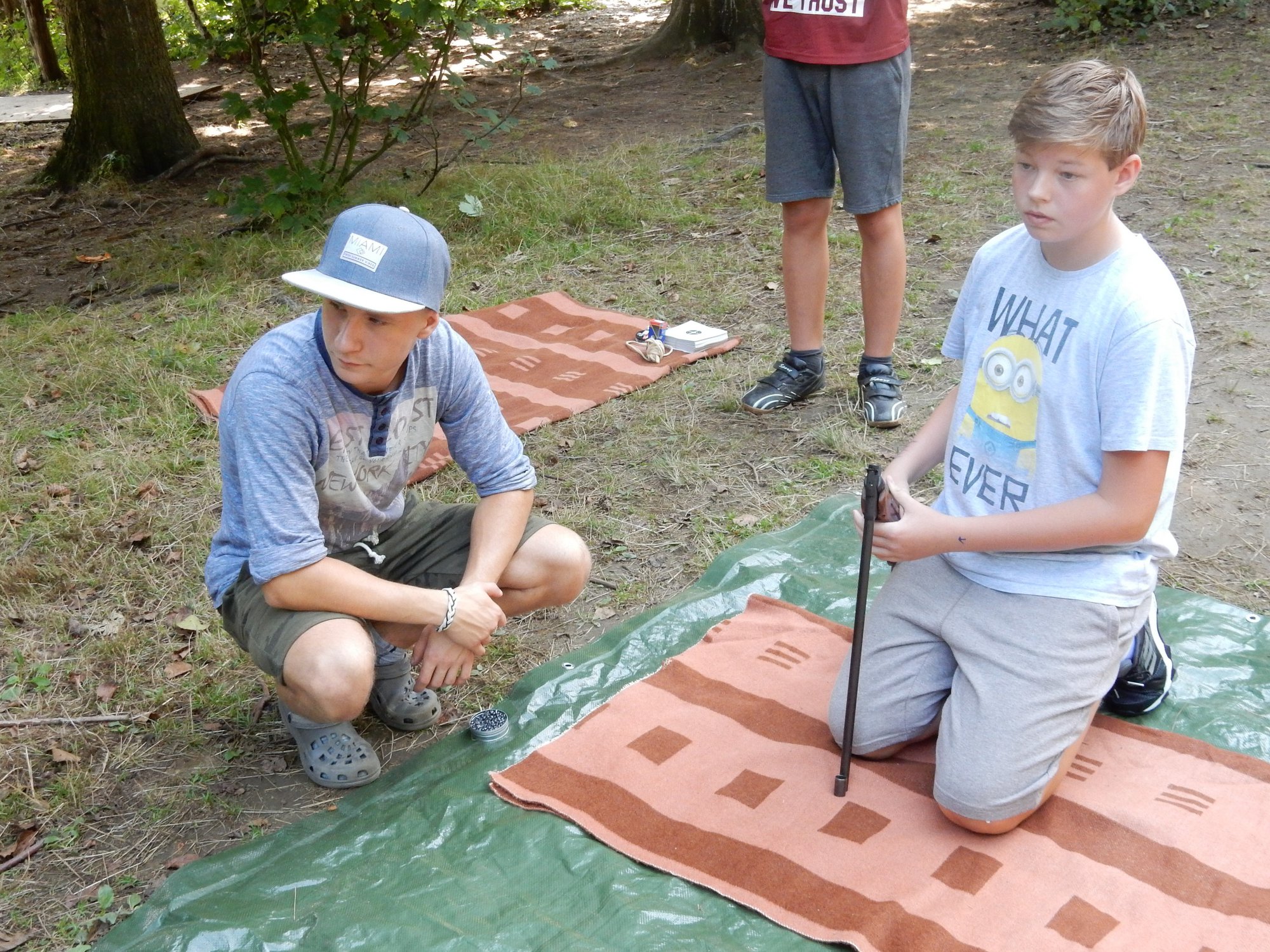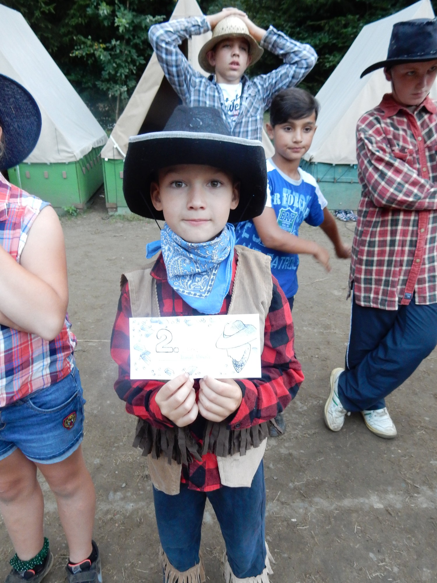 Po včerejší noční hře jsme měli budíček až v 8 a probudili jsme se do dalšího slunečného dne. Po včerejší bitvě jsme dnes pro změnu tužili přátelství a uspořádali jsme tábornické olympijské hry. Zahájení obstaral atlet s pochodní a po něm jsme se rozprchli po disciplínách. Kromě člunkového běhu, podhmatu a skoku dalekého jsme měli možnost si zastřílet z luku, ze vzduchovky a zaházet šipkami. To všechno se nám na divokém západě bude hodit každý den. Na každou disciplínu můžeme jít třikrát, takže až do oběda budeme zlepšovat své výkony, abychom se vám mohli pochlubit prvními diplomy.