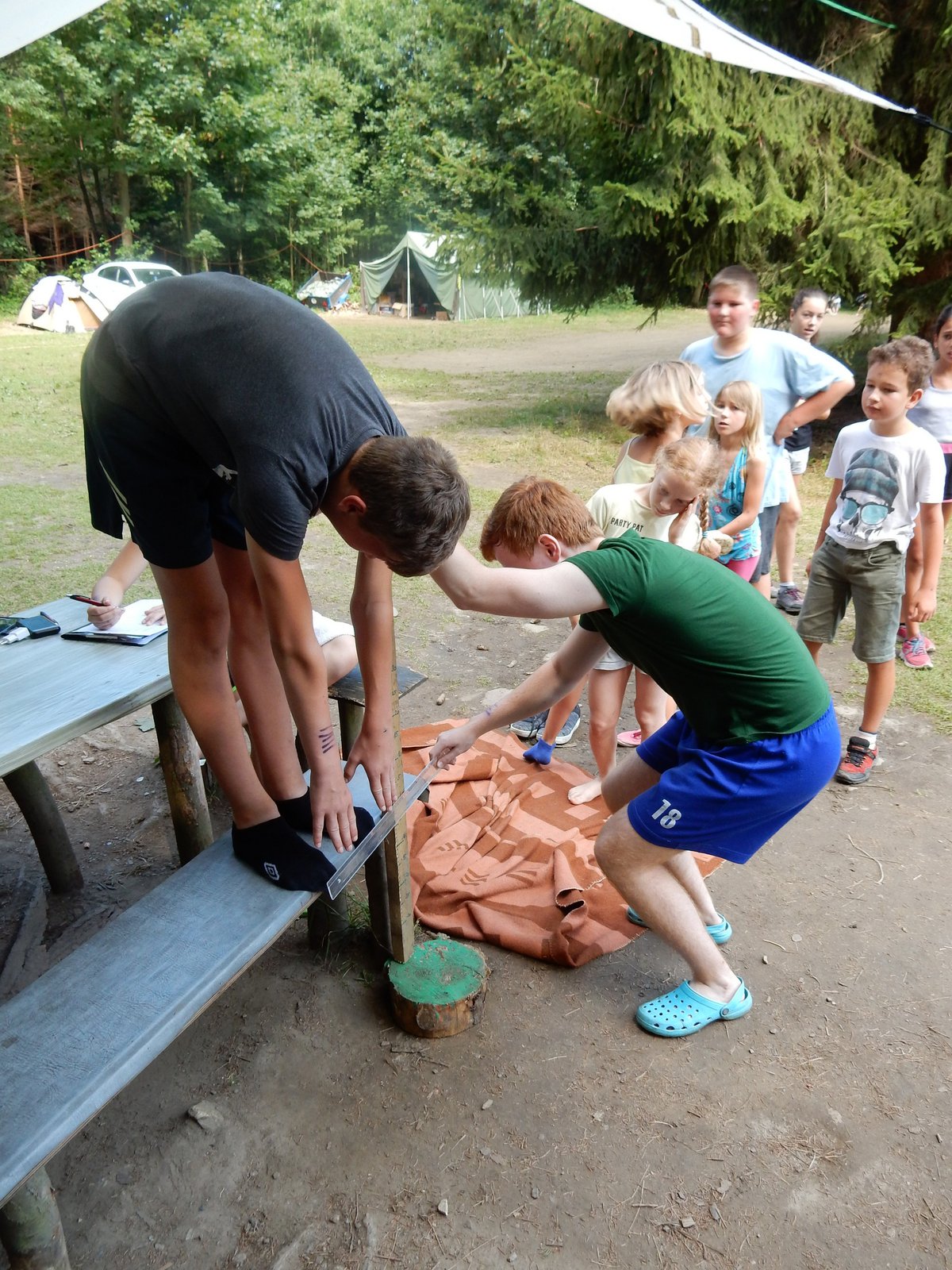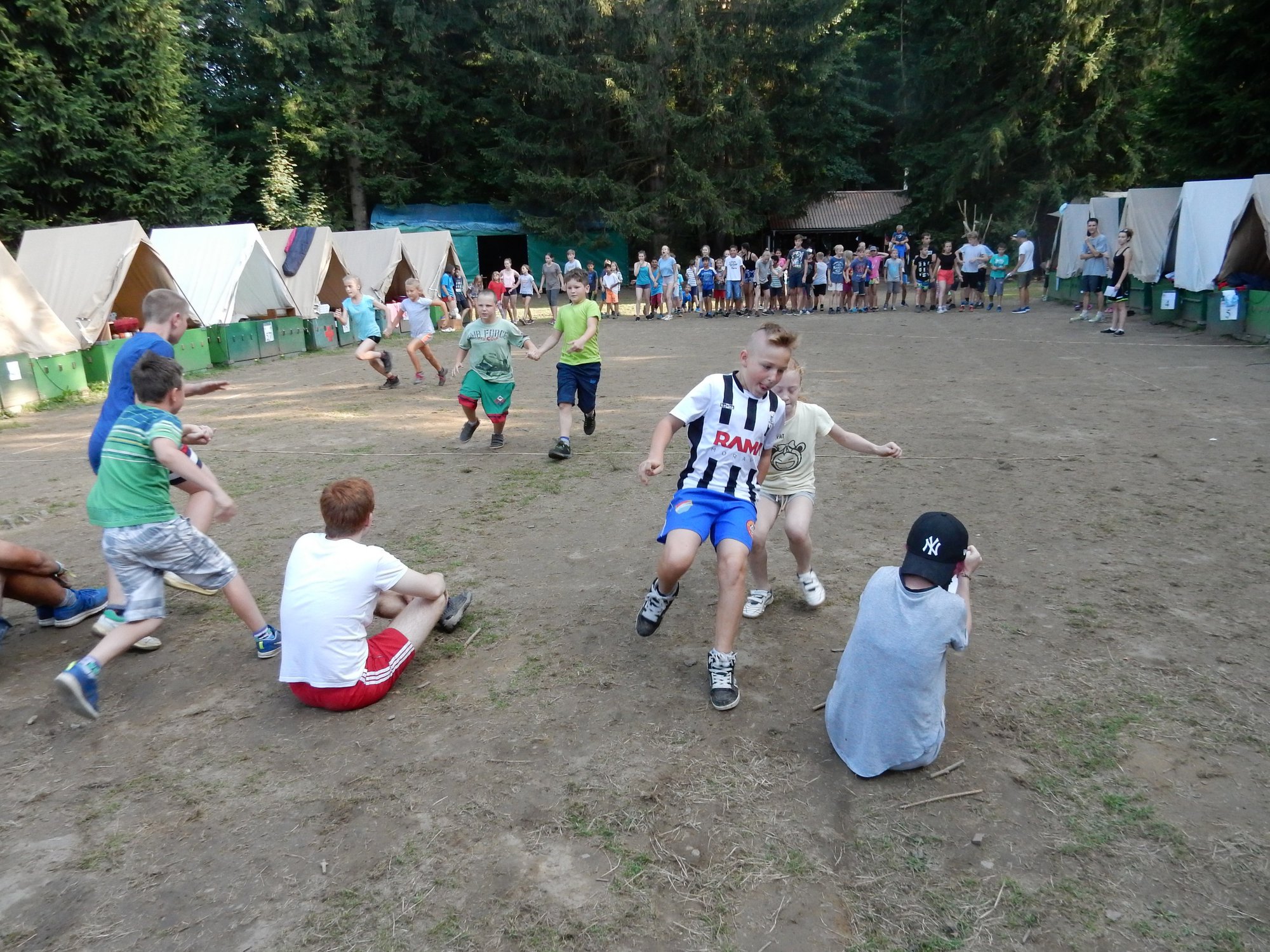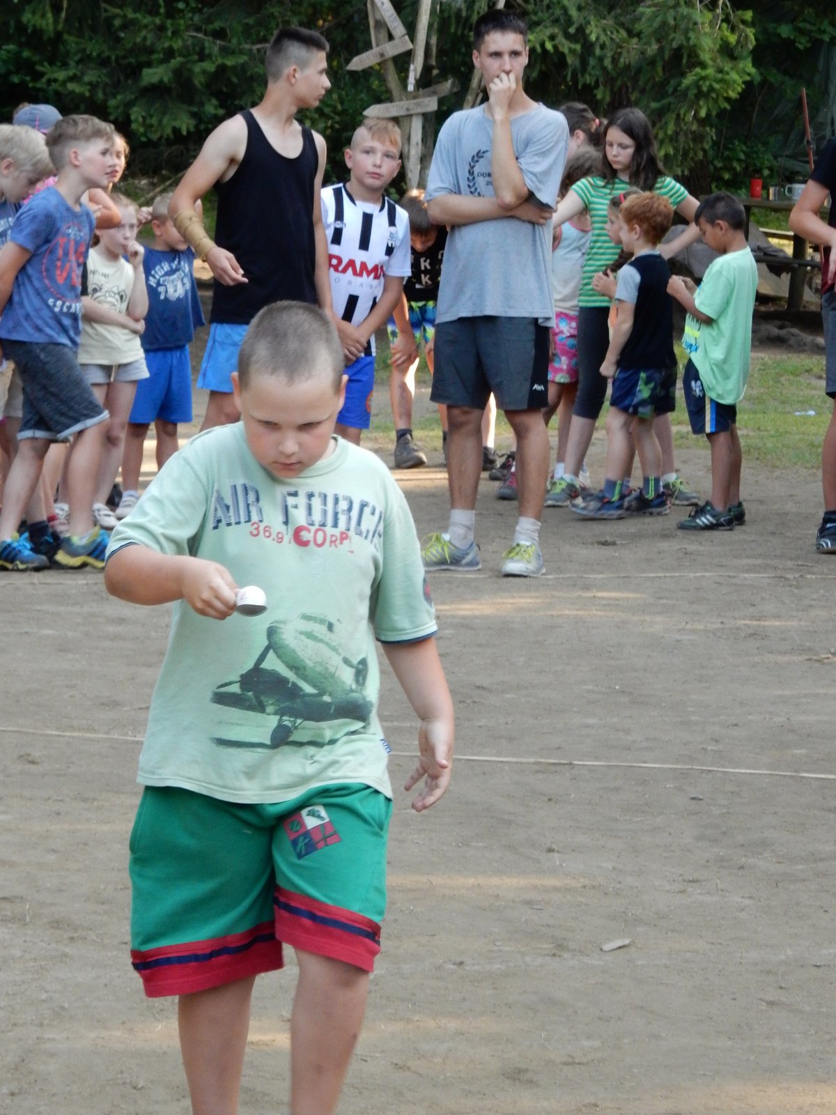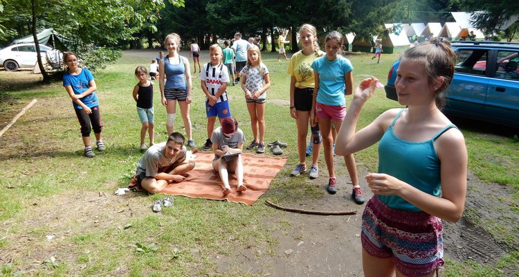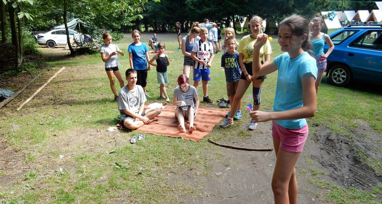 Po svačině jsme se dozvěděli, že budeme muset v nejbližší době ukázat, že dovedeme přežít i v přírodě bez kuchyně a uvařit si vlastními silami. Pustili jsme se do řady krátkých soutěží, ve kterých jsme mohli vyhrát poukázky na naše vaření. Během zápoleni nebyla nouze o fandění a o spoustu řevu. Dnes si ještě dáme večeři od naší skvělé kuchyně.