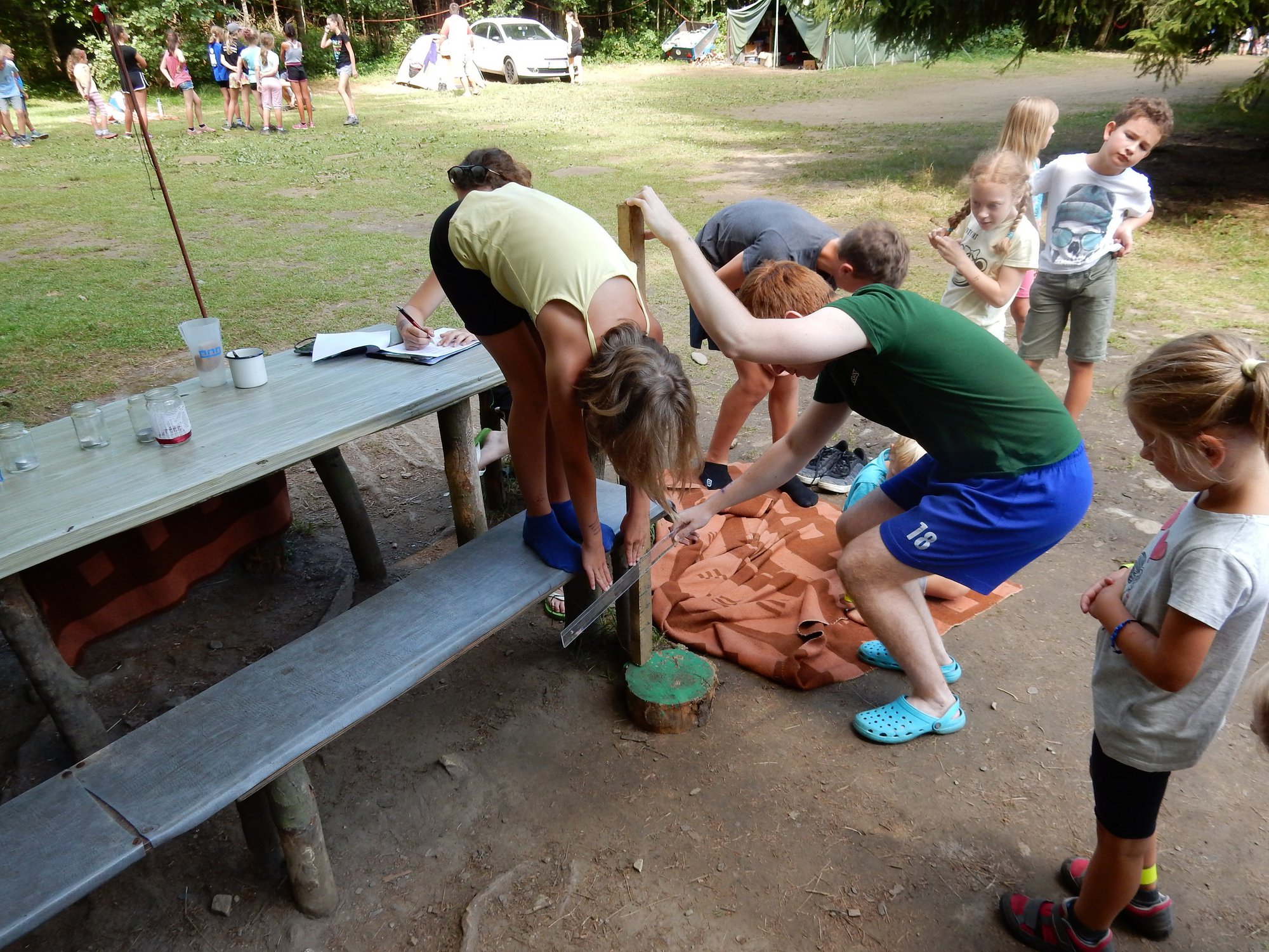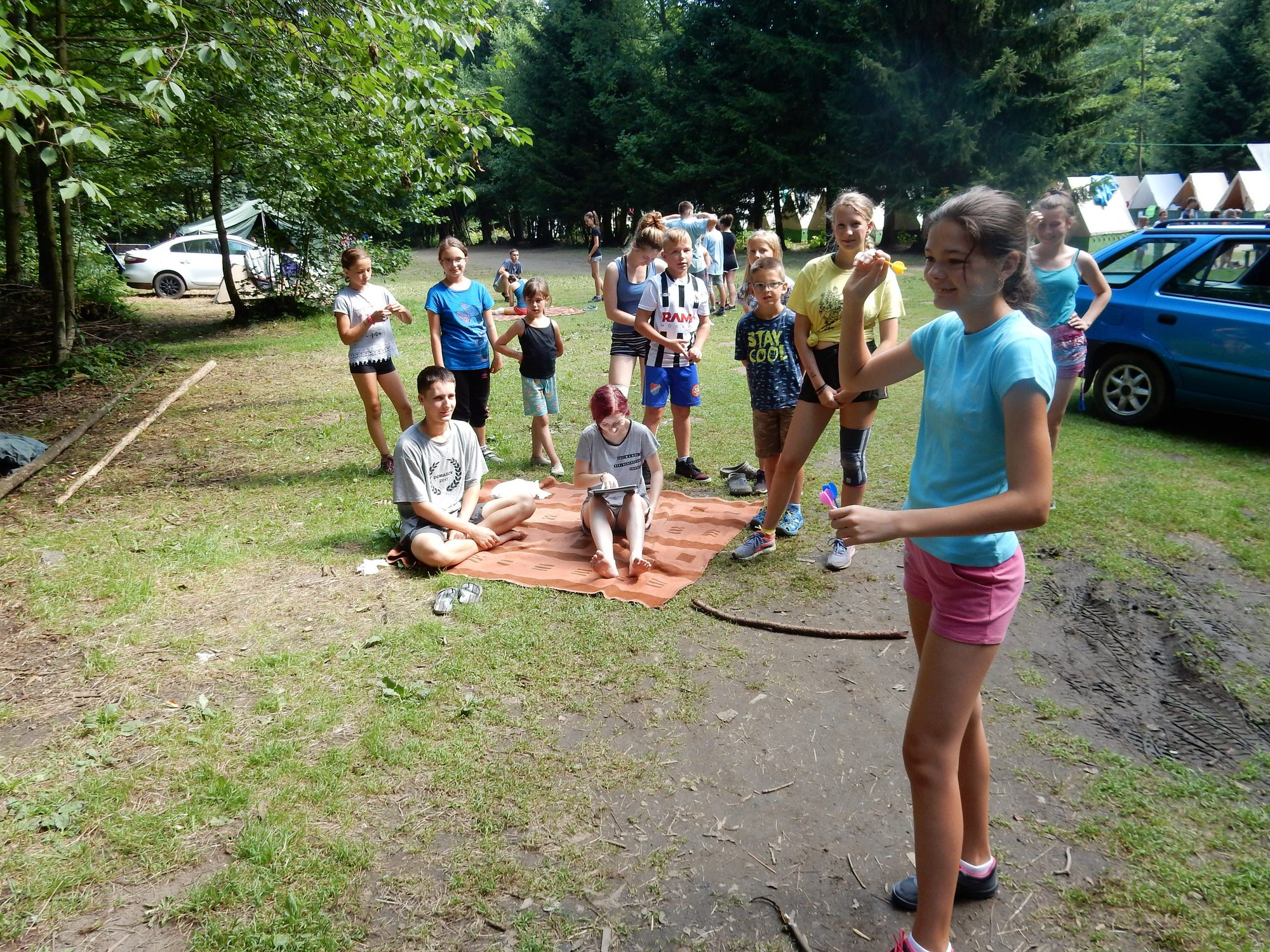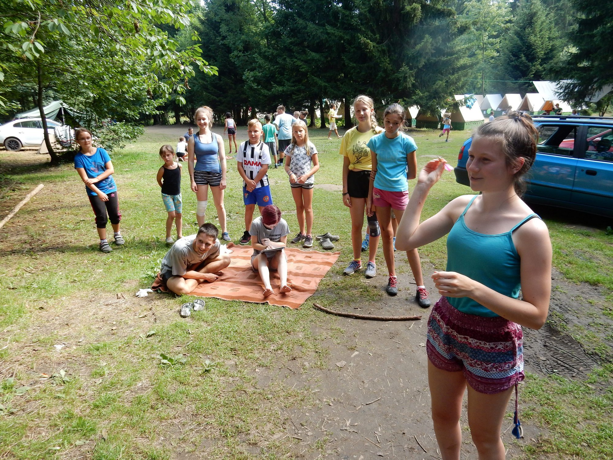 Po svačině jsme se dozvěděli, že budeme muset v nejbližší době ukázat, že dovedeme přežít i v přírodě bez kuchyně a uvařit si vlastními silami. Pustili jsme se do řady krátkých soutěží, ve kterých jsme mohli vyhrát poukázky na naše vaření. Během zápoleni nebyla nouze o fandění a o spoustu řevu. Dnes si ještě dáme večeři od naší skvělé kuchyně.