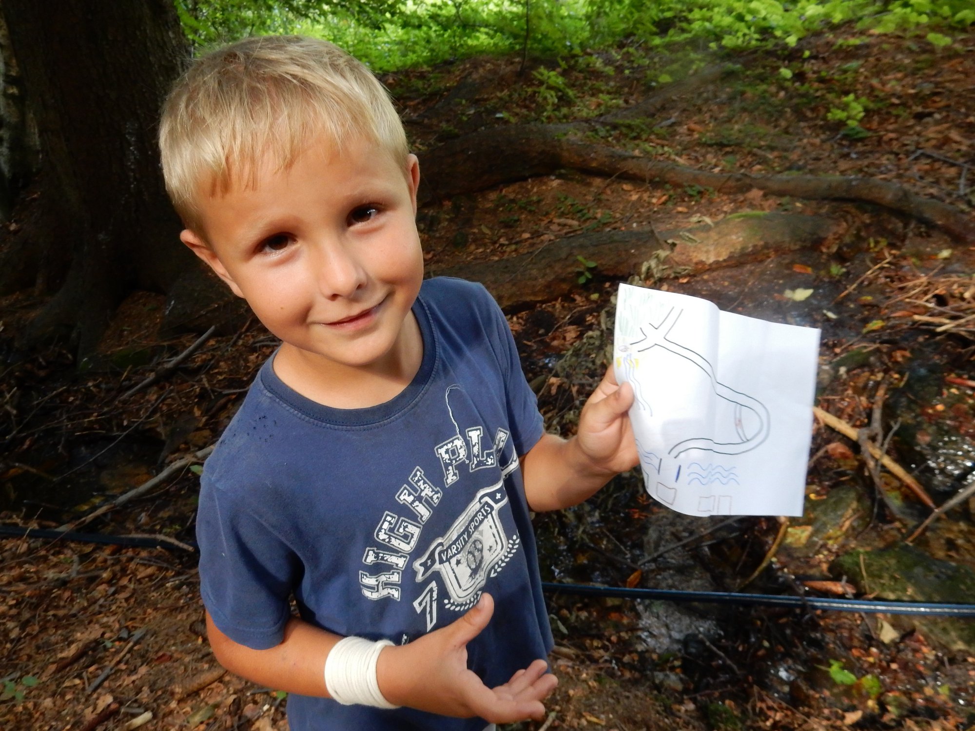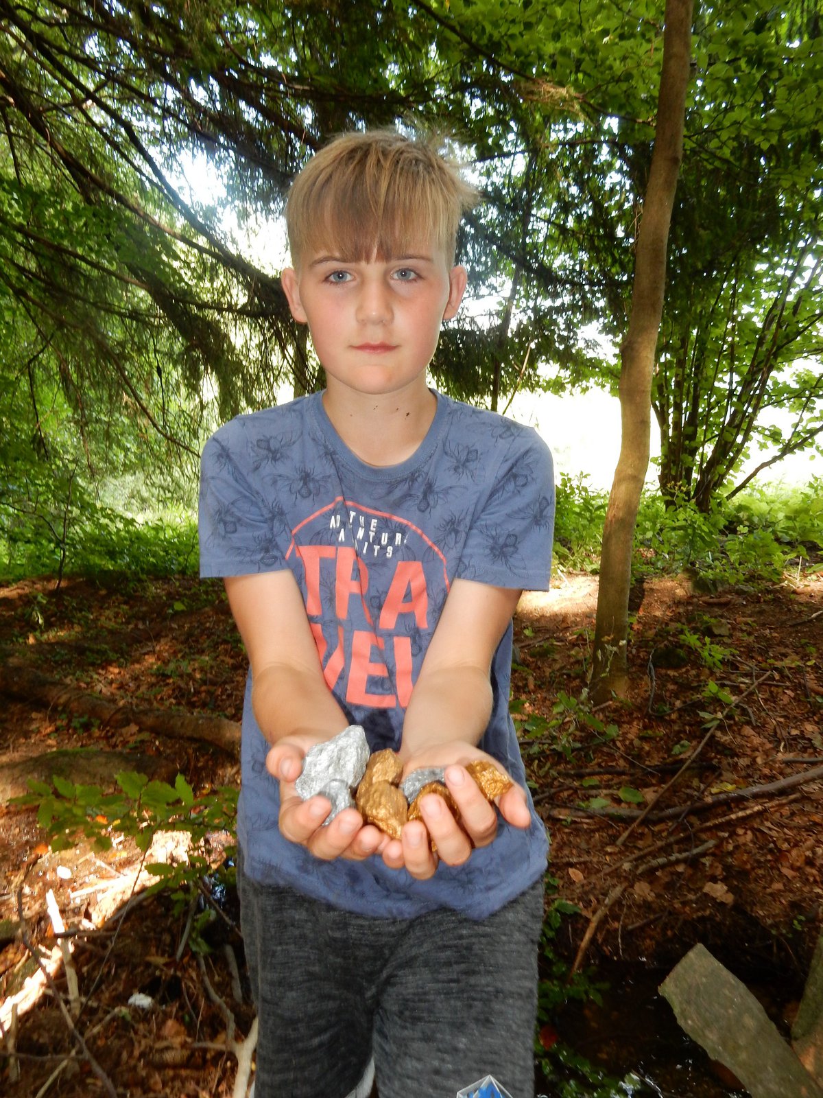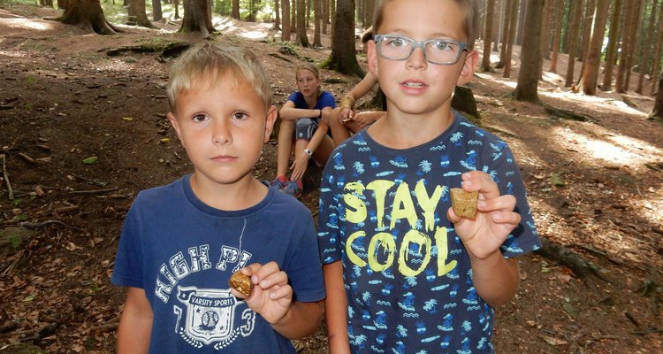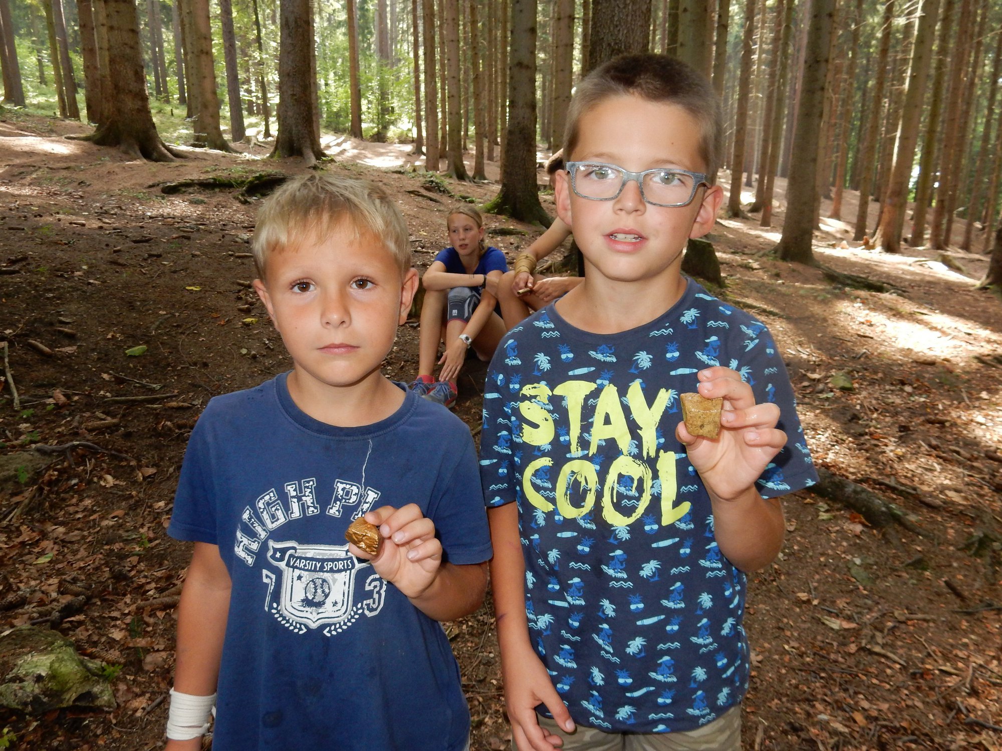 Poobědvali jsme tentokrát klasické vepřo knedlo zelo a po nezbytném poledním odpočinku jsme se opět zašli vykoupat. I dnes jsme si vysloužili mapku cesty k nalezišti jako odměnu za naše výkony. Zavedla nás na jiné místo než včera, ale opět jsme nalezli valounky zlata i stříbra. Z kuchyně voní štrůdl který bude ke svačině a po ní nás čekají další hry.