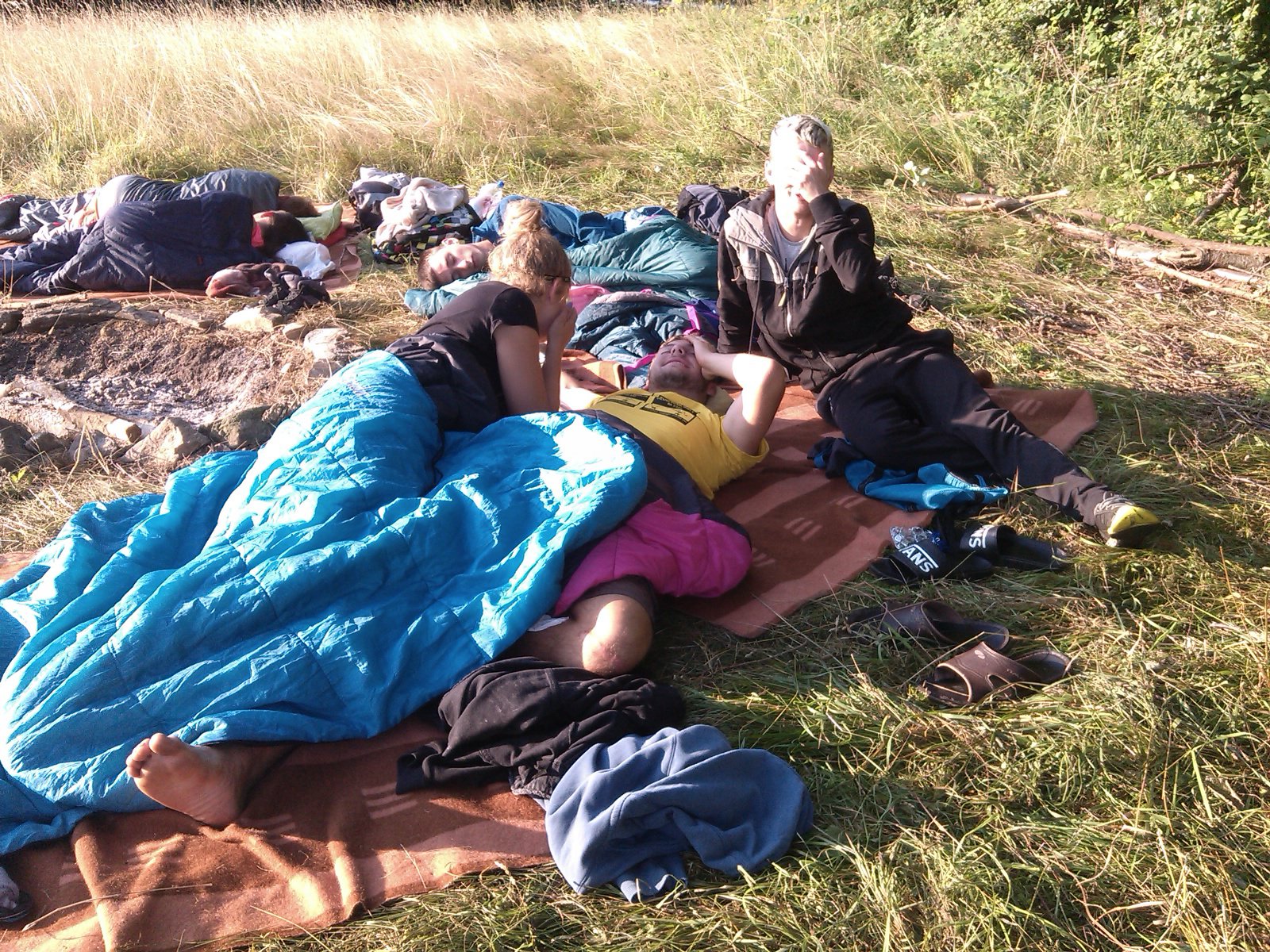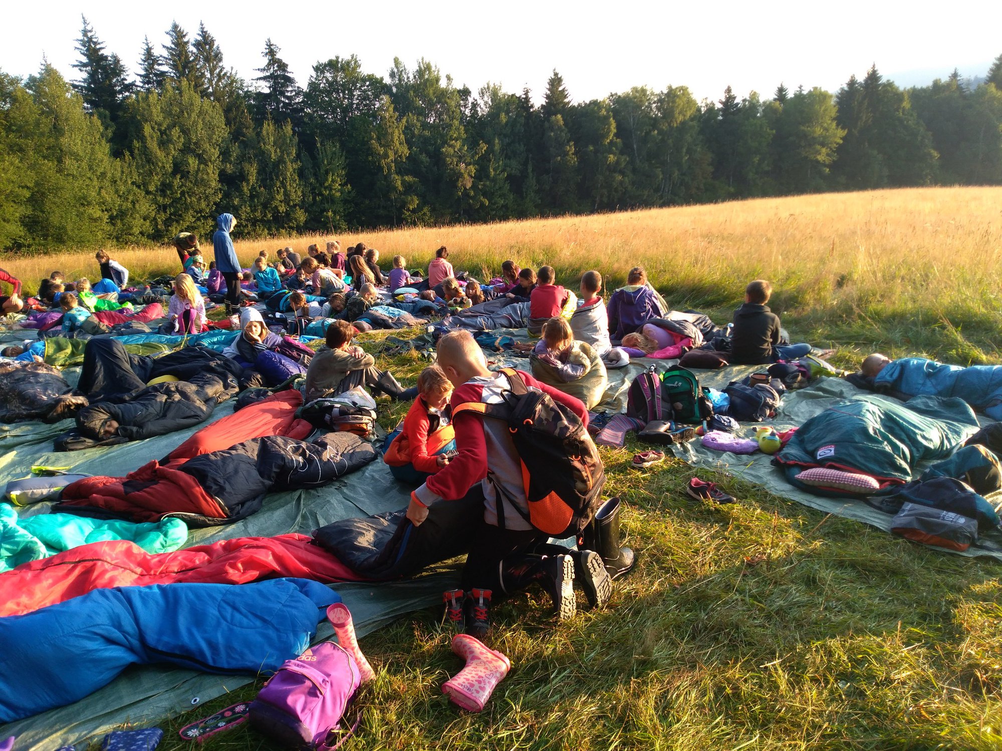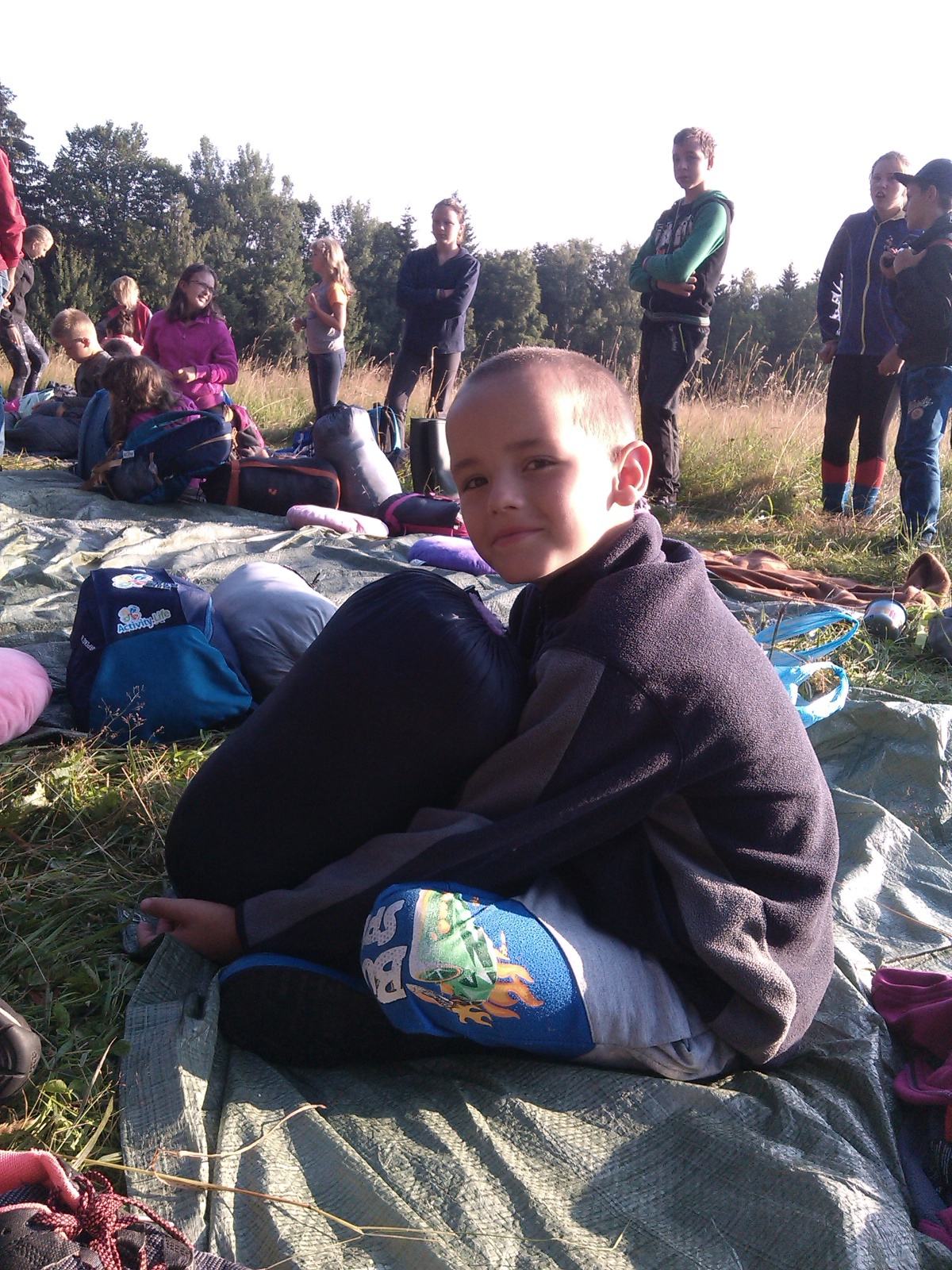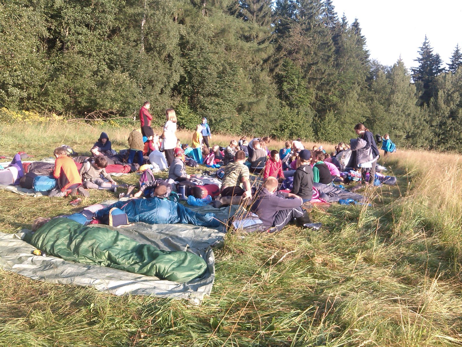 Spaní po širákem se podařilo skvěle. Ráno nás vzbudilo sluníčko ještě před budíčkem. O půl osmé už spala jen většina vedoucích :-) Sbalili jsme svoje věci, uklidili ležení a odešli do tábora na hygienu a snídani.