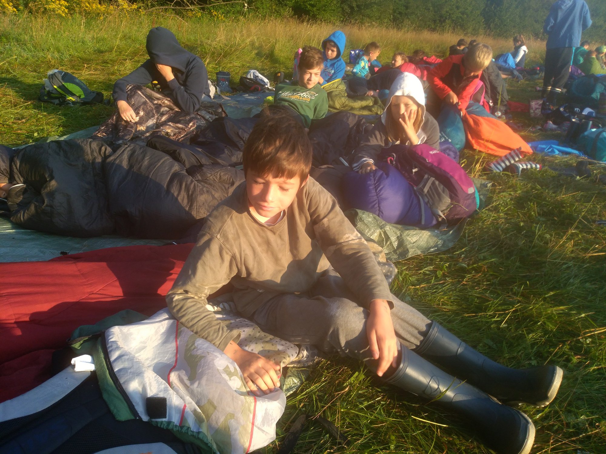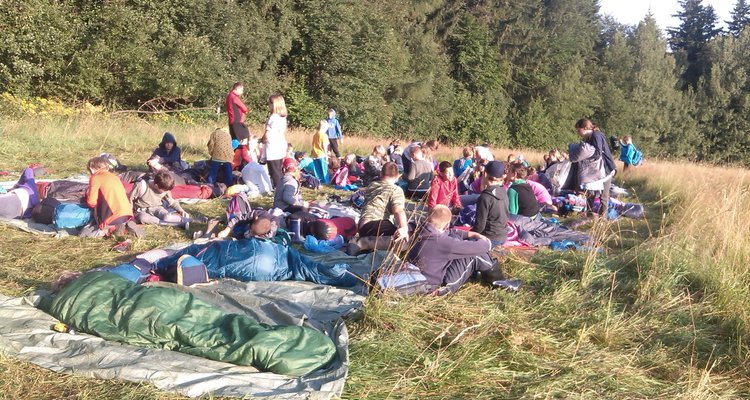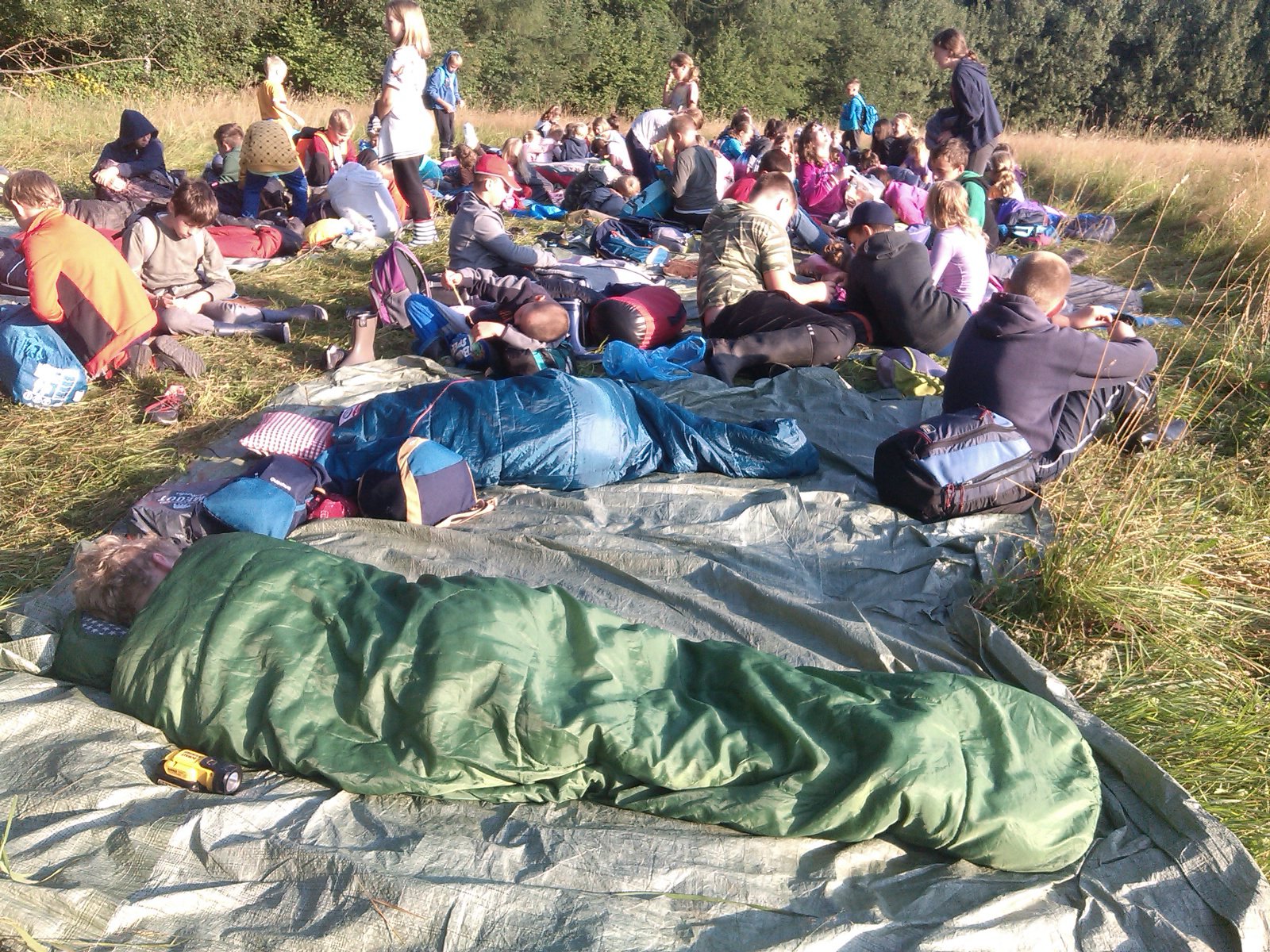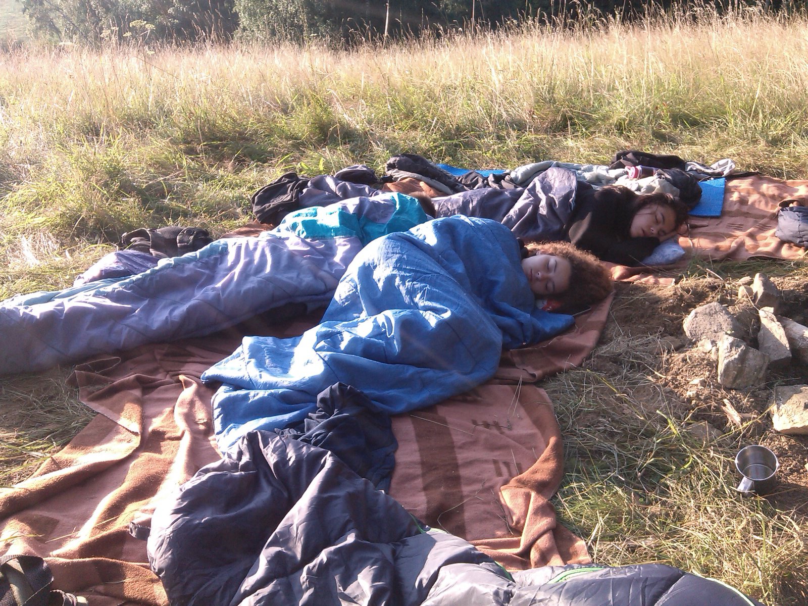Spaní po širákem se podařilo skvěle. Ráno nás vzbudilo sluníčko ještě před budíčkem. O půl osmé už spala jen většina vedoucích :-) Sbalili jsme svoje věci, uklidili ležení a odešli do tábora na hygienu a snídani.
