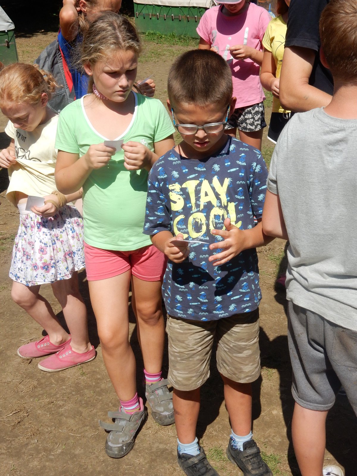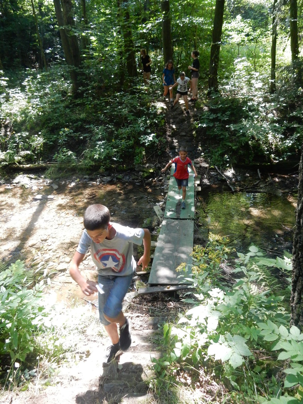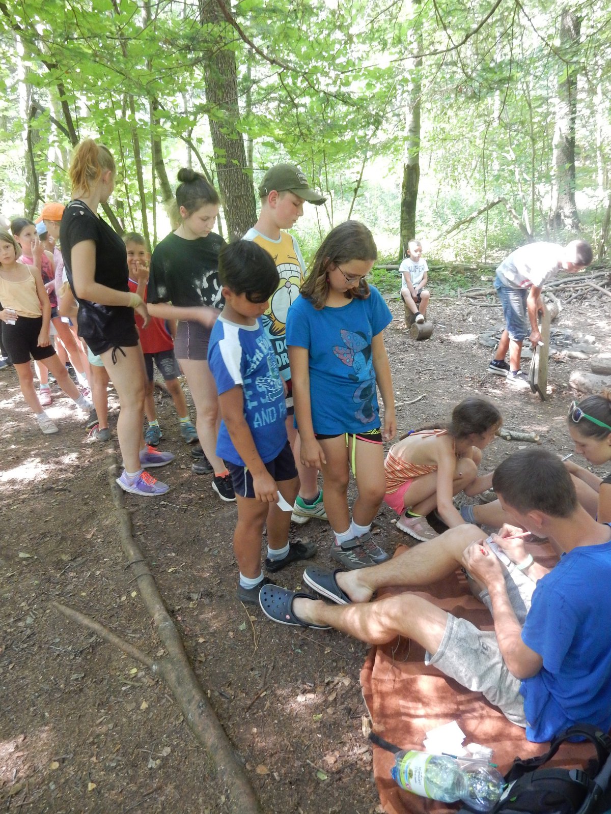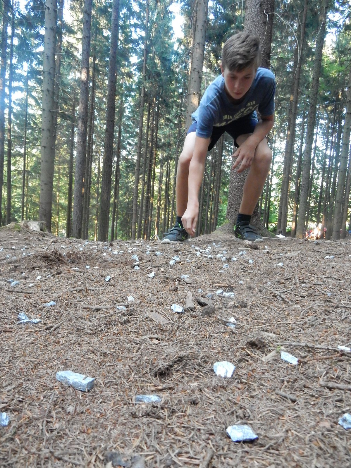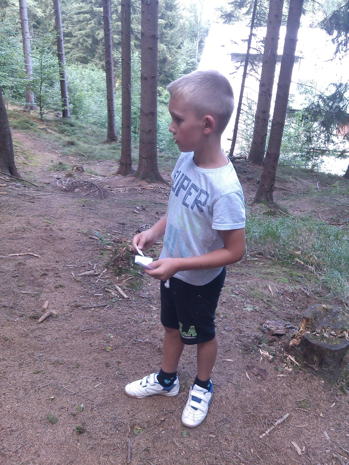 Ráno jsme poslali z každé party dvojici na pomoc kuchyni se škrábáním brambor (takže to po nás můžete chtít i doma :-)). Před svačinou jsme si zahráli po táboře rychlovku na otestování naší pozornost, jak si všímáme věcí po táboře. Na nástupu jsme se dozvěděli, že při dopravě zboží do našich osad škodí neznámě tlupy banditů. Museli jsme napnout všechny síly a pomoci dopravit zboží do určených míst. Hrálo se v celém širokém okolí tábora. Aby to nebylo tak jednoduché, cestou nás přepadávali bandité (naši vedoucí) a snažili se nás oloupit. I tak jsme přepravili úctyhodnou hromadu zboží. Z dřívějších her a výprav známe kdejakou cestičku a to nám dnes hodně pomohlo.