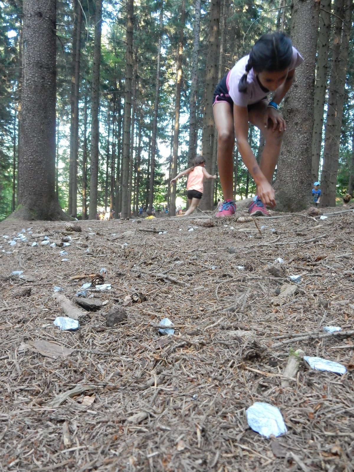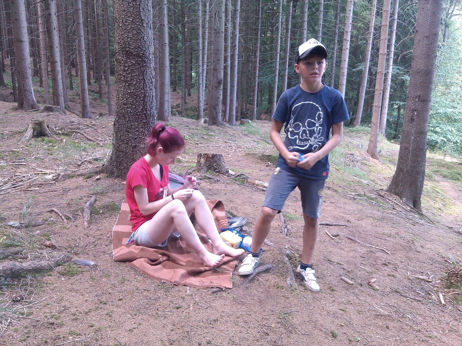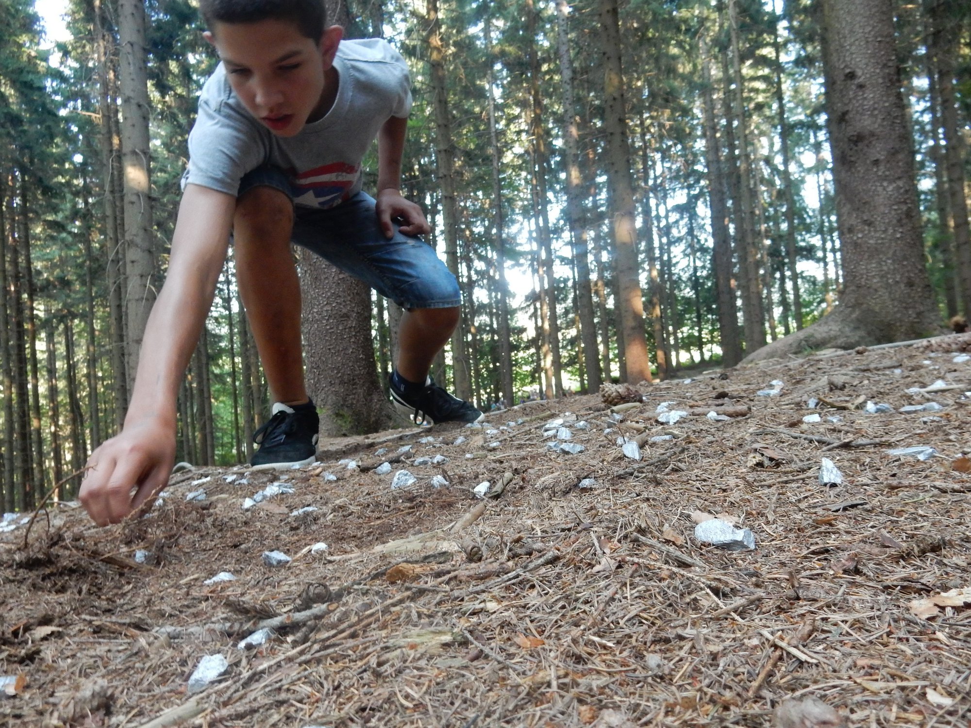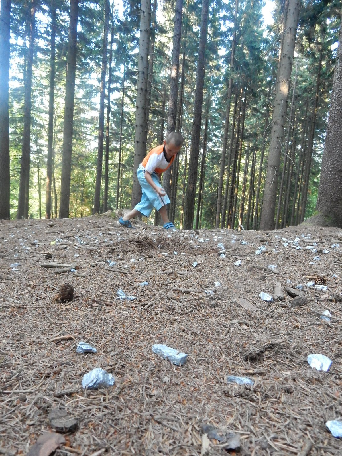 Ráno jsme poslali z každé party dvojici na pomoc kuchyni se škrábáním brambor (takže to po nás můžete chtít i doma :-)). Před svačinou jsme si zahráli po táboře rychlovku na otestování naší pozornost, jak si všímáme věcí po táboře. Na nástupu jsme se dozvěděli, že při dopravě zboží do našich osad škodí neznámě tlupy banditů. Museli jsme napnout všechny síly a pomoci dopravit zboží do určených míst. Hrálo se v celém širokém okolí tábora. Aby to nebylo tak jednoduché, cestou nás přepadávali bandité (naši vedoucí) a snažili se nás oloupit. I tak jsme přepravili úctyhodnou hromadu zboží. Z dřívějších her a výprav známe kdejakou cestičku a to nám dnes hodně pomohlo.