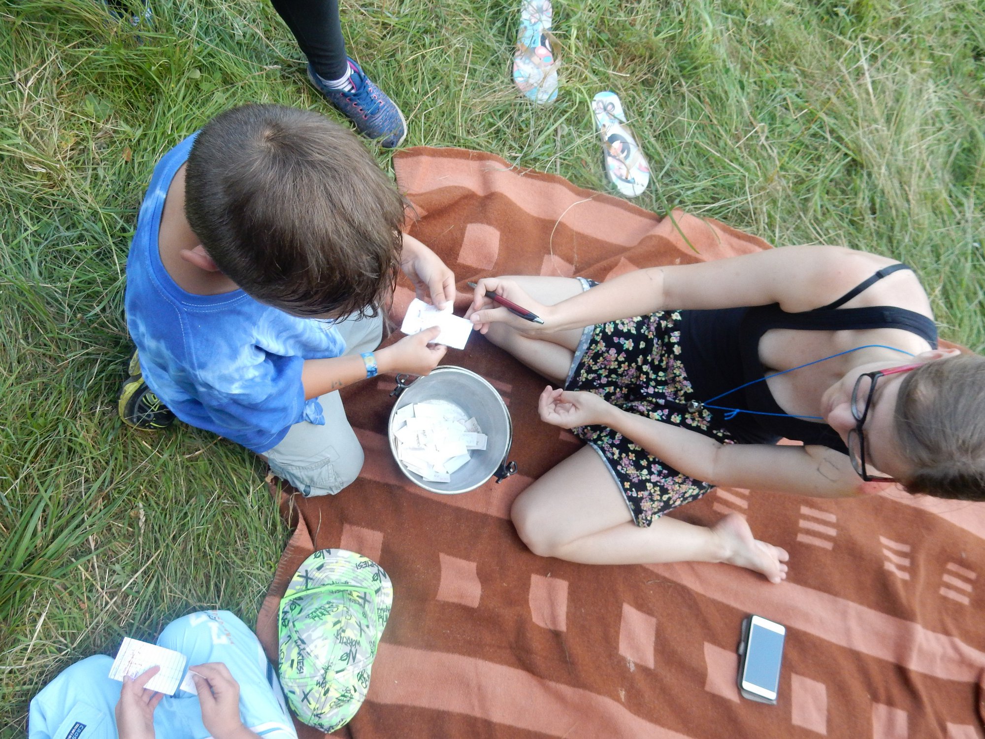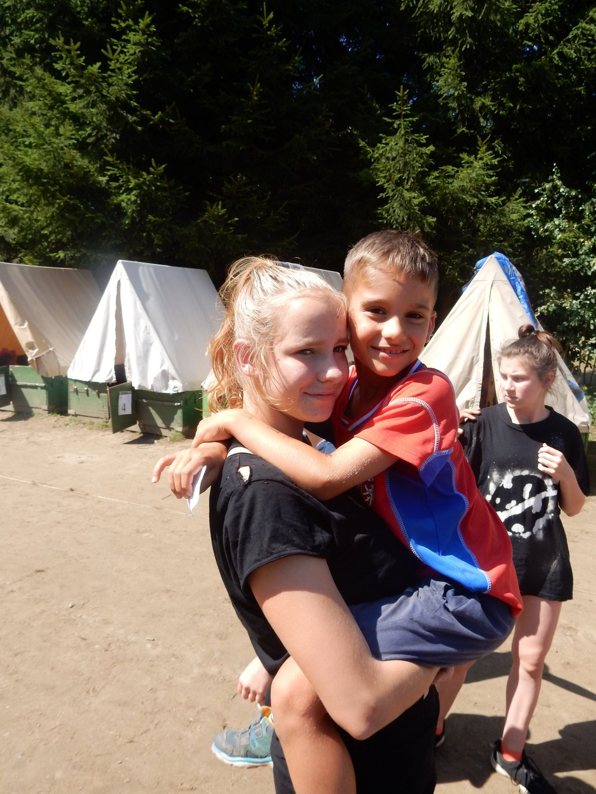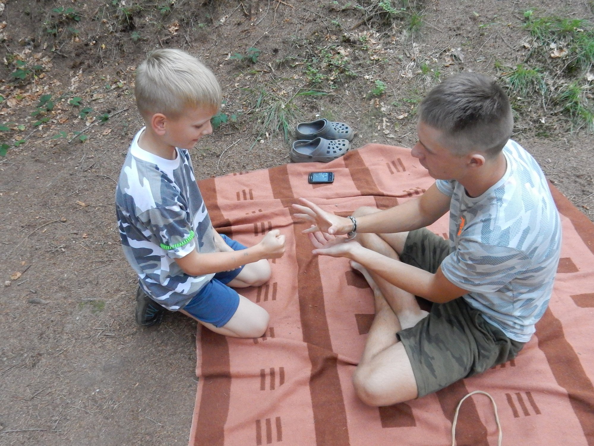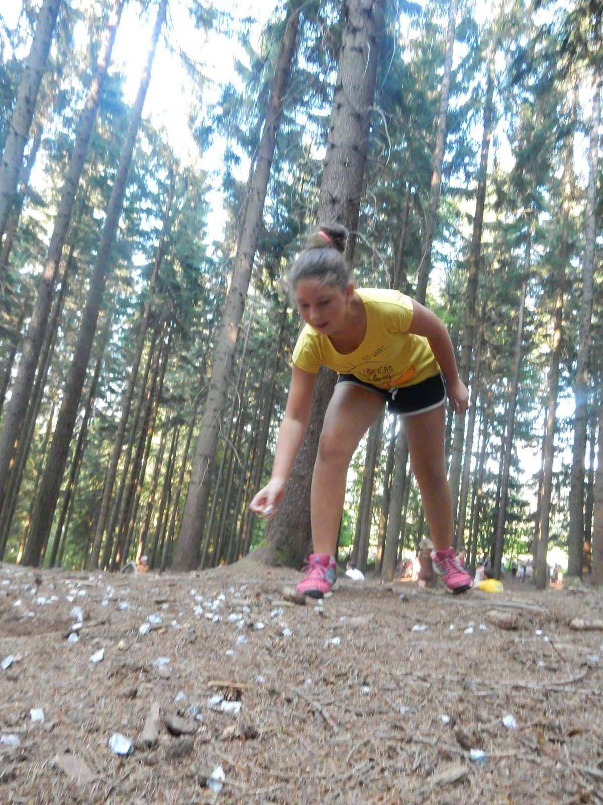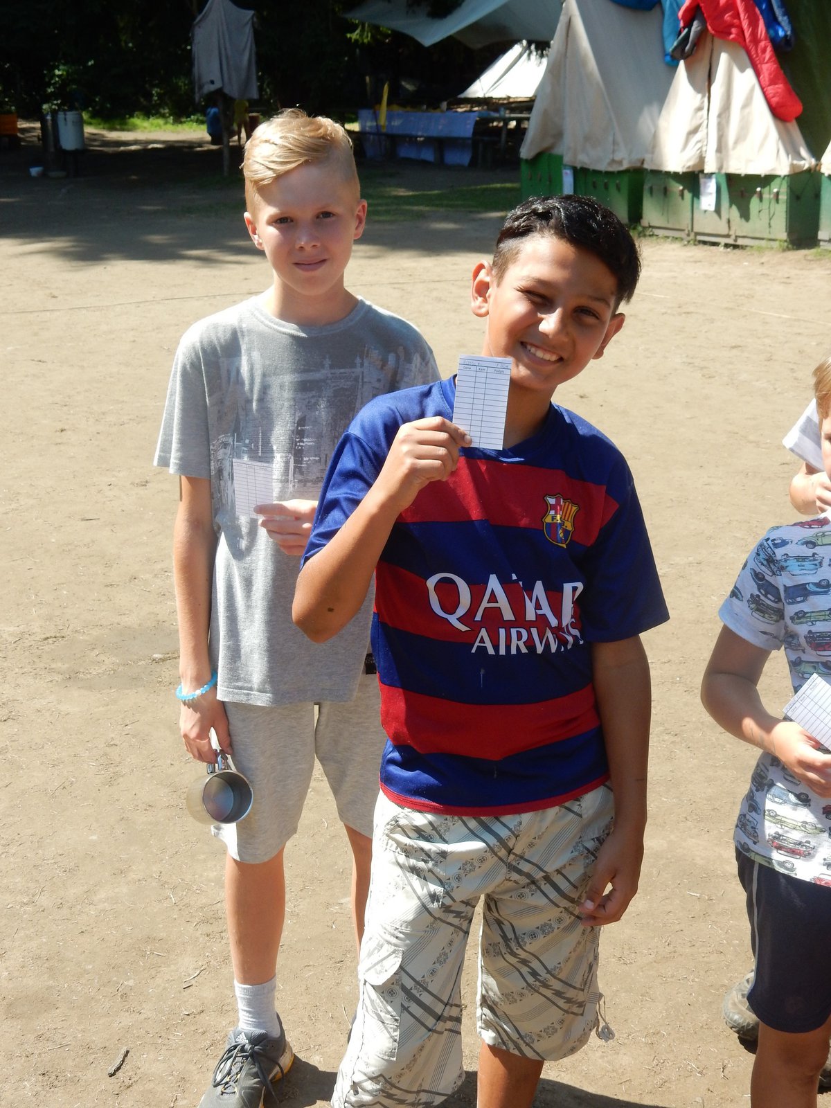 Ráno jsme poslali z každé party dvojici na pomoc kuchyni se škrábáním brambor (takže to po nás můžete chtít i doma :-)). Před svačinou jsme si zahráli po táboře rychlovku na otestování naší pozornost, jak si všímáme věcí po táboře. Na nástupu jsme se dozvěděli, že při dopravě zboží do našich osad škodí neznámě tlupy banditů. Museli jsme napnout všechny síly a pomoci dopravit zboží do určených míst. Hrálo se v celém širokém okolí tábora. Aby to nebylo tak jednoduché, cestou nás přepadávali bandité (naši vedoucí) a snažili se nás oloupit. I tak jsme přepravili úctyhodnou hromadu zboží. Z dřívějších her a výprav známe kdejakou cestičku a to nám dnes hodně pomohlo.