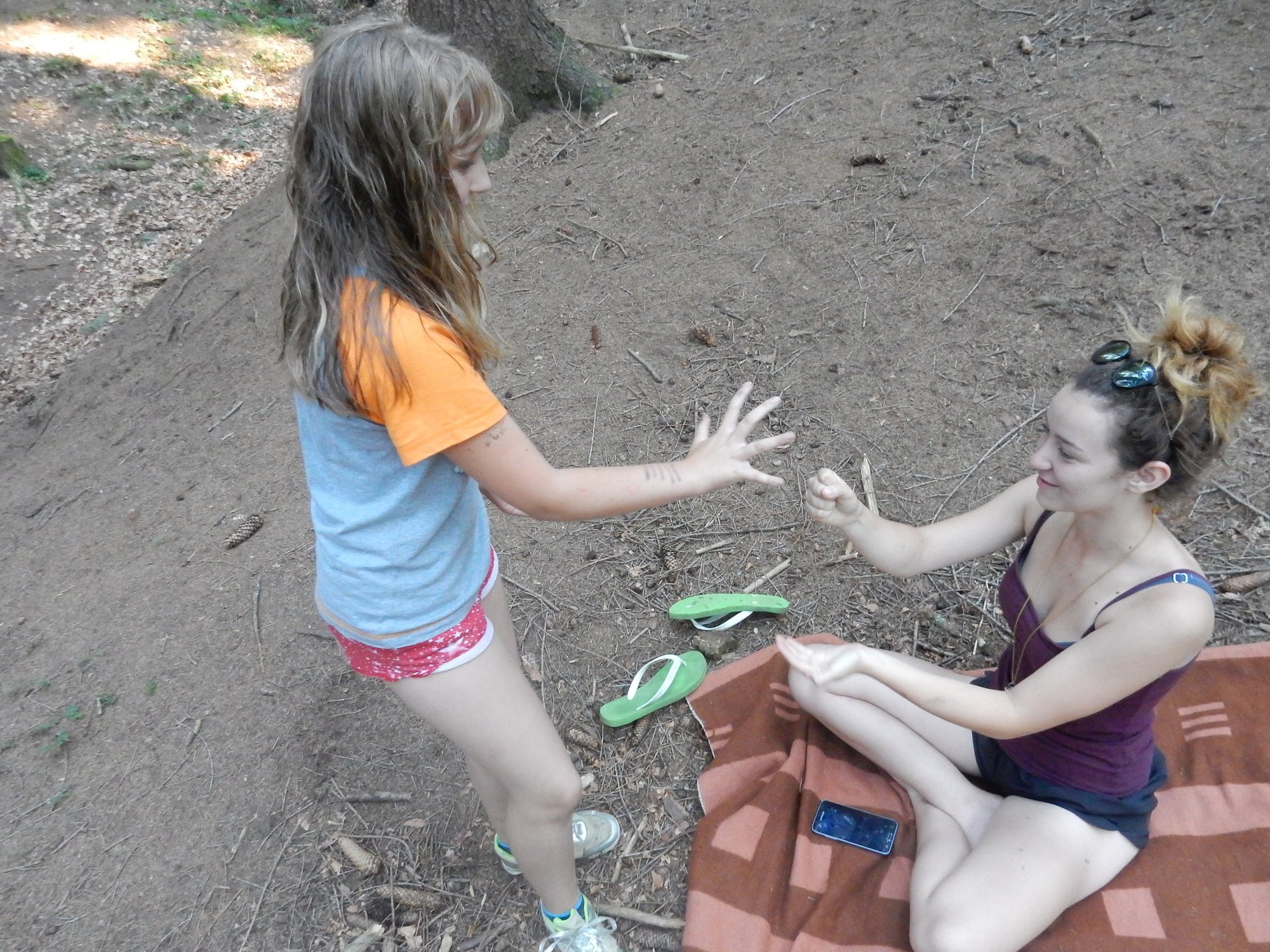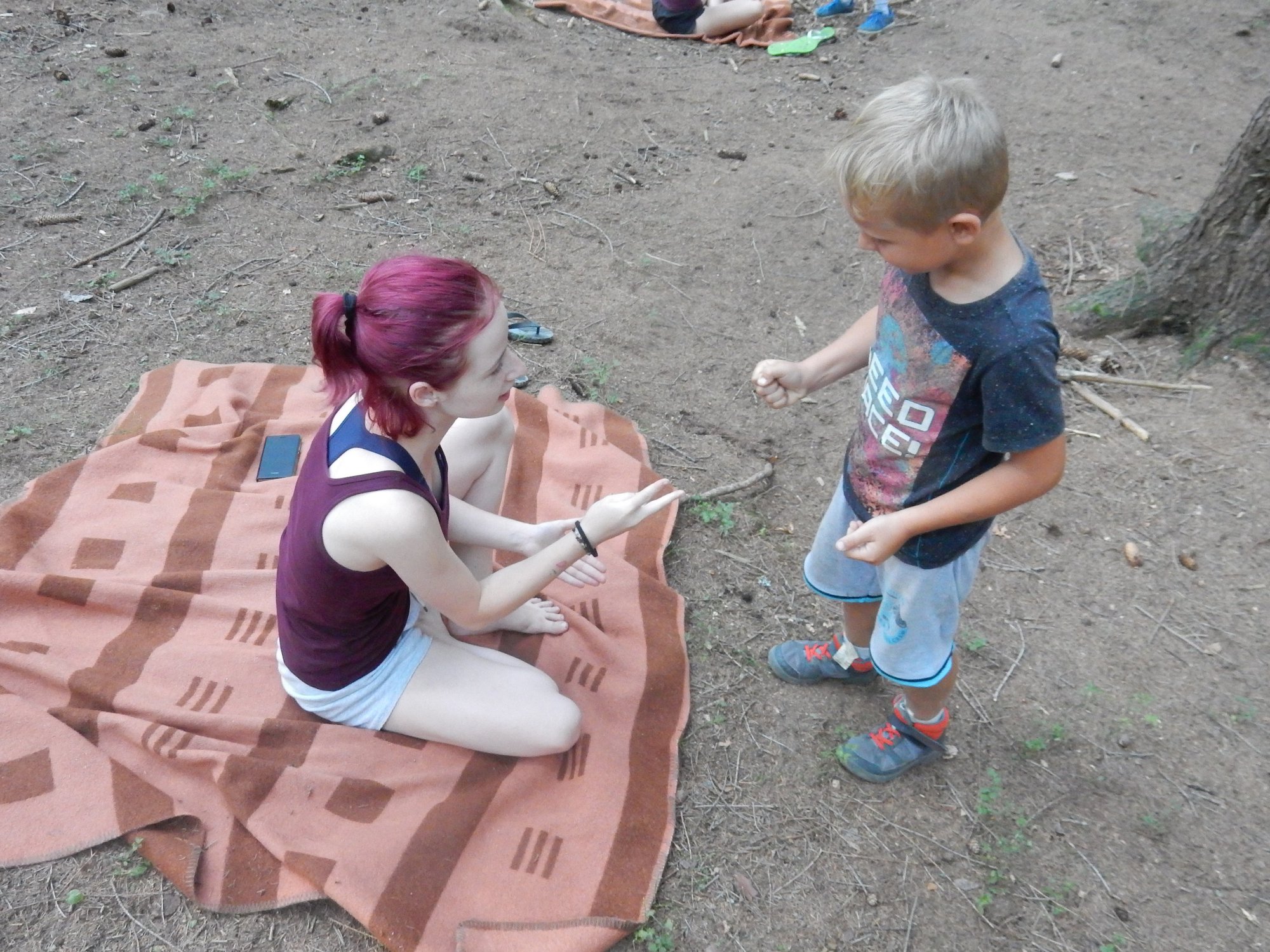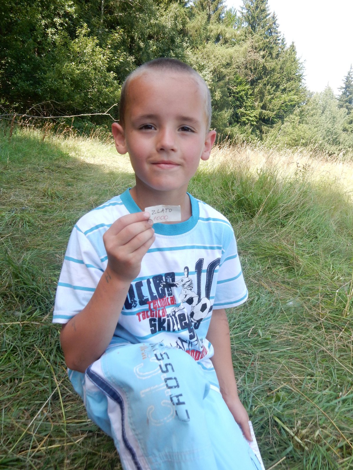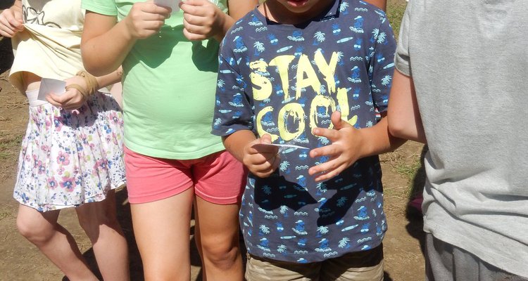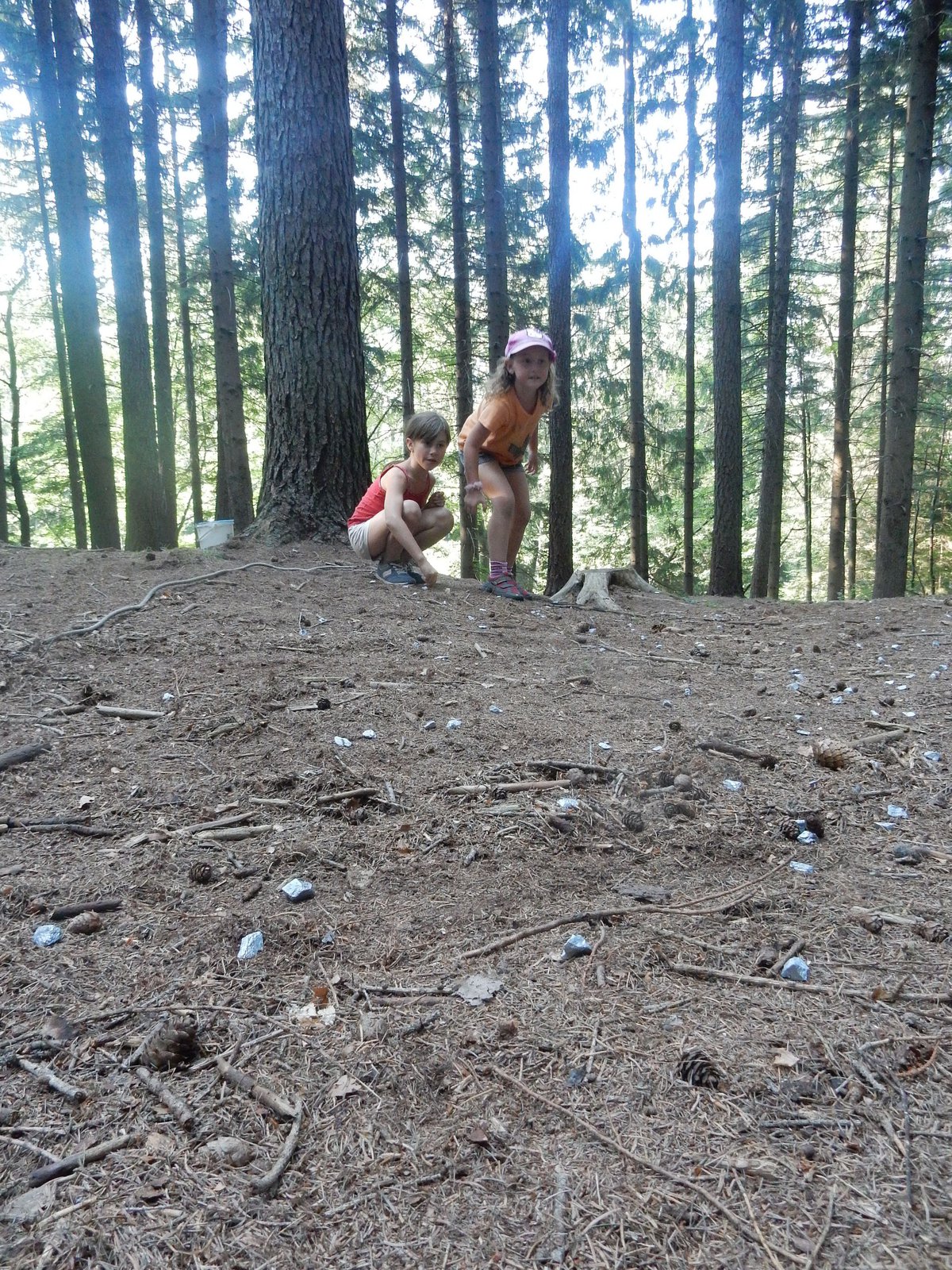 I dnes jsme se šli po poledním klidu vykoupat, i když teploty jsou „u nás v lese“ o pár stupňů nižší než „u vás v civilizaci“. Po svačině jsme se vydali dobývat poklad schovaný ve starém indiánském pueblu. Aby to nebylo tak jednoduché, museli jsme se vyhýbat dvěma bláznivým indiánům a svádět souboje s indiánskými hlídkami. Ale vše jsme zvládli a získali další vzácné kovy. Teď dojídáme večeři (rizoto) a do večerního nástupu si můžeme ještě sami mezi sebou něco zahrát.