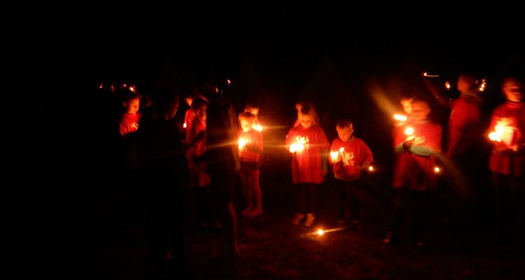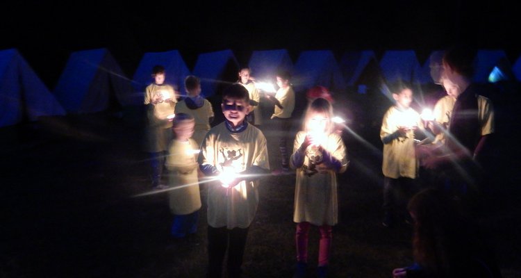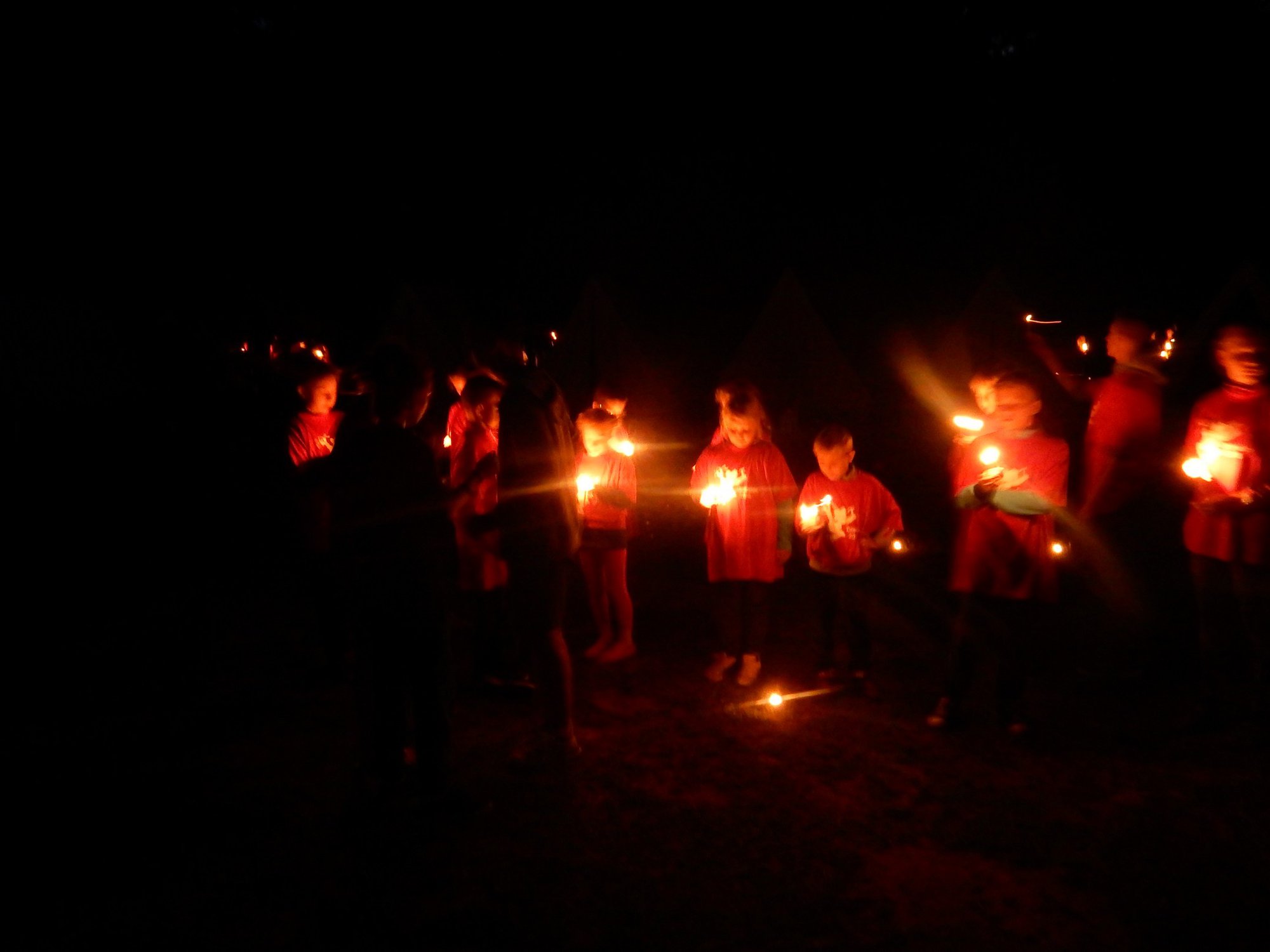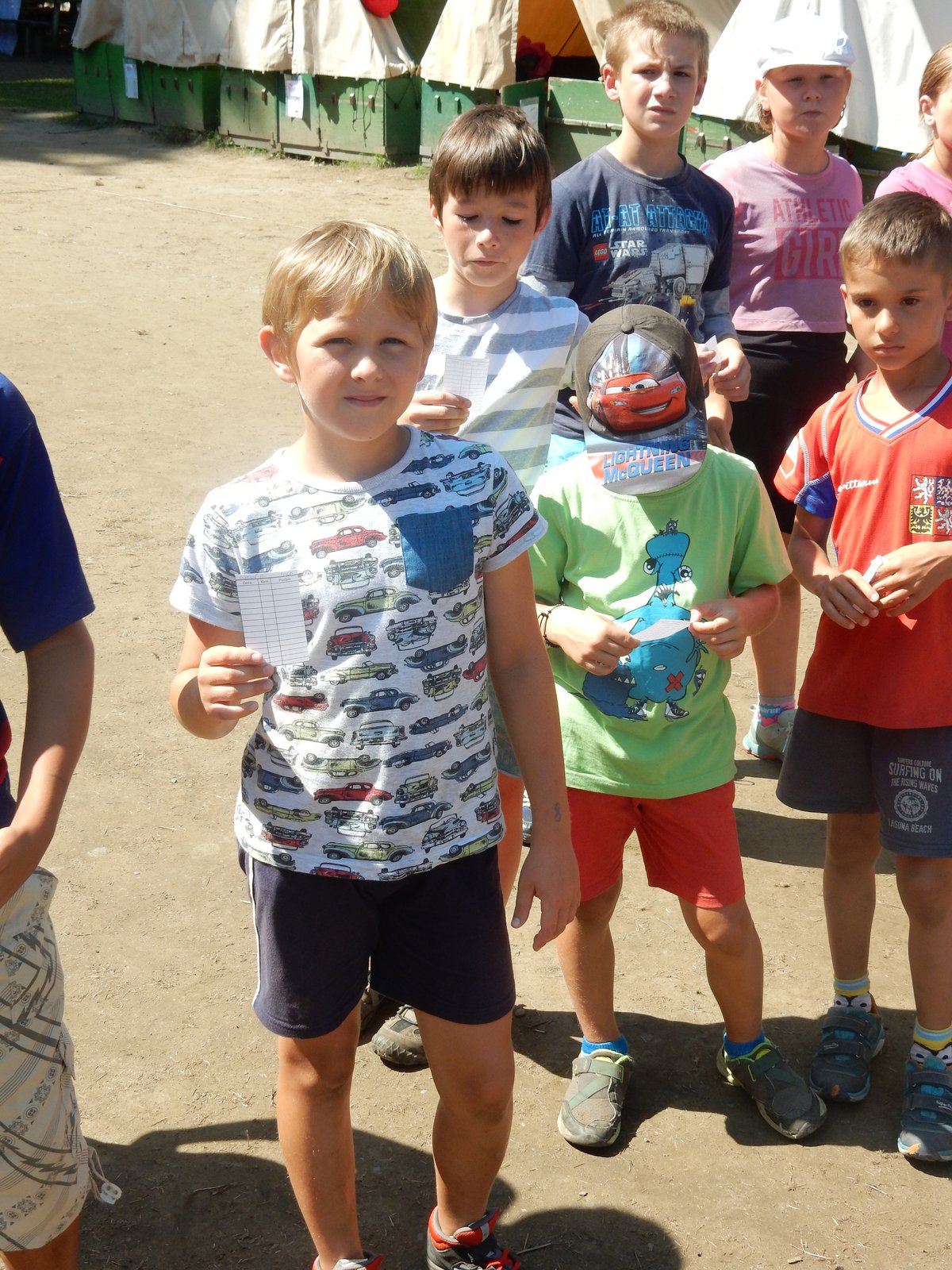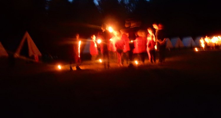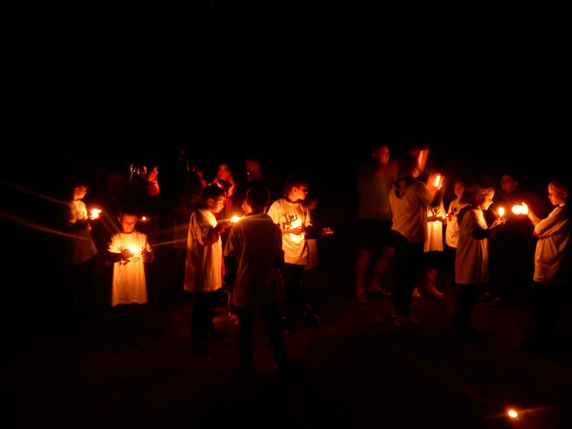 Po večerním nástupu už jsme se pomalu chystali spát, ale v tom přišel další nástup, tentokrát v oddílových barevných tričkách. V táboře vznikla tři hřiště na svíčkový fotbal a my jsme se dali do zápasů. Každý měl zapálenou dortovou svíčku a snažil se s ní projít skrz soupeřovu branku. Navzájem jsme si svíčky sfoukávali a tím bránili vlastní branku. Tím skončil dnešní den, těšíme se zítra !